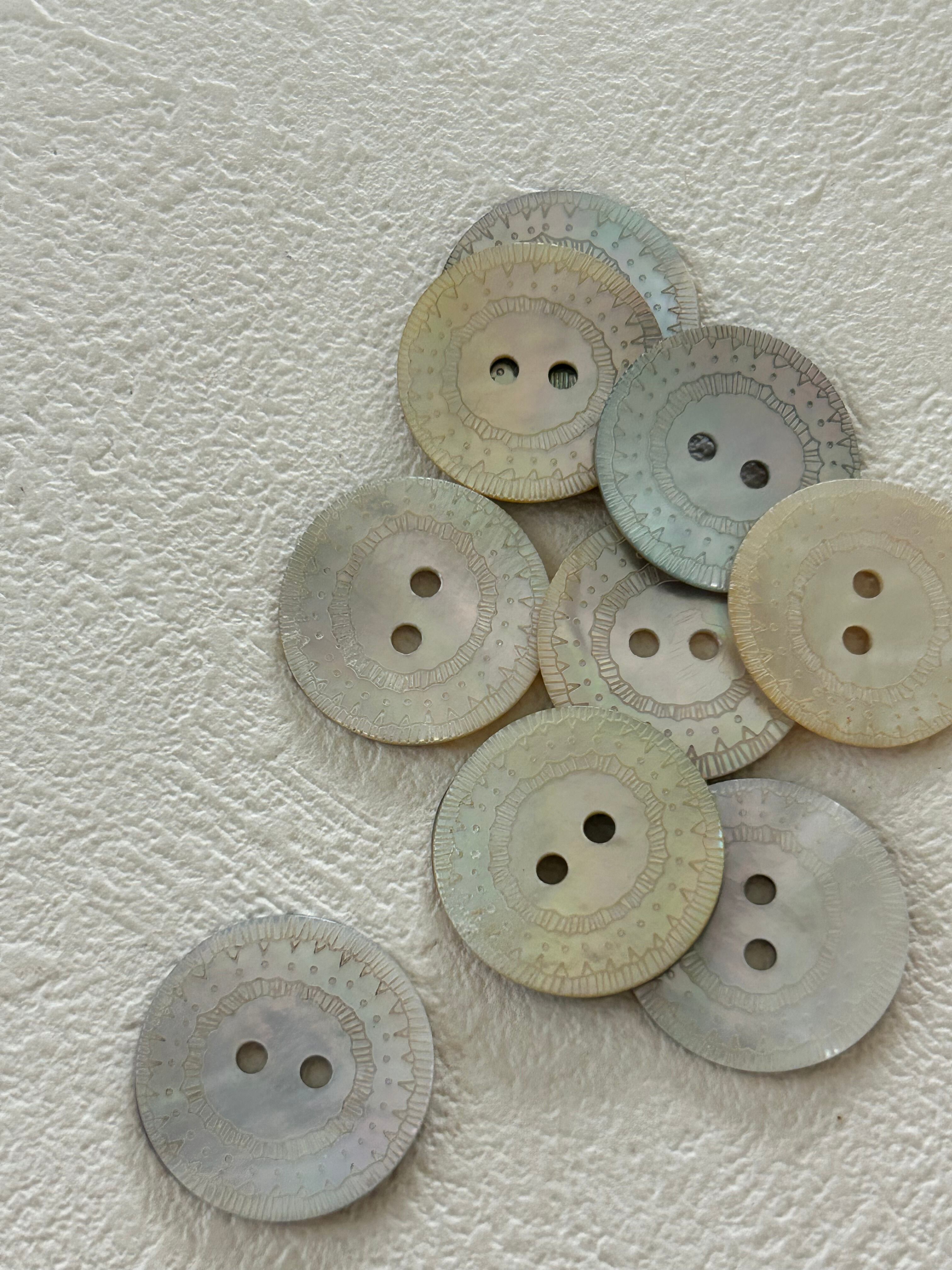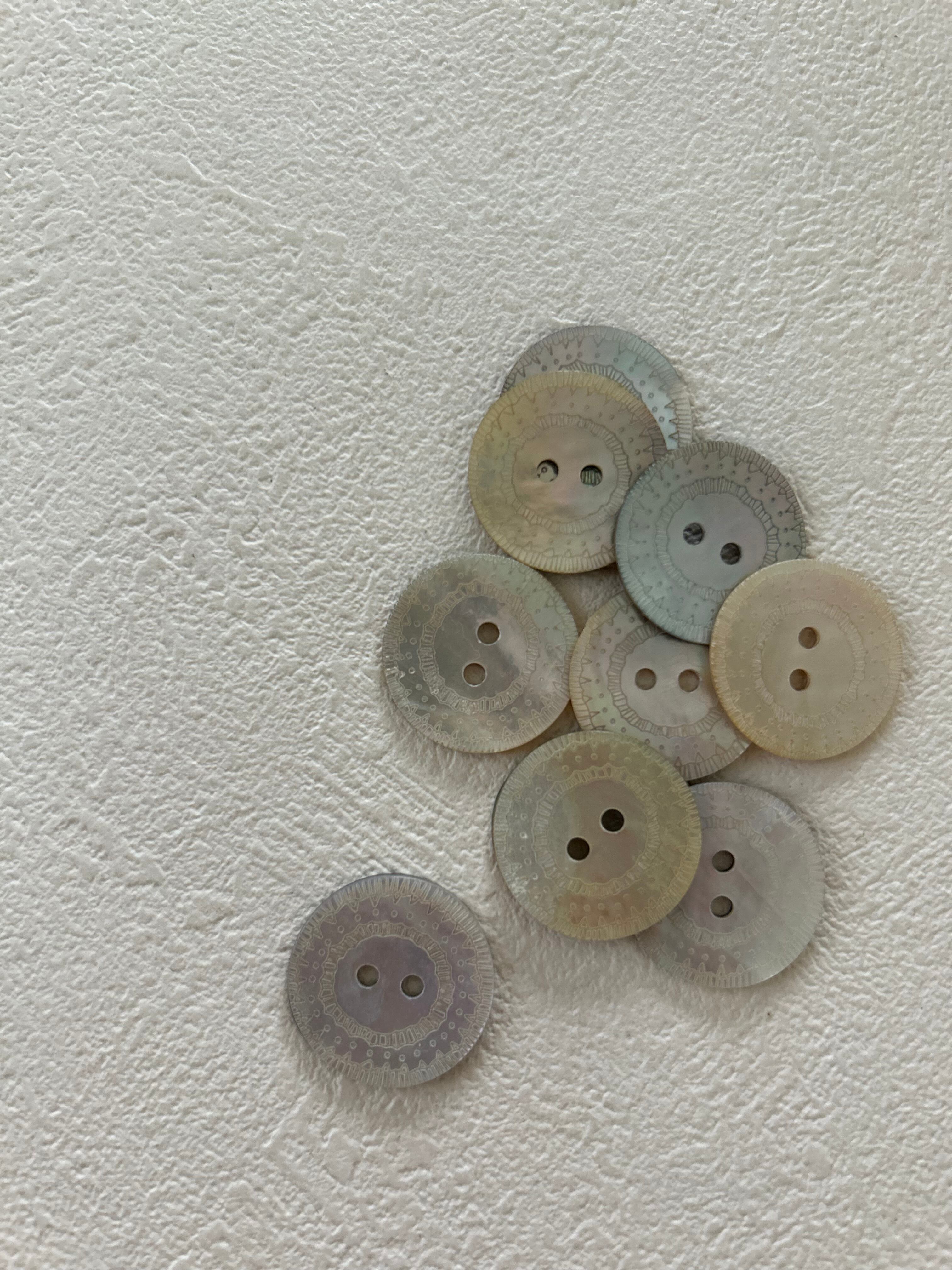 輸入デザインボタン レース模様の貝ボタン シェル 20mm前後 アクセサリーパーツ デコレーション材