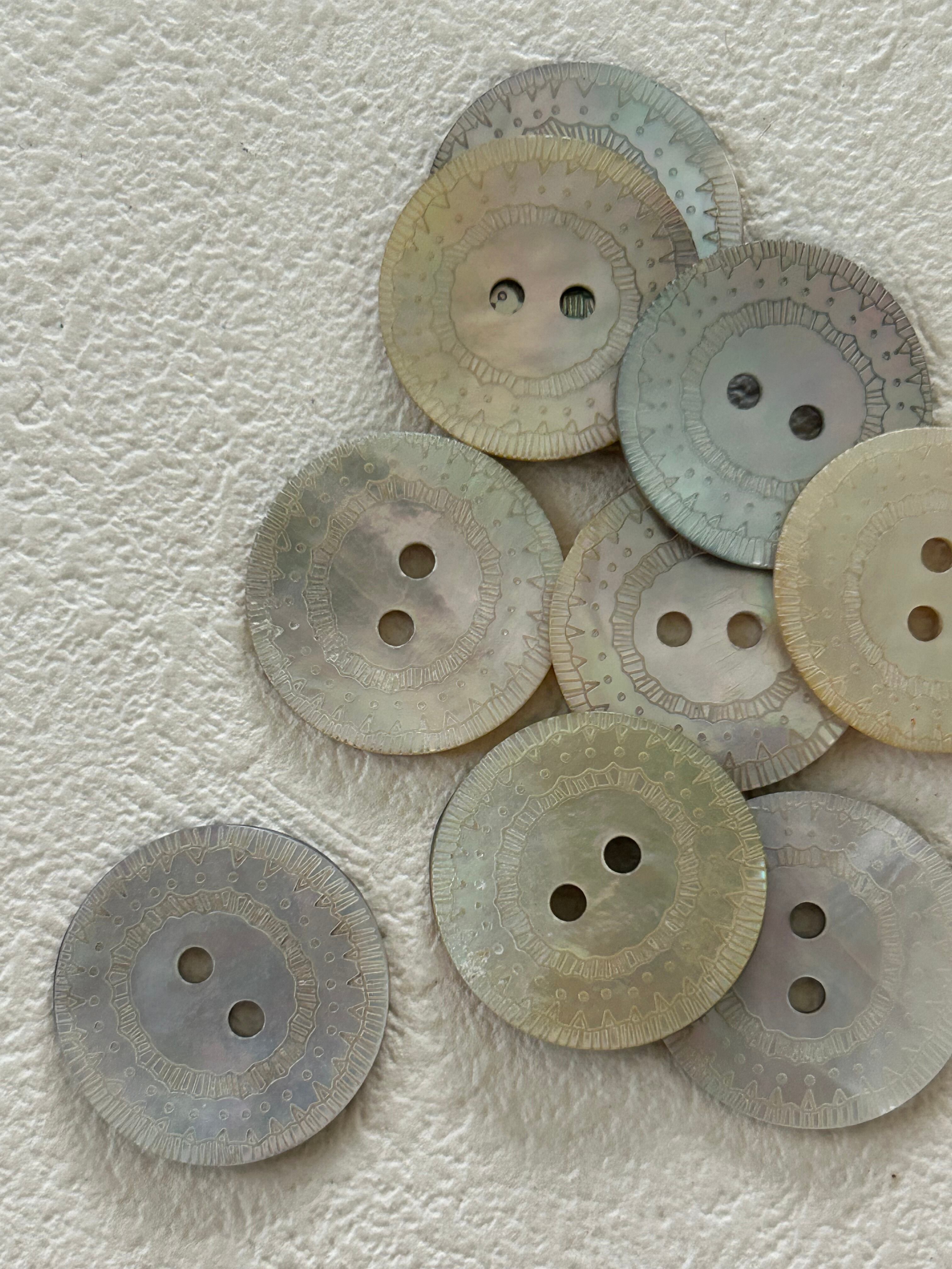 シェルの輝きが美しく、またレースのようなデザインが可愛くオシャレな貝ボタンです