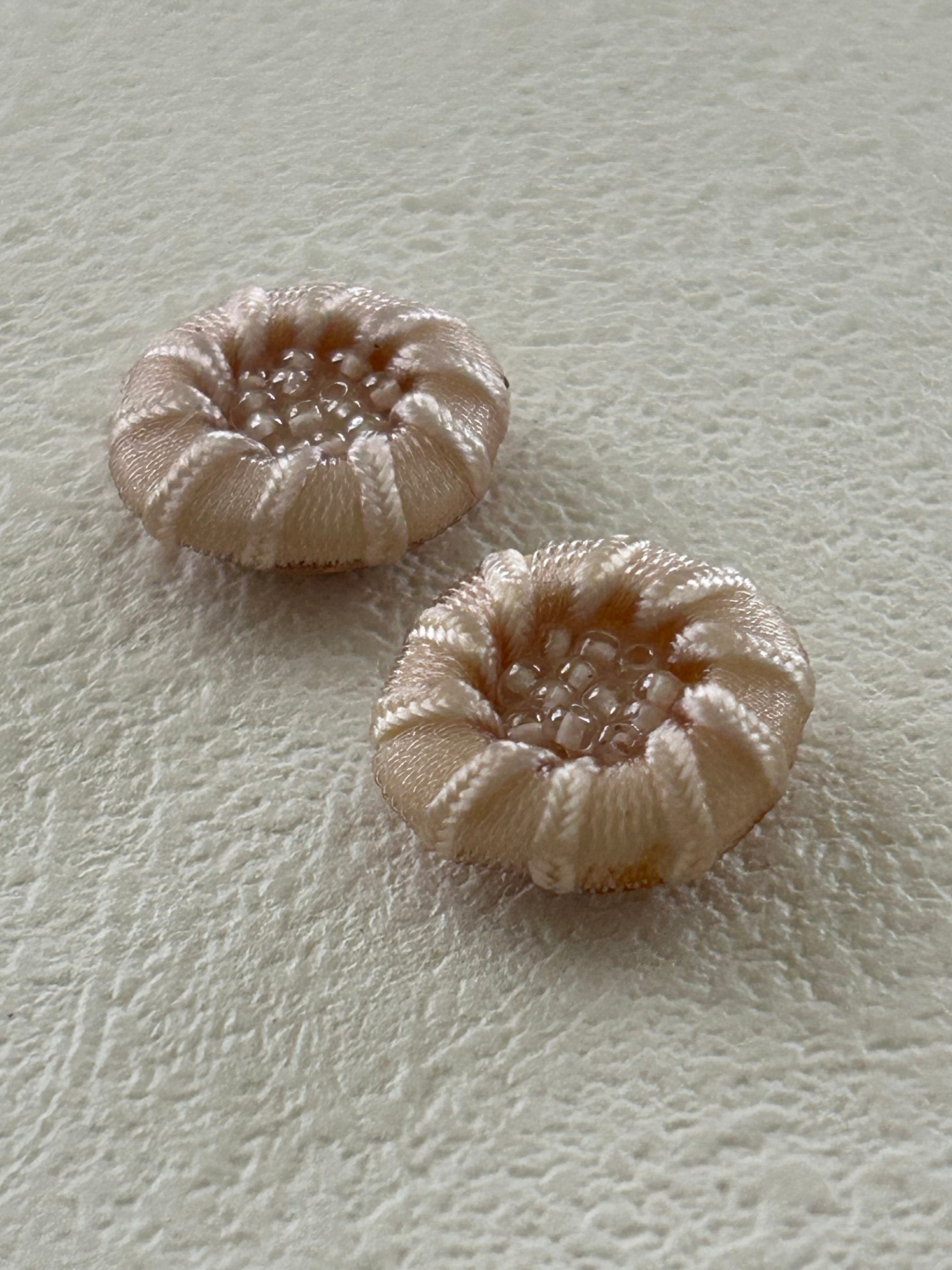 Japanese Vintage ボタン コードボタン 17mm ビーズ ピンクベージュ デッドストック アクセサリーパーツ 装飾材 カルトナージュ