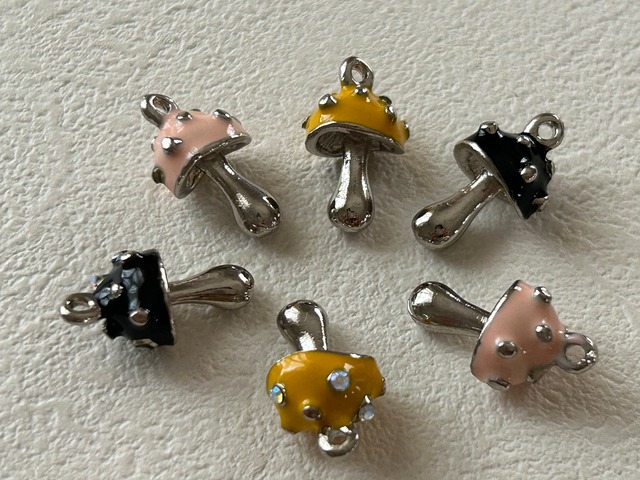 輸入デザインパーツ champignon シャンピニオン 立体 きのこ ピンク/イエロー/ブラック 20mm チャーム アクセサリーパーツ デコレーション材