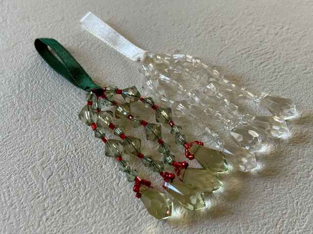 フランス 輸入デザインタッセル ビーズタッセル プラスチック×サテンリボン グリーン×レッド/クリア カルトナージュ デコレーション材 インテリアタッセル