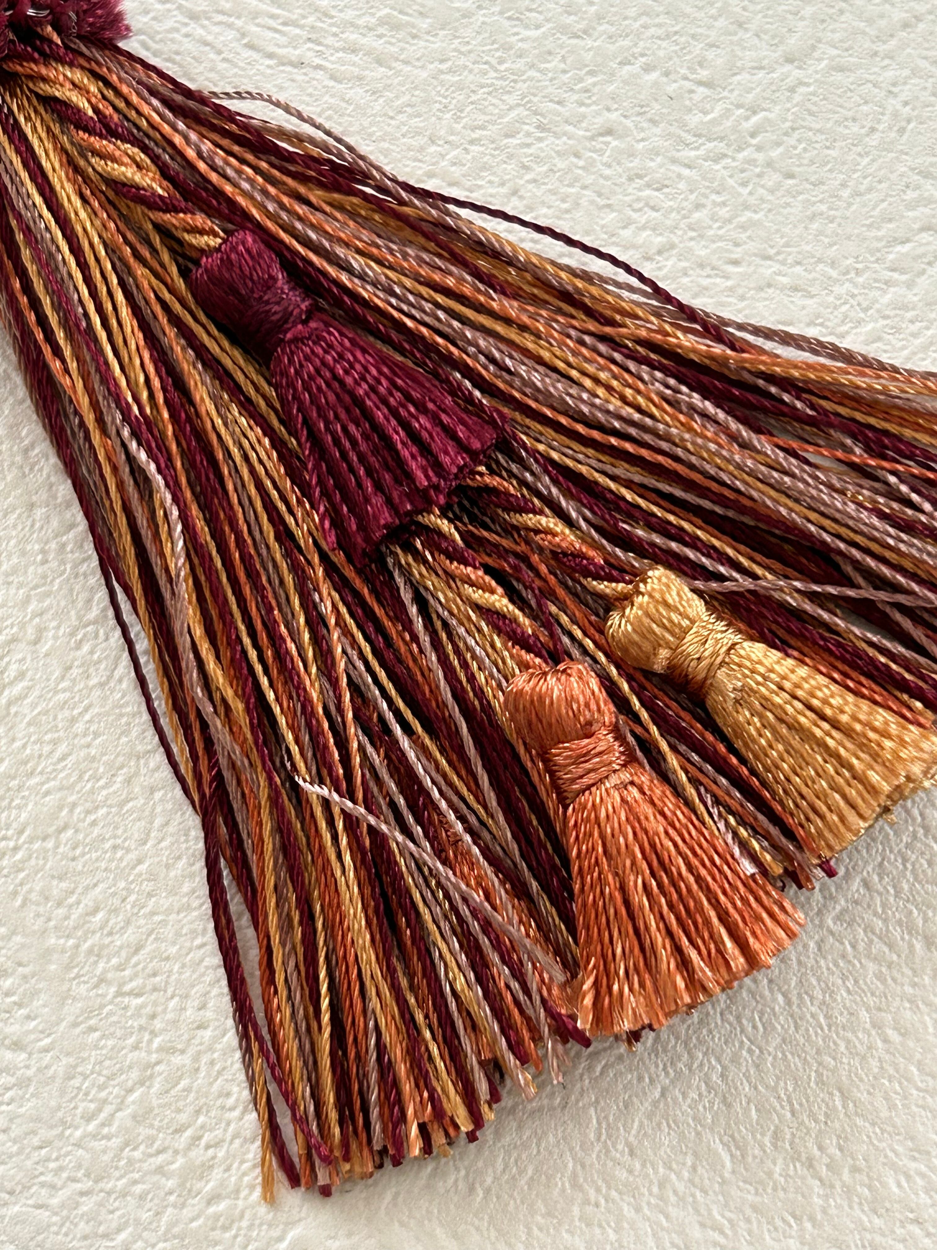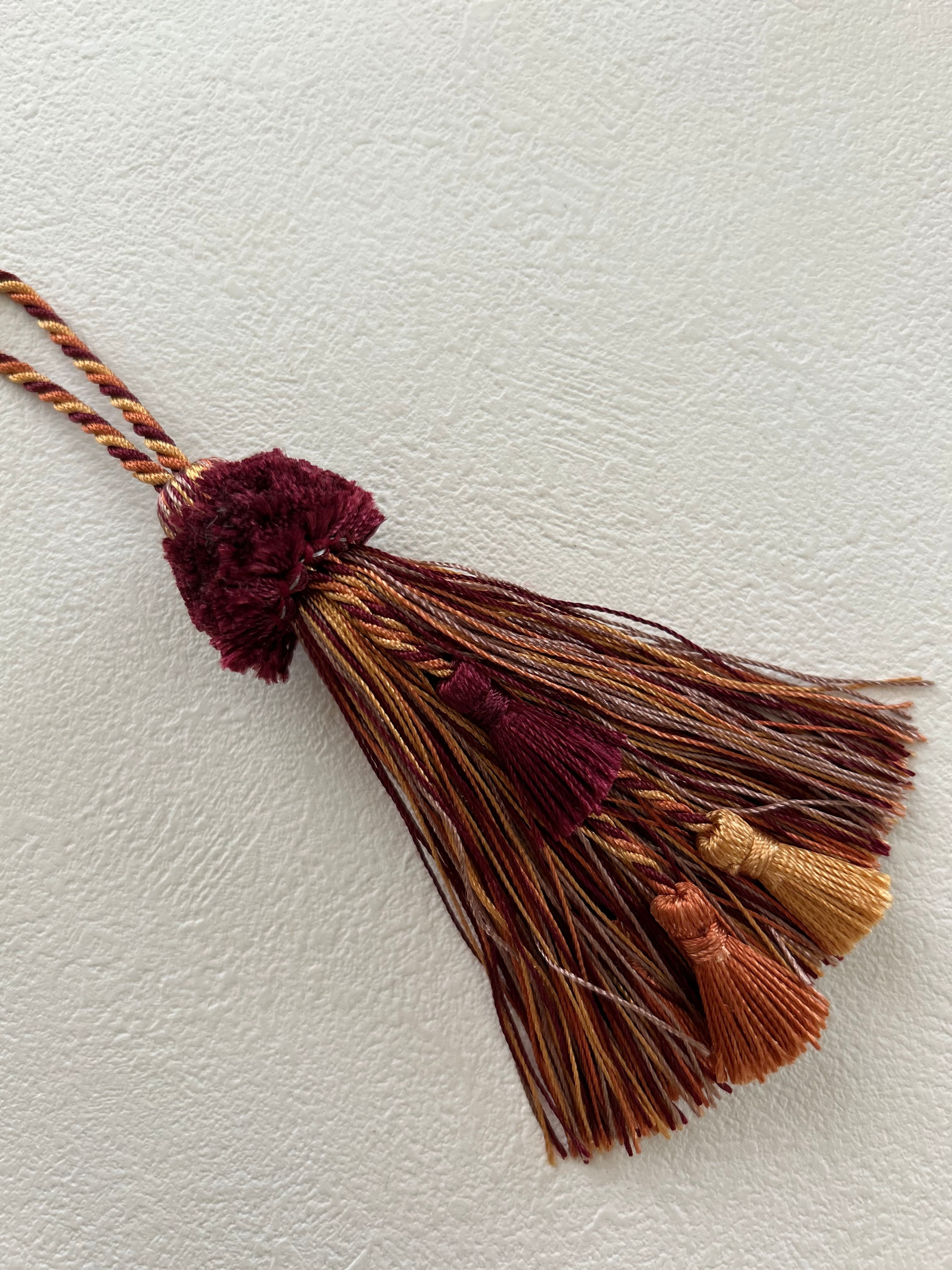 輸入デザインタッセル 10cm ボルドー×マルチカラー カルトナージュ バッグチャーム お茶箱 インテリア