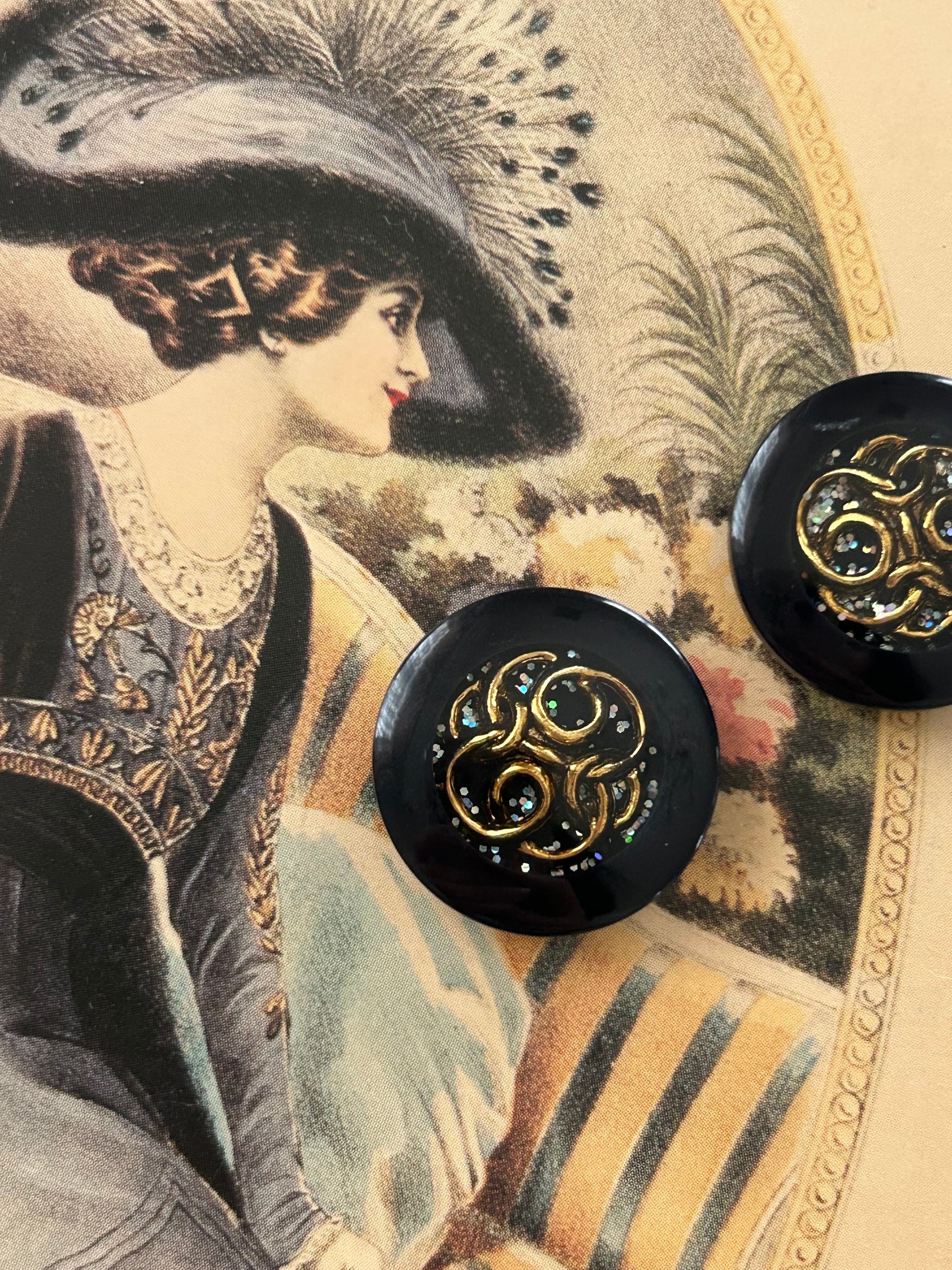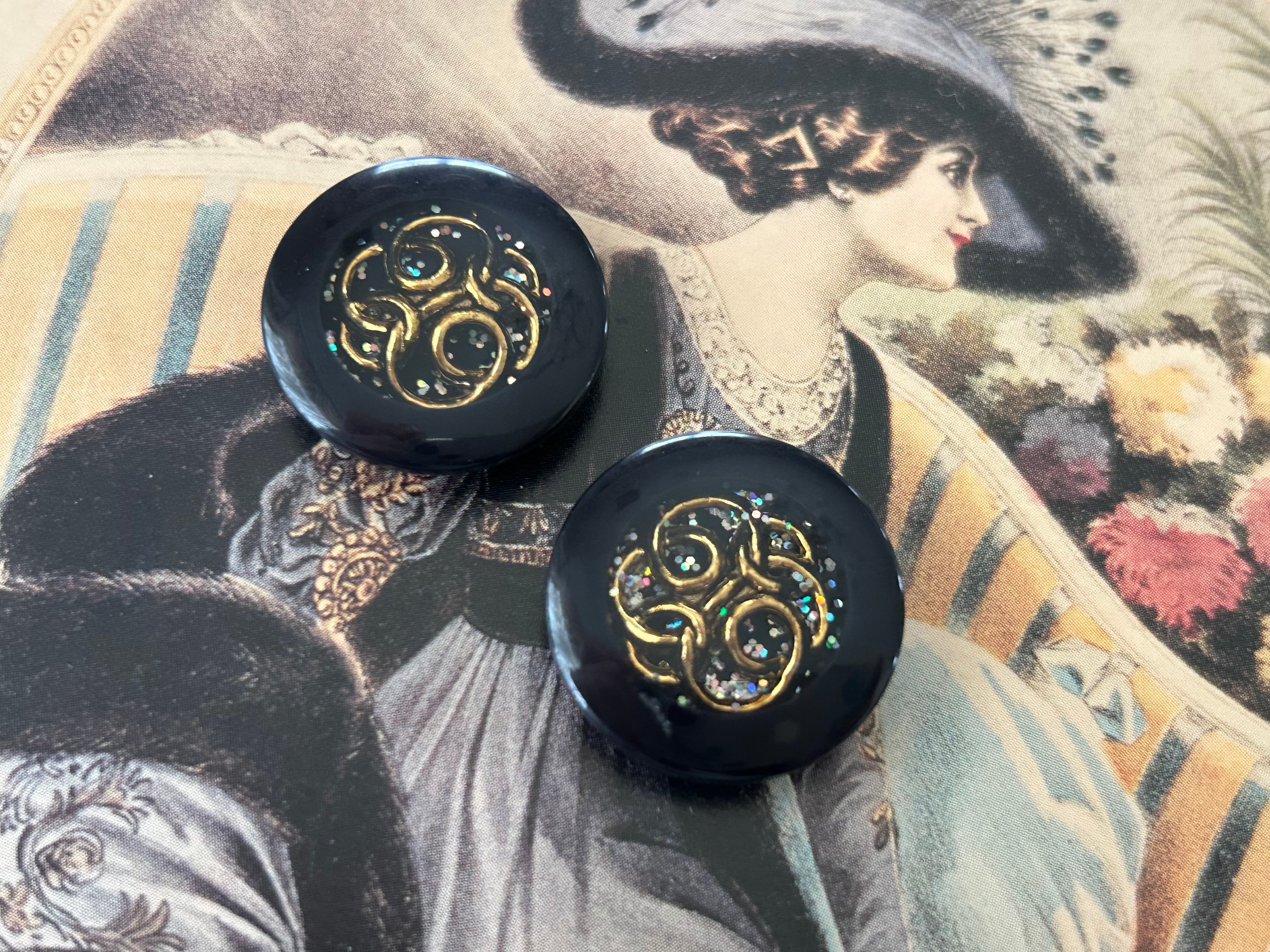 Japanese Vintage ボタン ネイビー×ゴールド ホログラム 22mm 昭和レトロ アクセサリーパーツ 装飾材 カルトナージュ