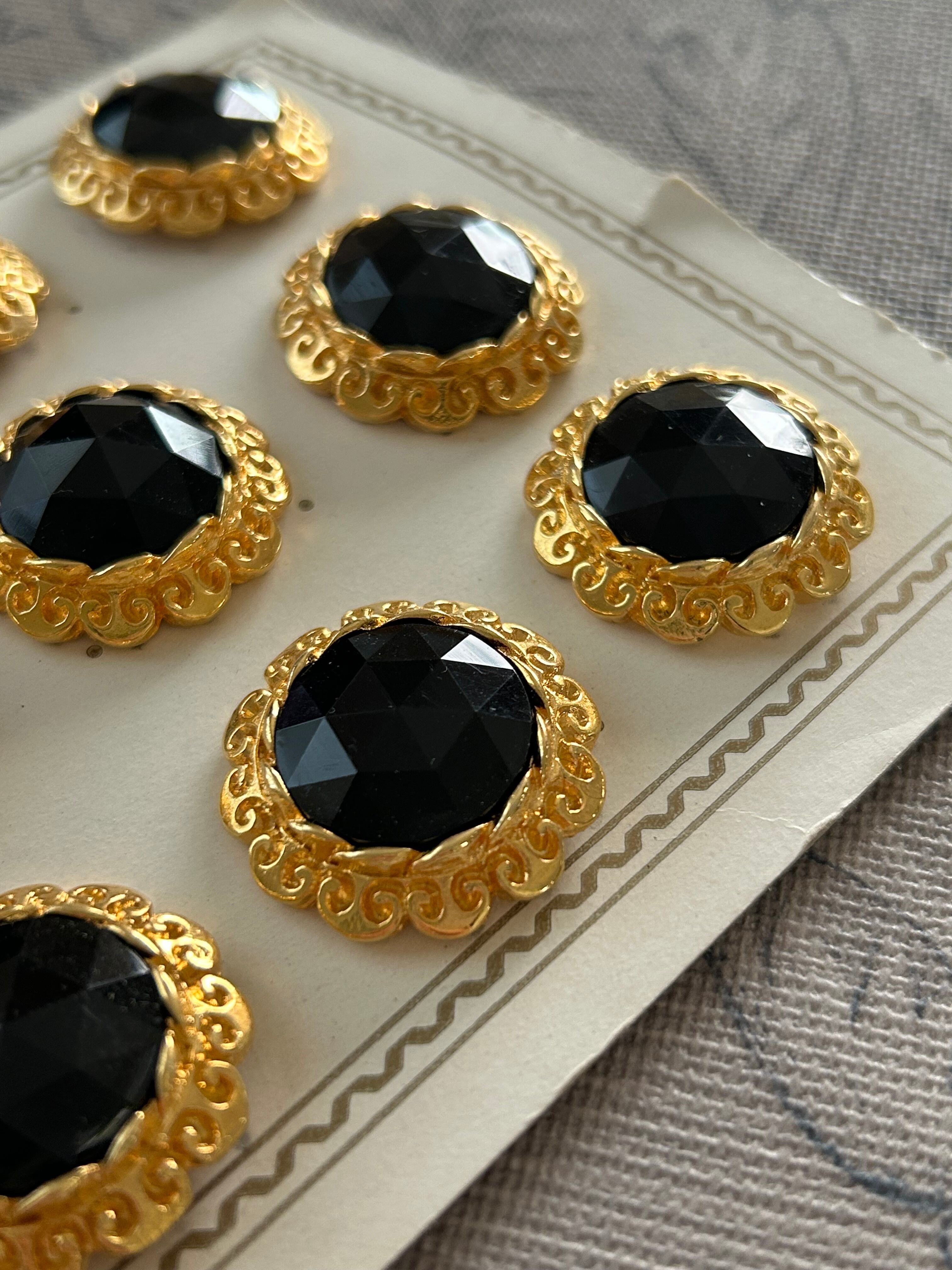 フランスVintage ヴィンテージボタン メタル×カボション ゴールド×ブラック 27mm アクセサリーパーツ デコレーション材