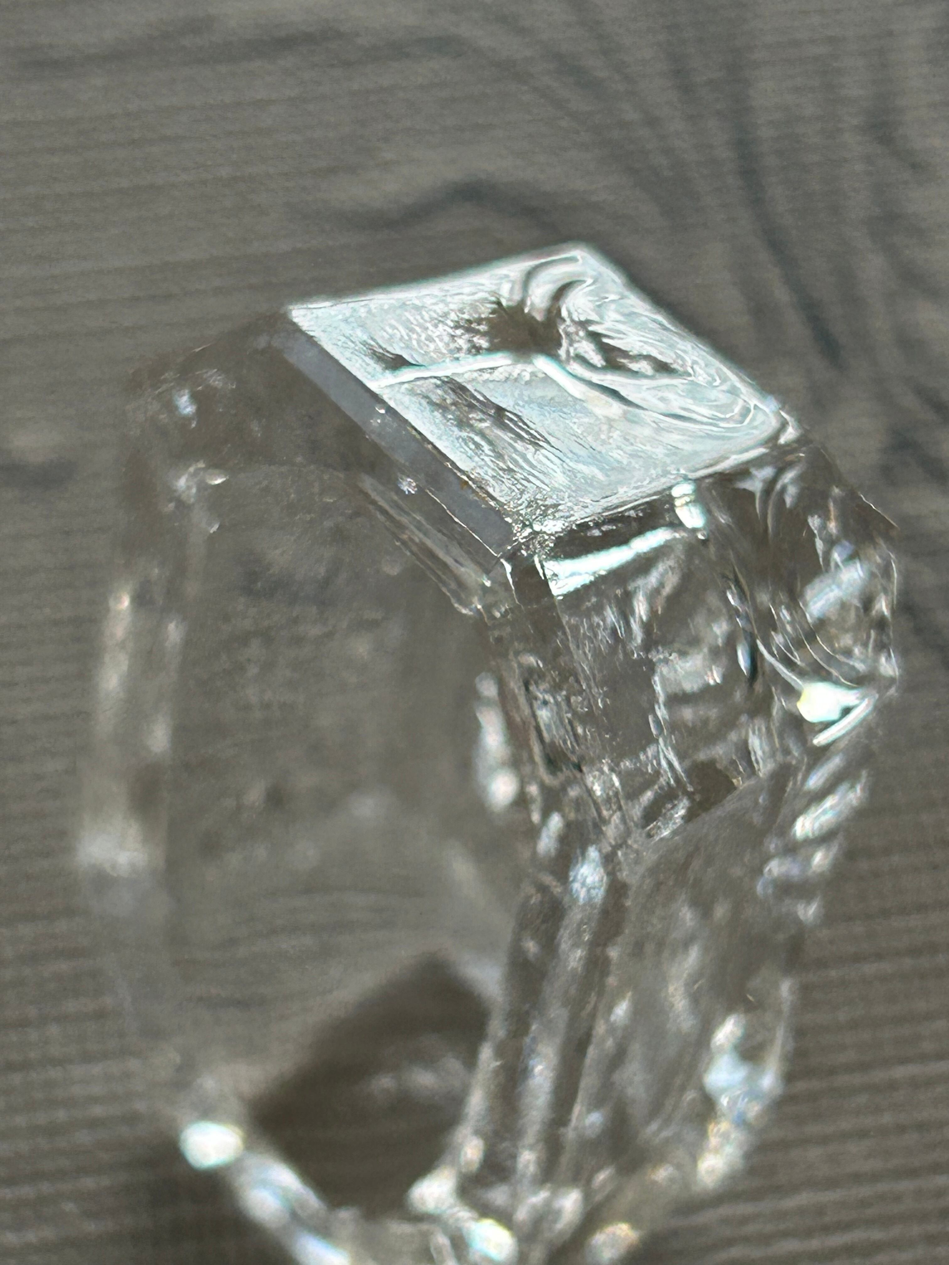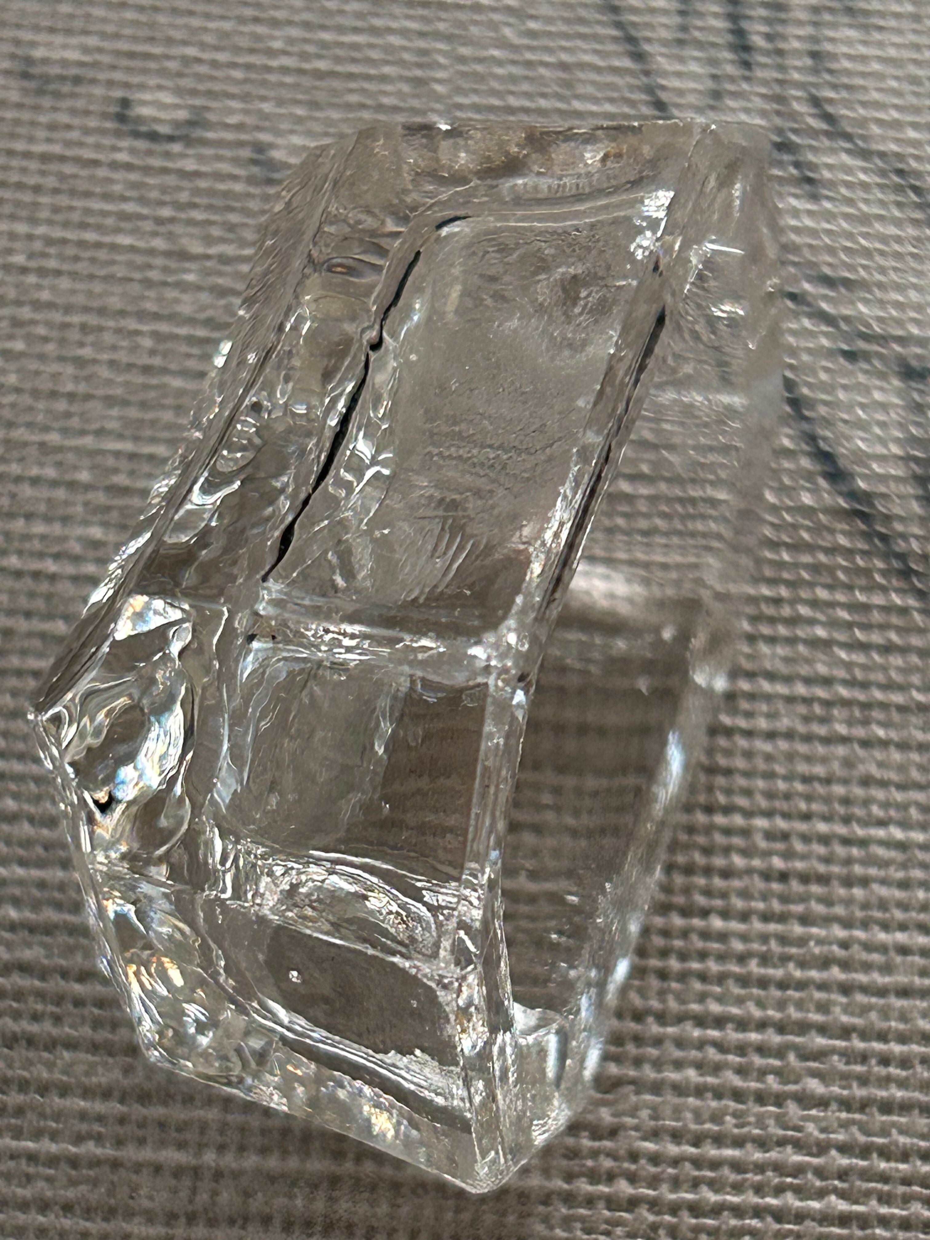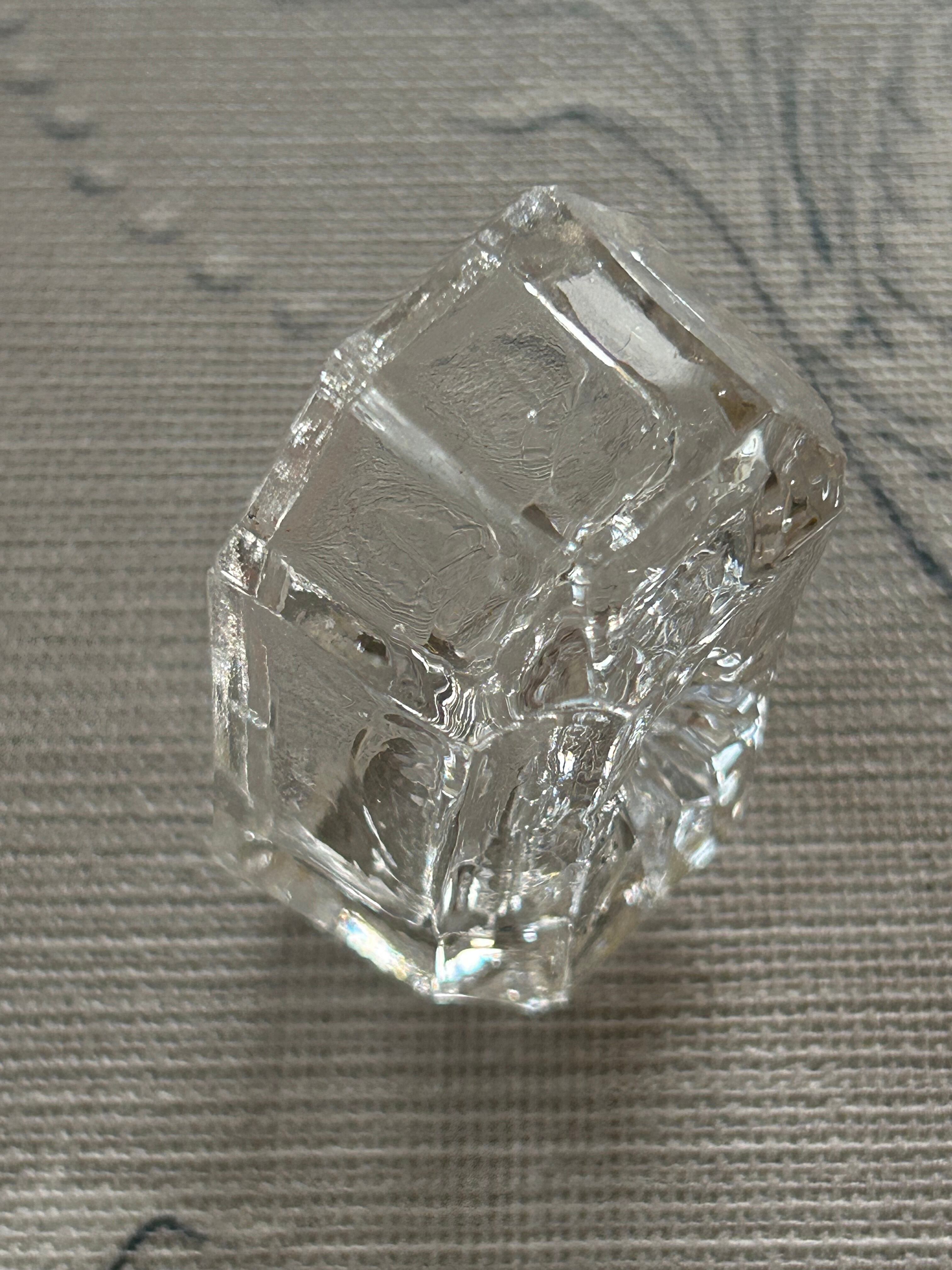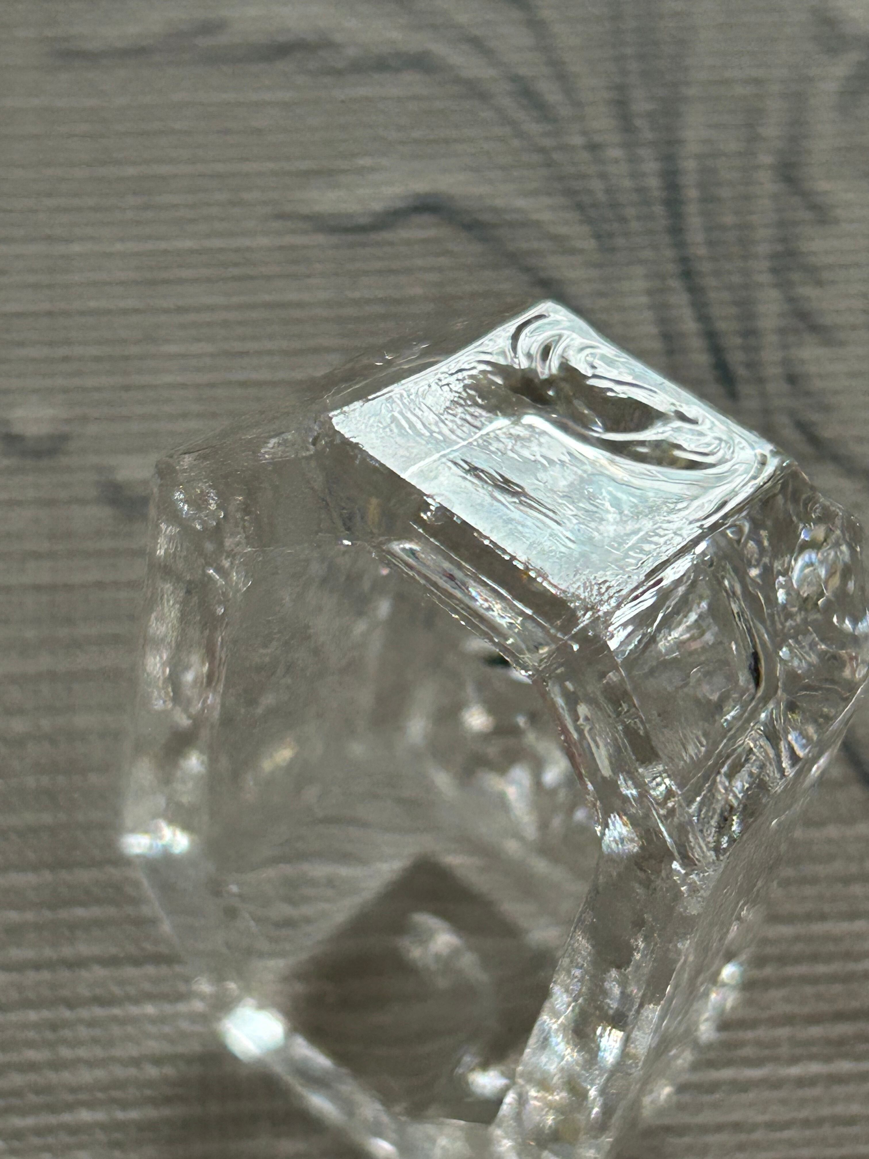 小さなサイズ、底面のカット模様、ぽってりとした気泡の入ったガラスが可愛いく目をひくディッシュです。