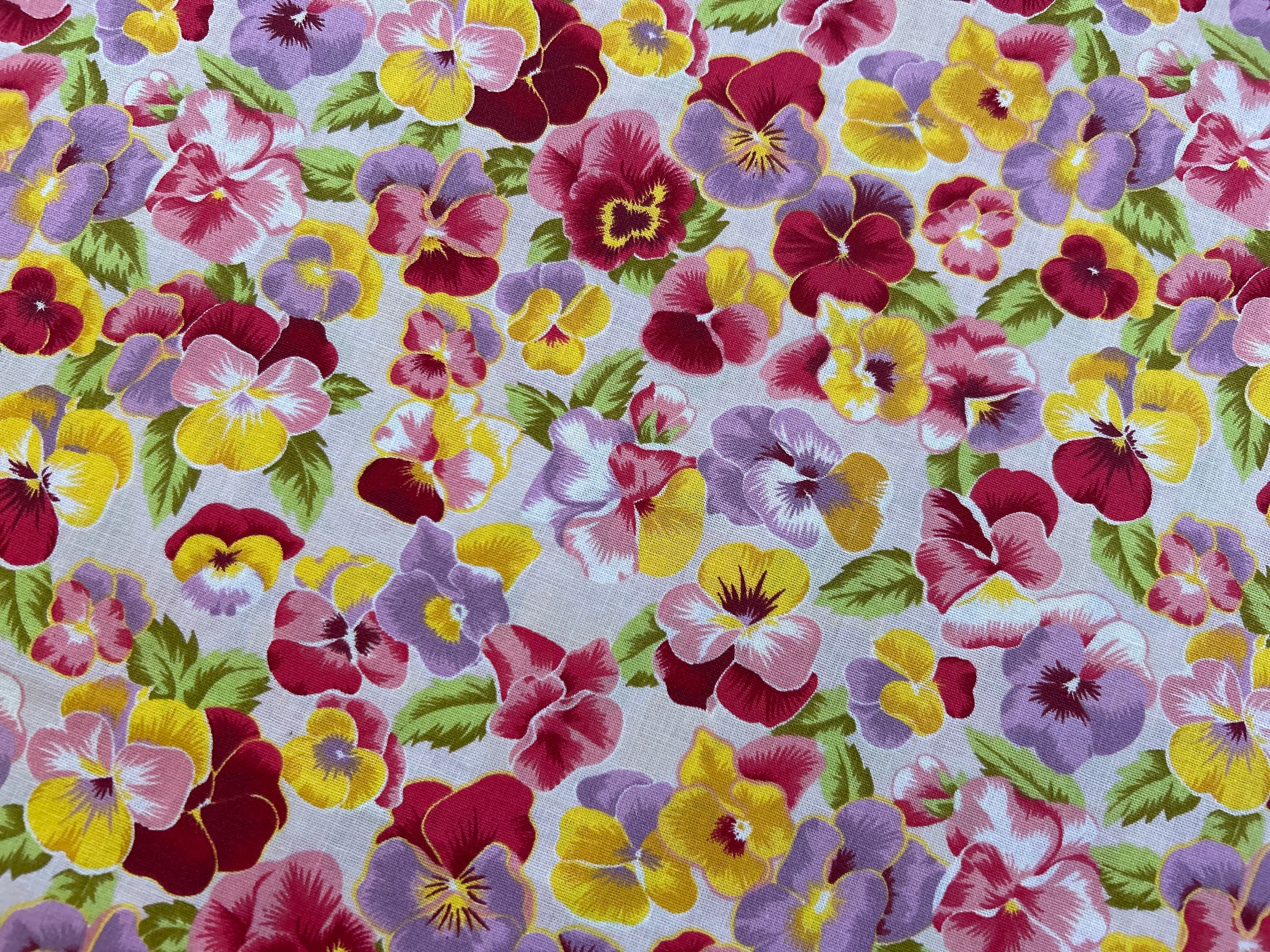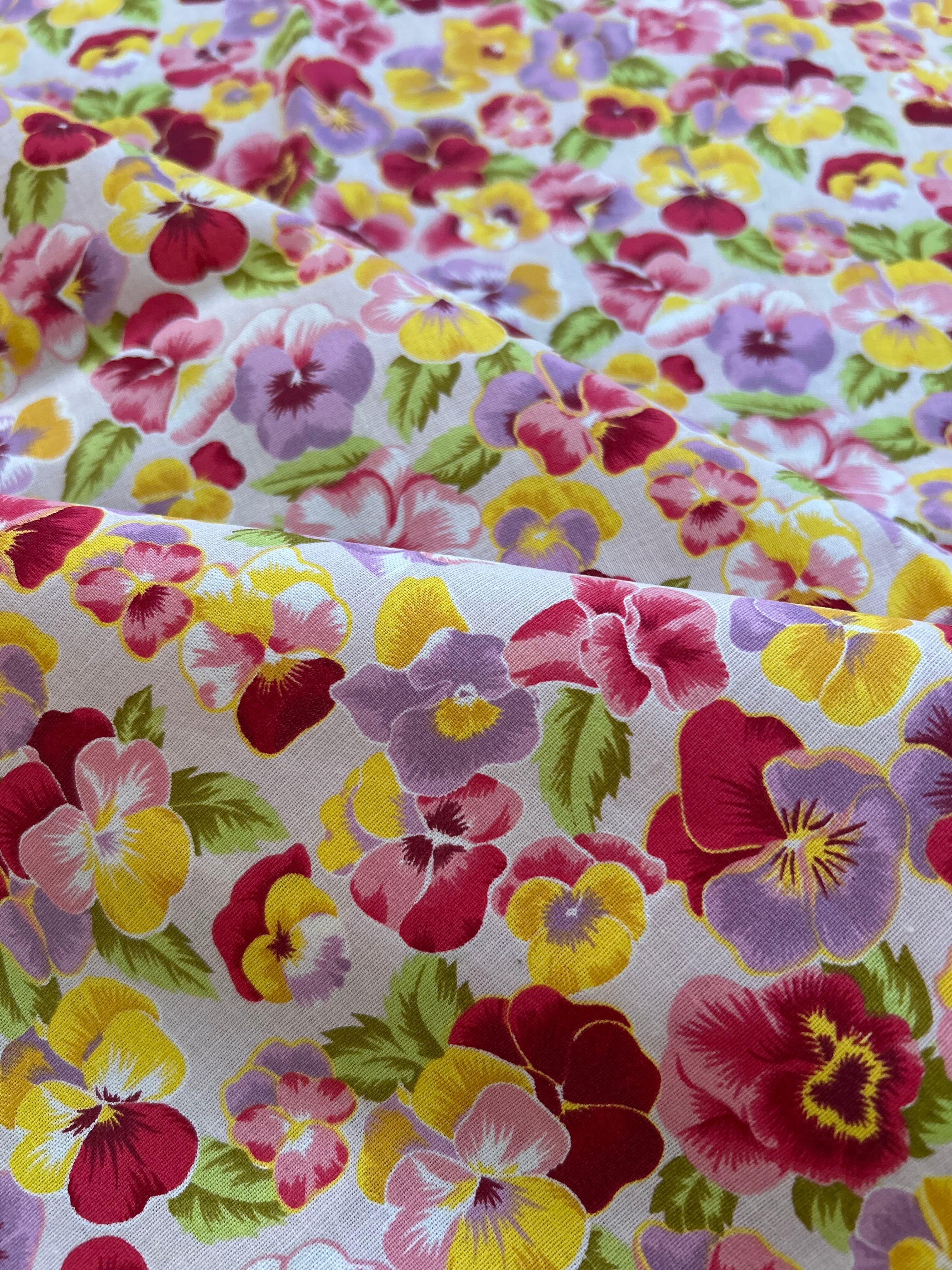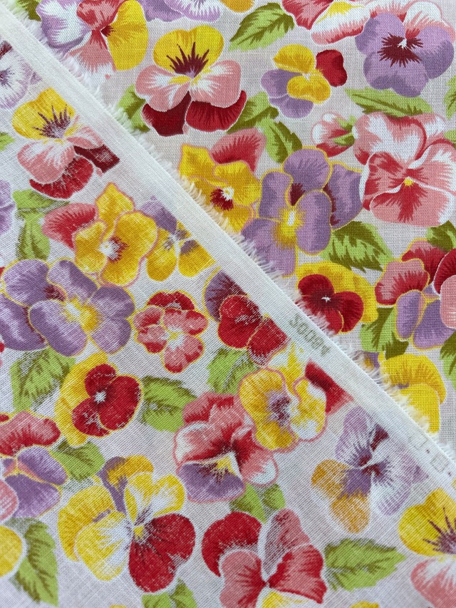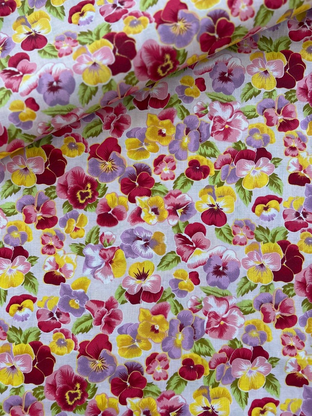 フランス コットンファブリック 輸入ファブリック ビオラ パンジー ピンク系 花柄 総柄 カルトナージュ