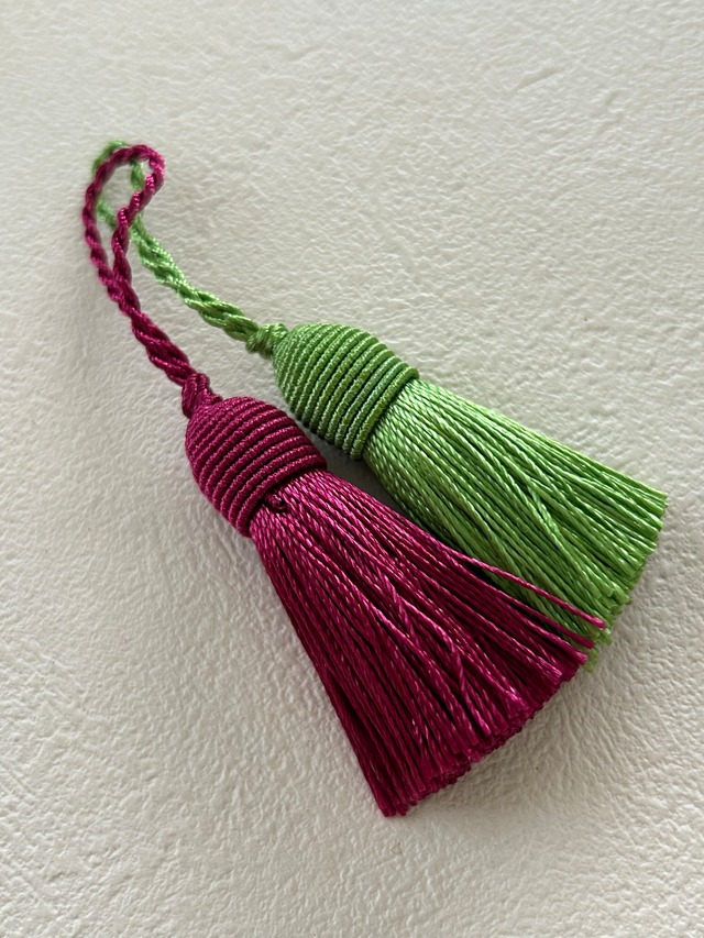フランス 輸入デザインタッセル フューシャピンク/イエローグリーン 5cm カルトナージュ チャーム アクセサリーパーツ インテリアタッセル 撮影小物 インテリア小物