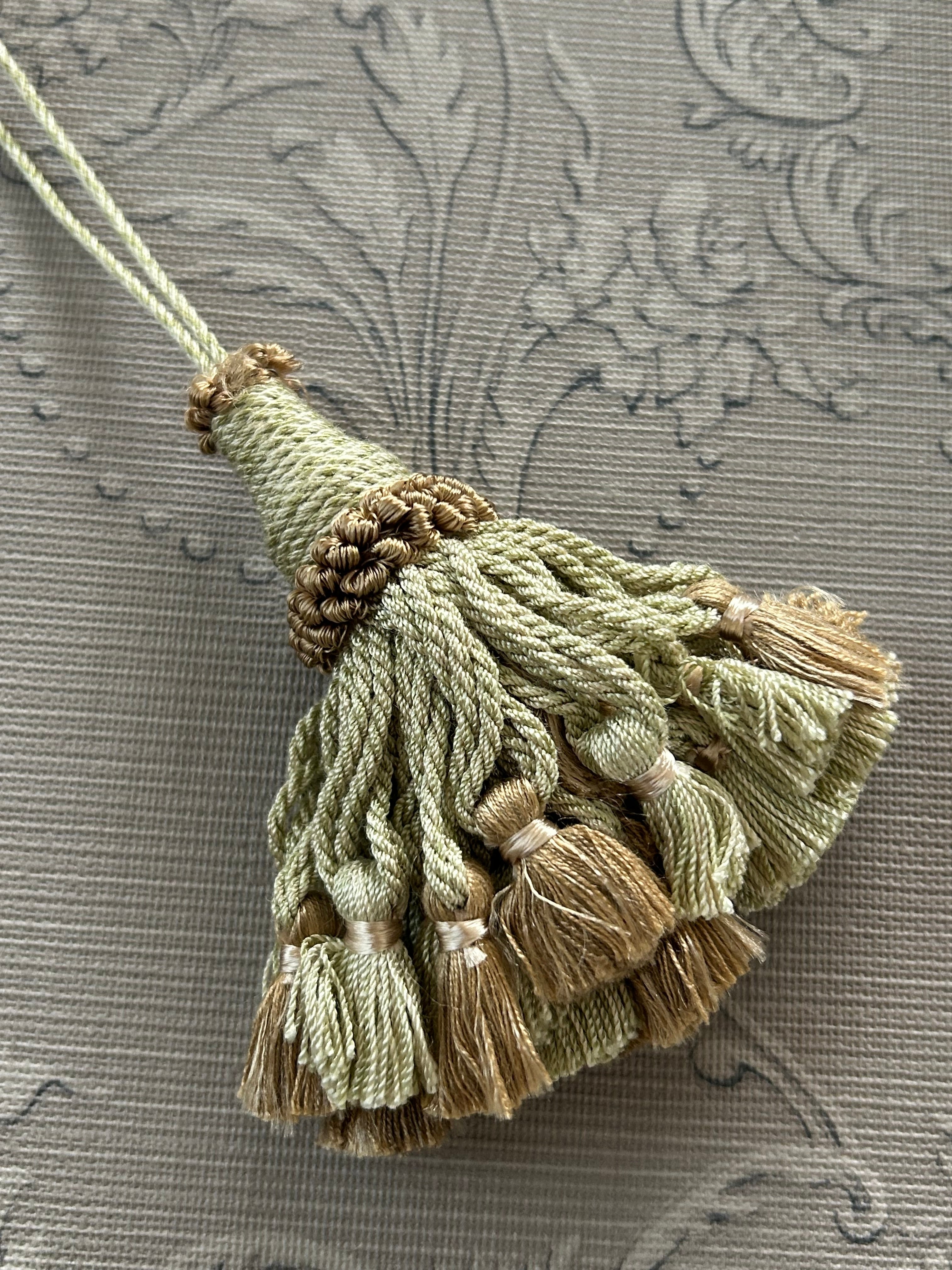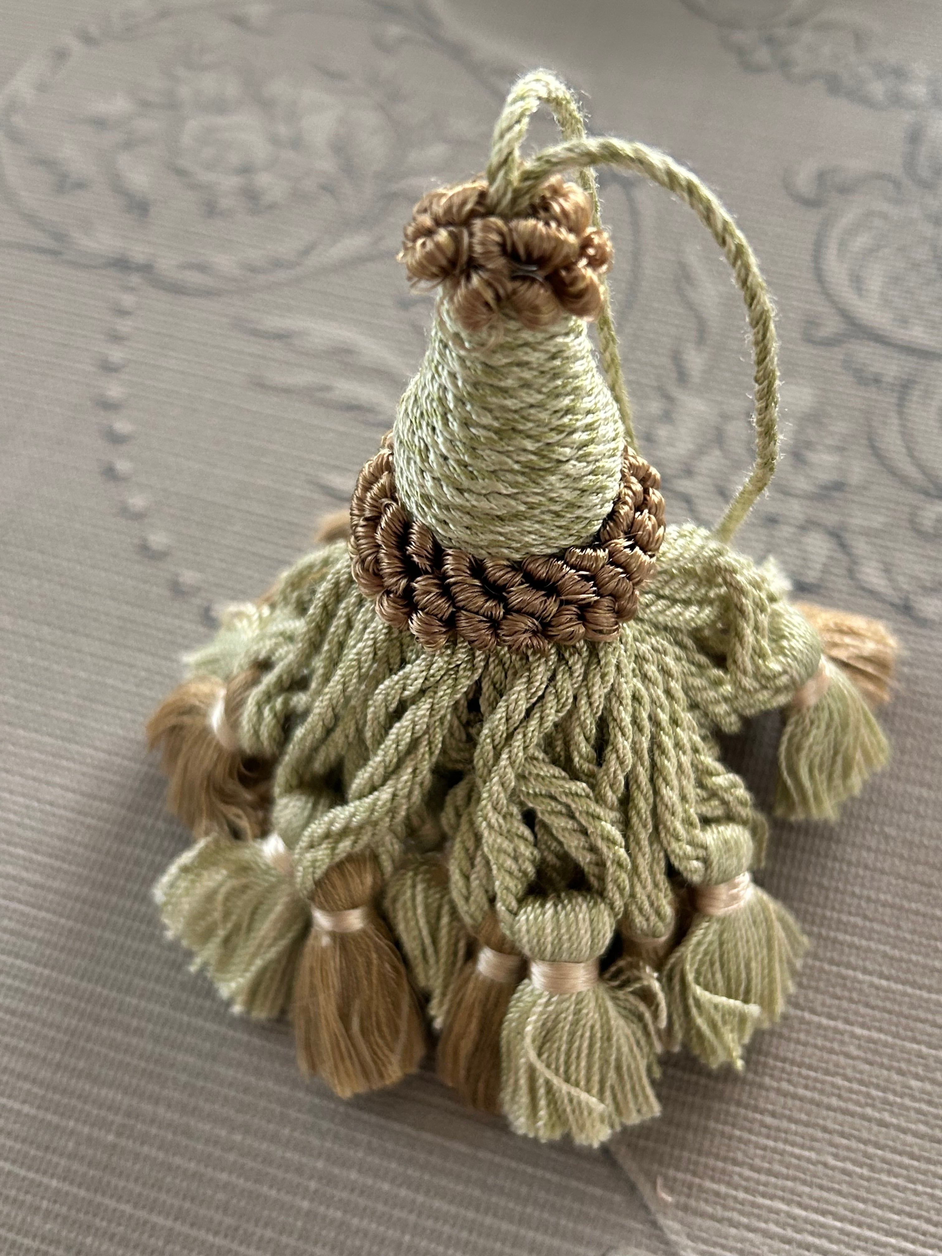 HOULES ウレス社 キータッセル 10cm くすみグリーン×ベージュ カルトナージュ インテリア チャーム フランス デコレーション材