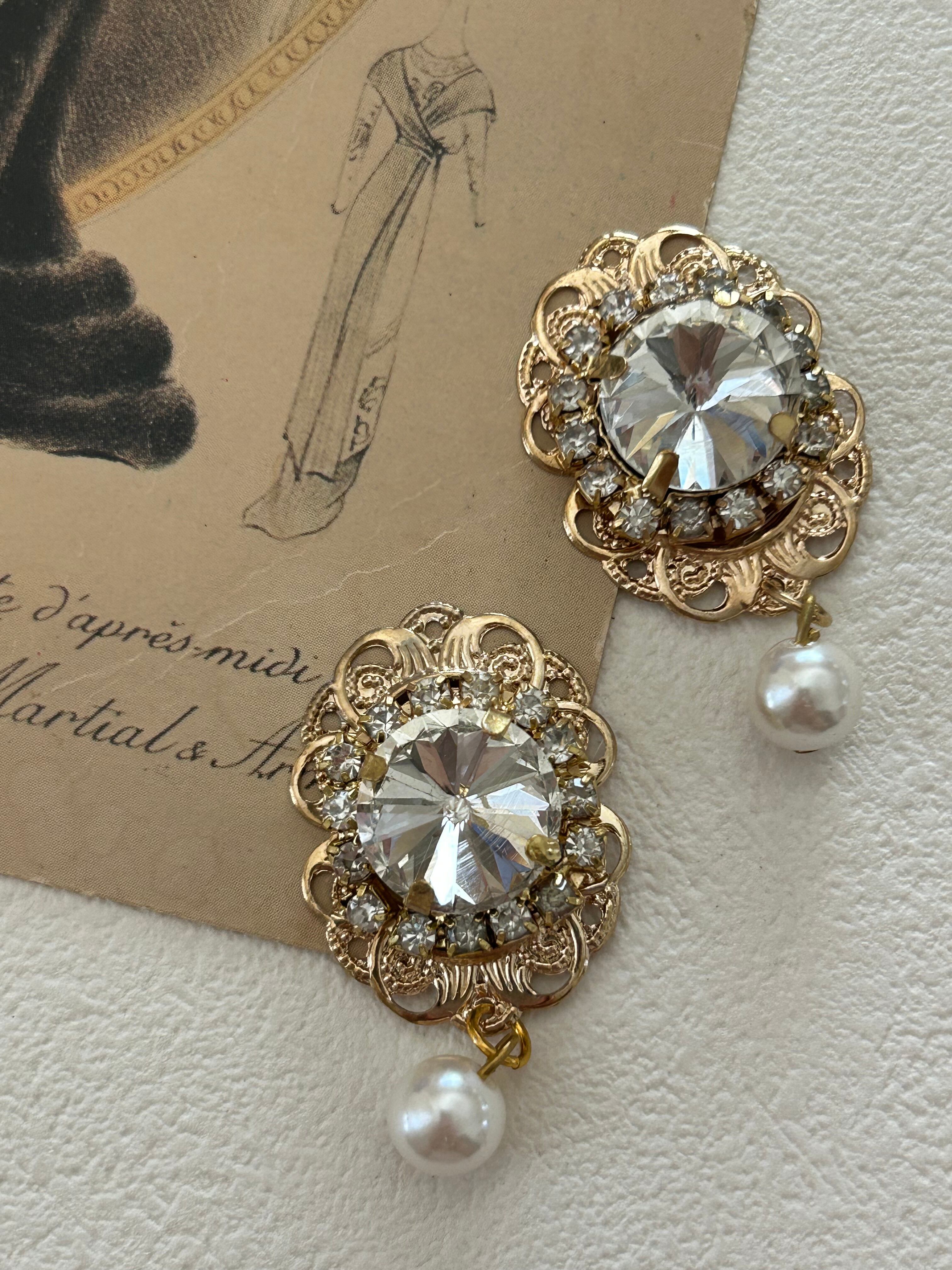 輸入デザインパーツ フレーム付ビジューのデコレーションパーツ 45mm ビジュー ストーン パール調ビーズ デコレーション材 カルトナージュ アクセサリーパーツ