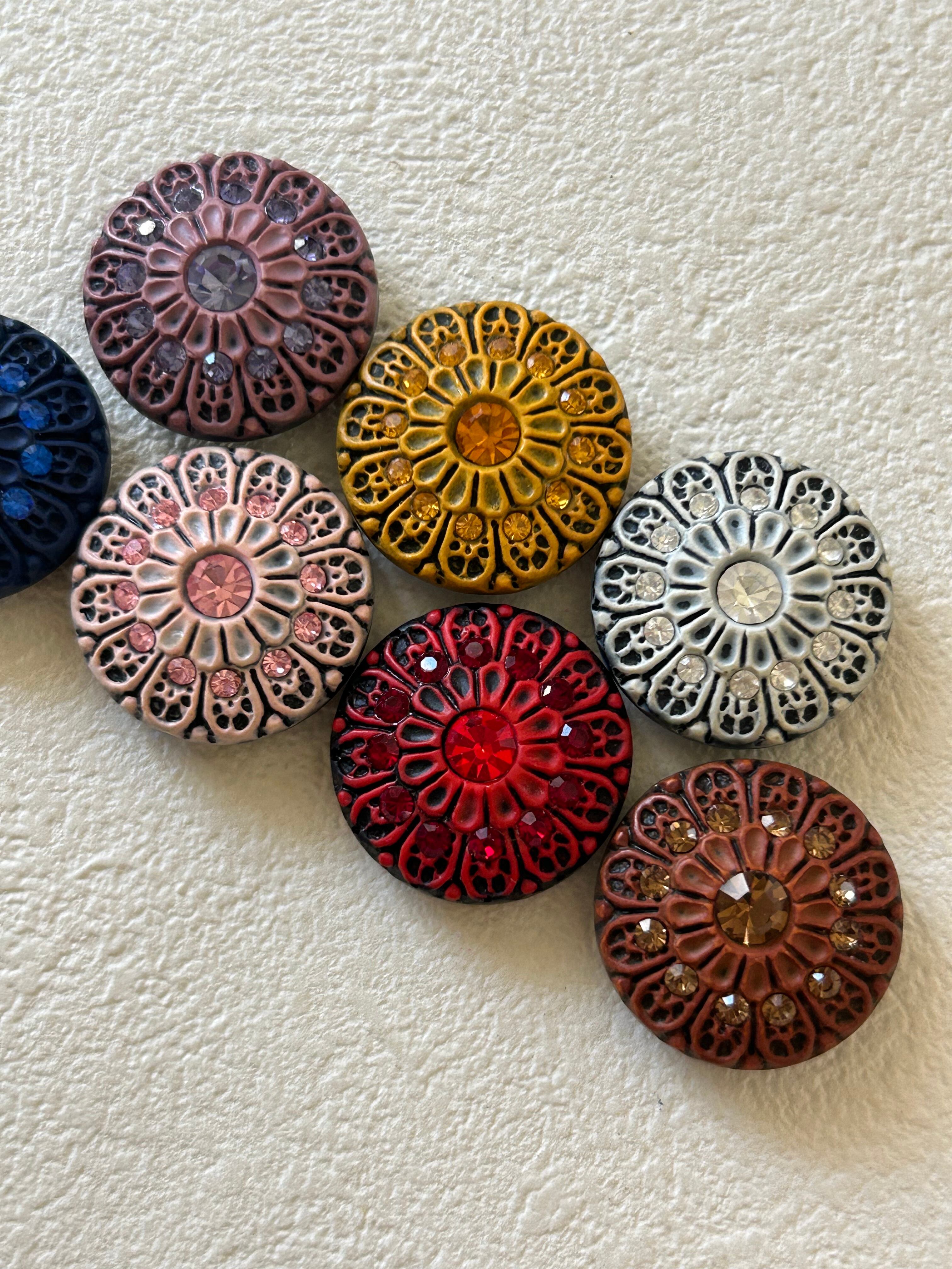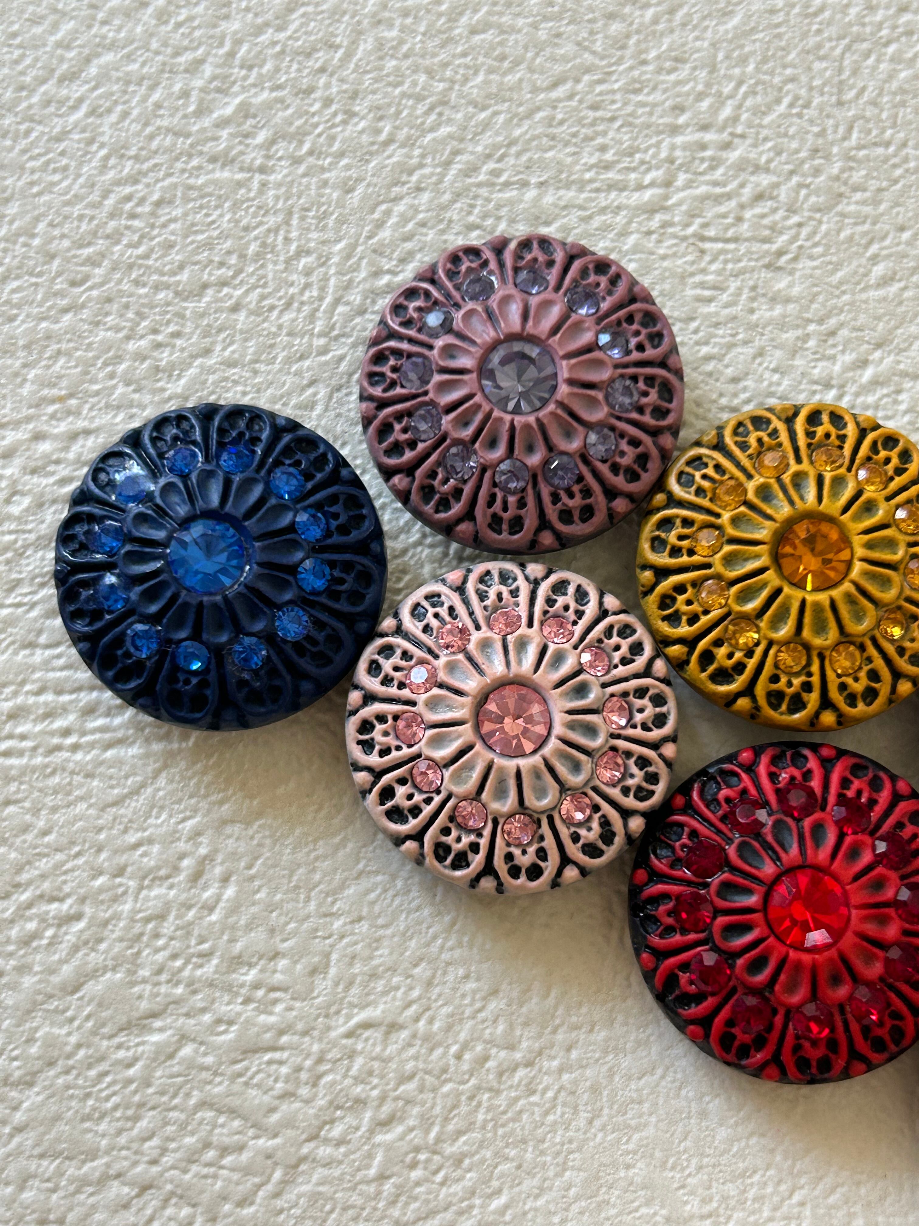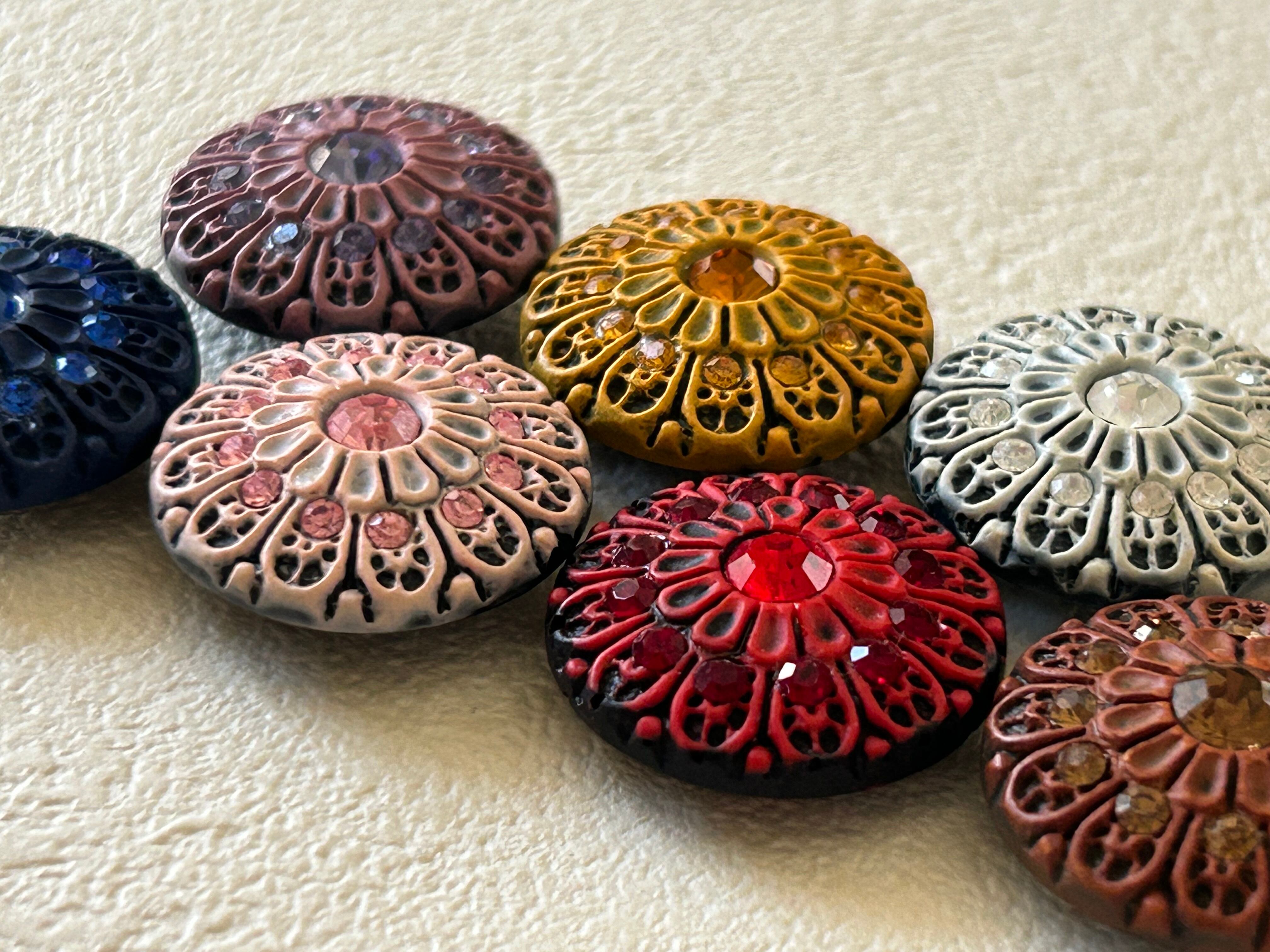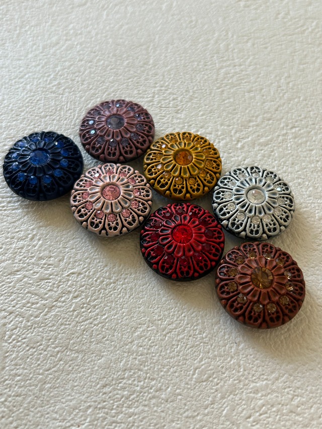 ボタンと同じ色の大小カラーストーン。