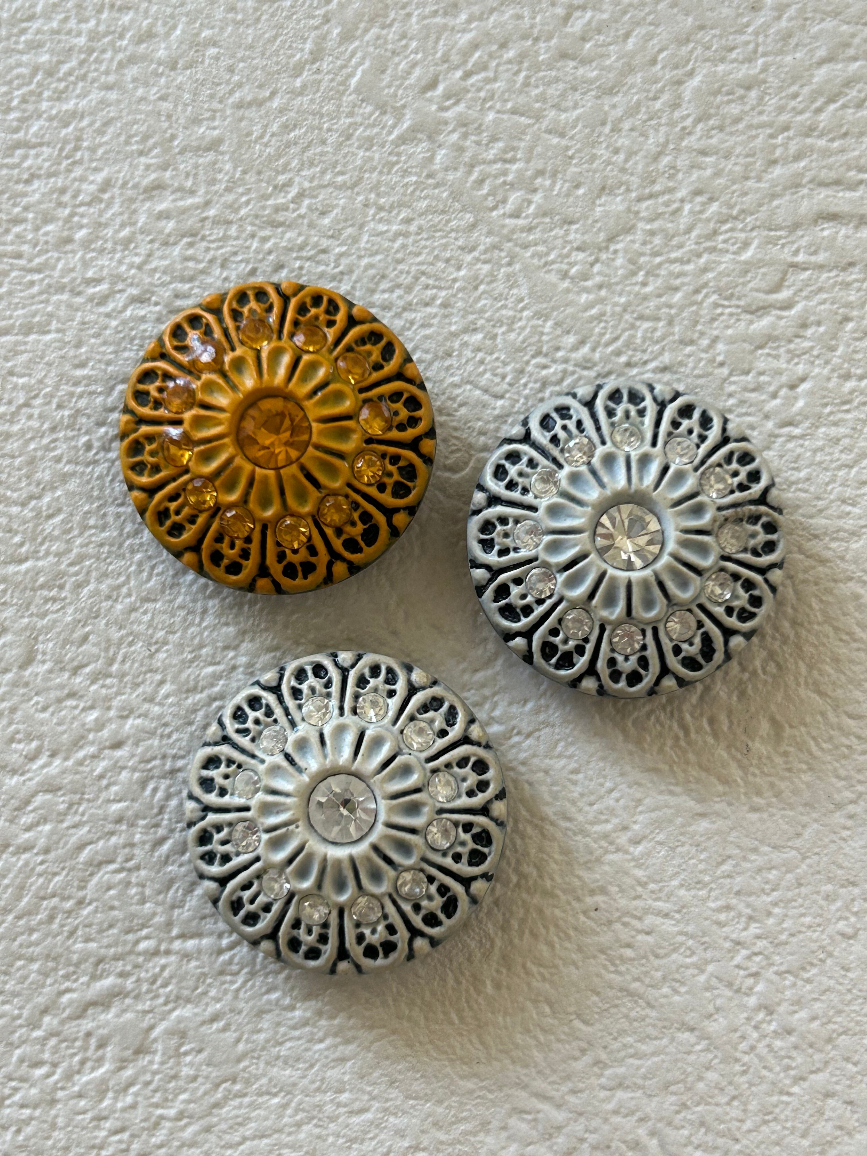 輸入デザインボタン デイジー レース 20mm アクセサリーパーツ デコレーション材 プラスチック×ストーン
