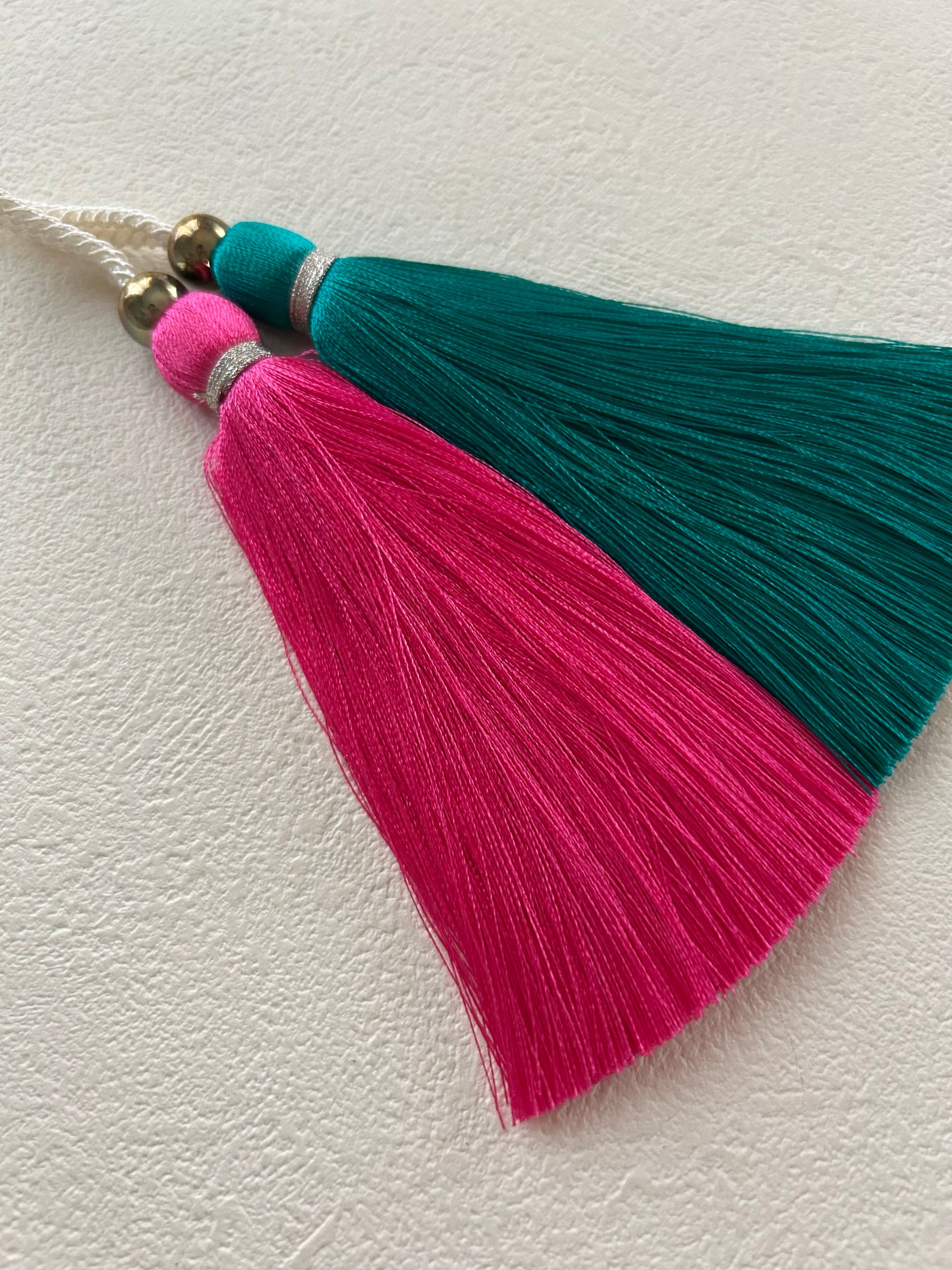 艶やで鮮やかなお色の糸、シンプルで美しいタッセルです。