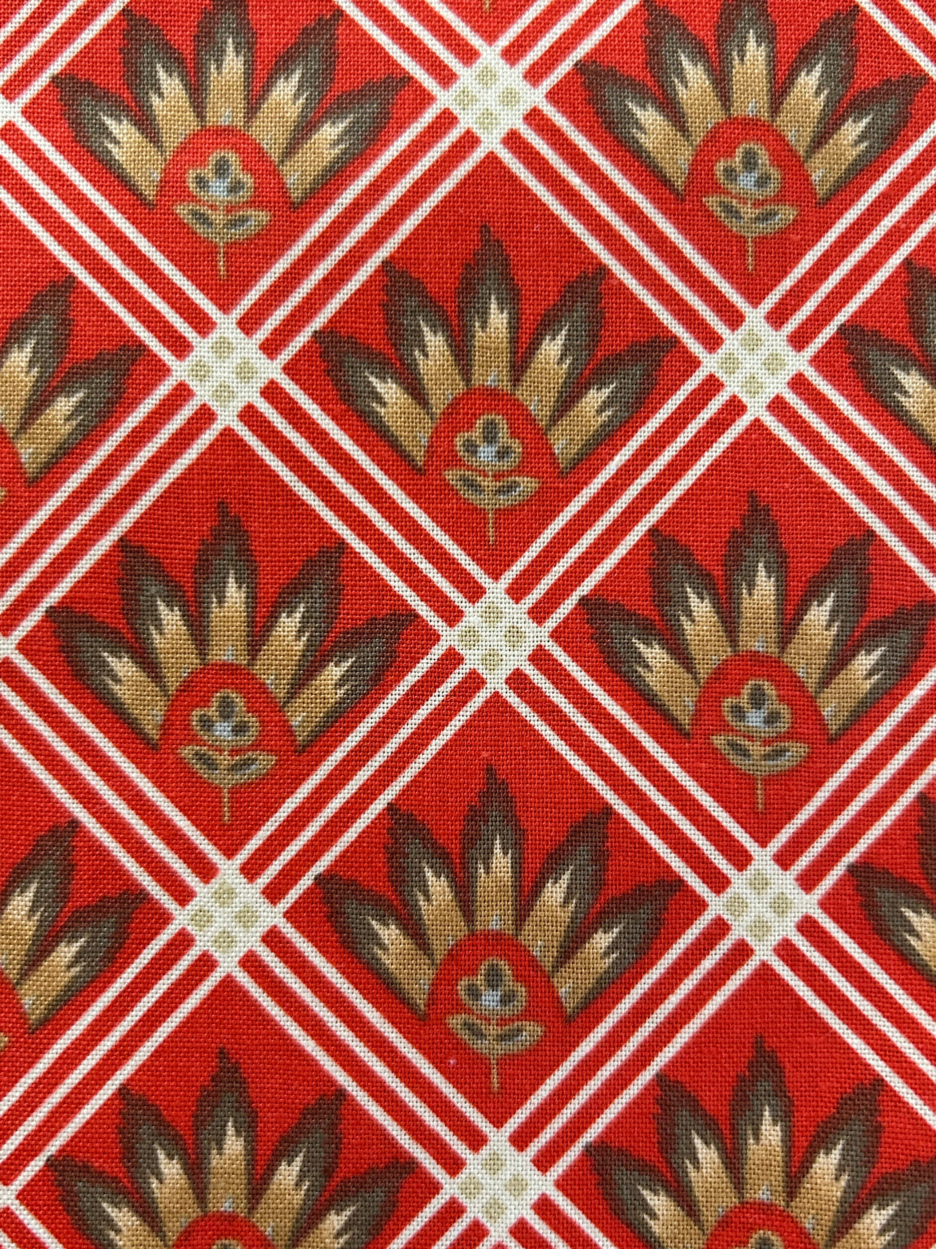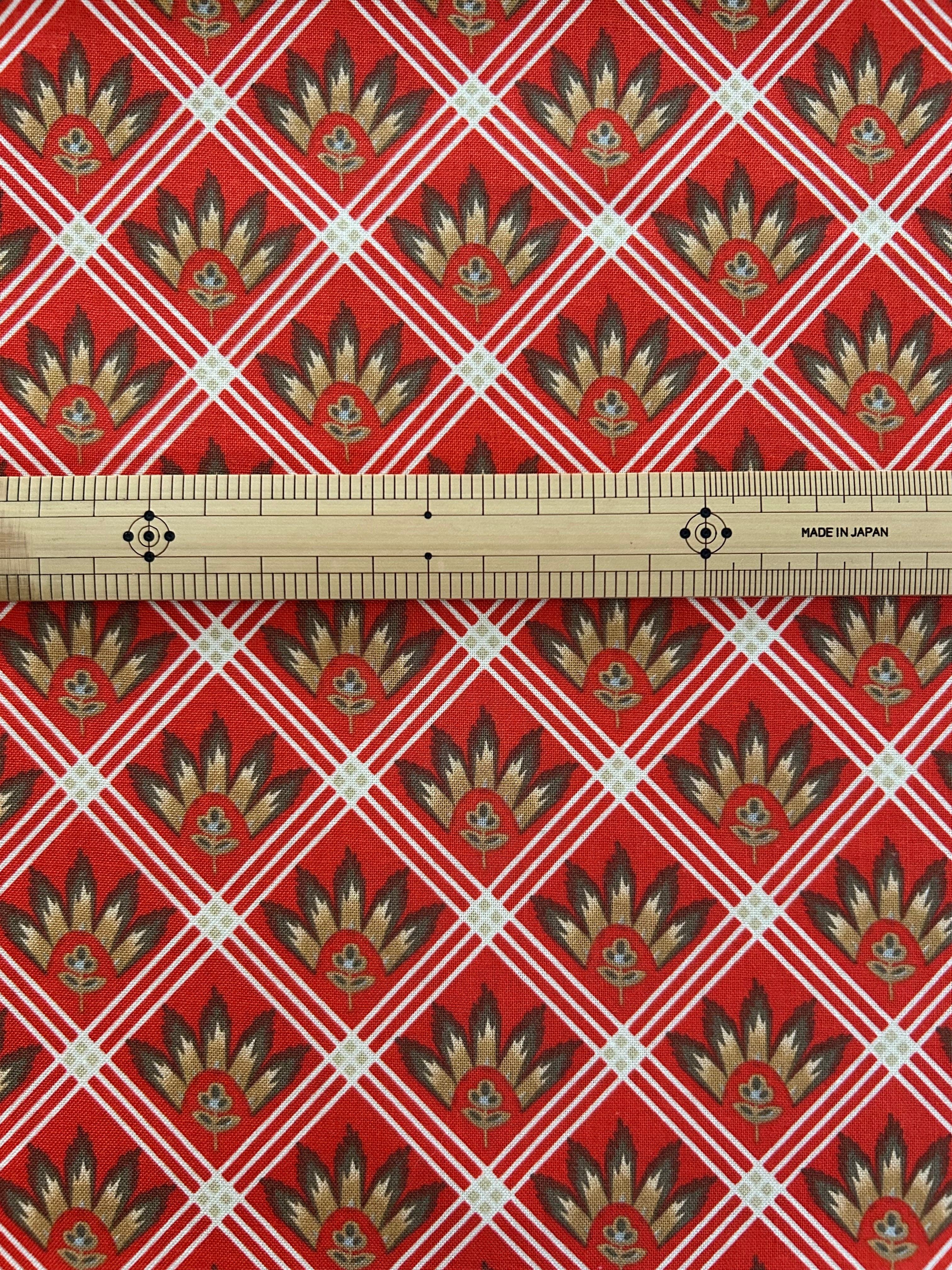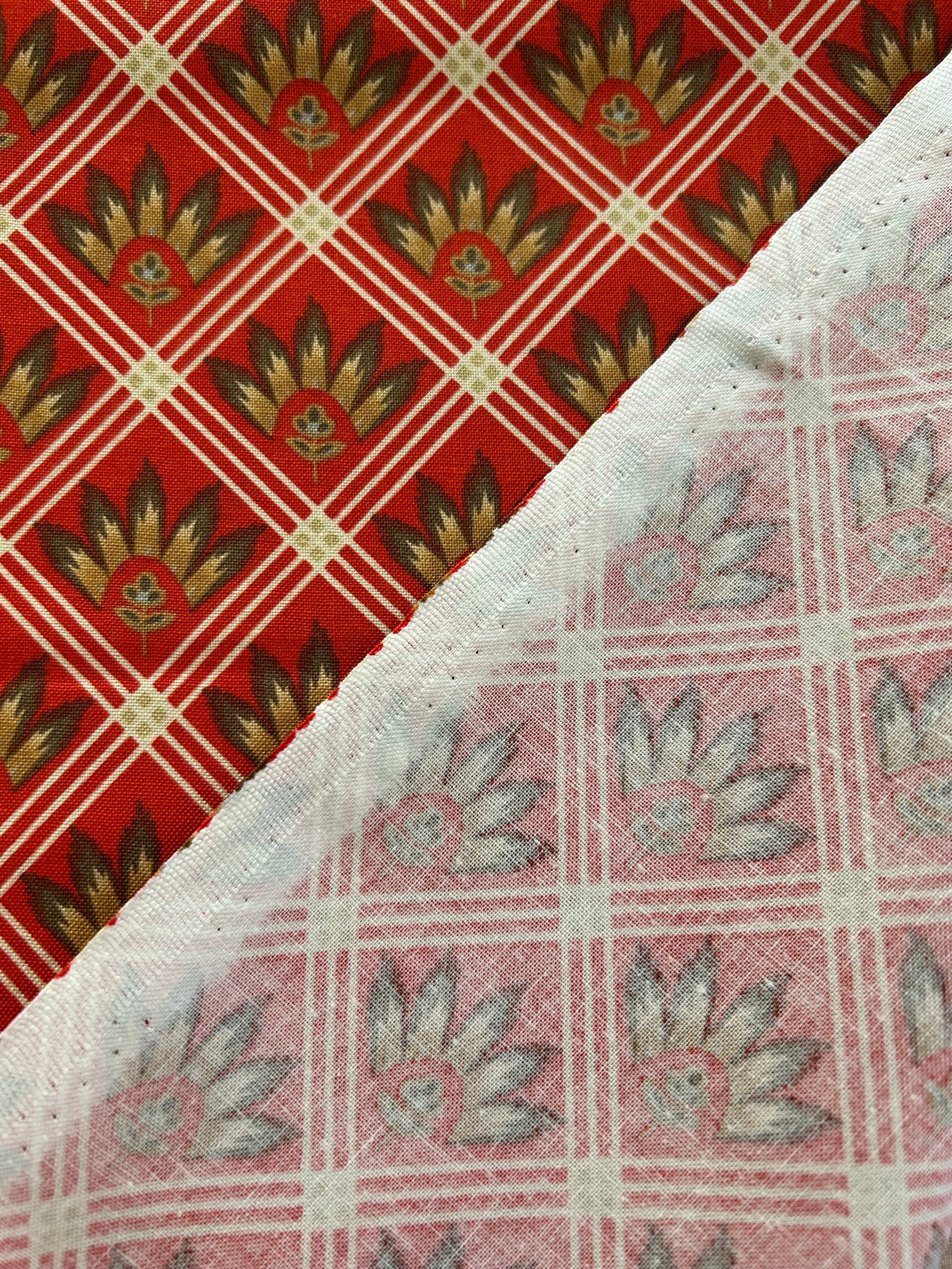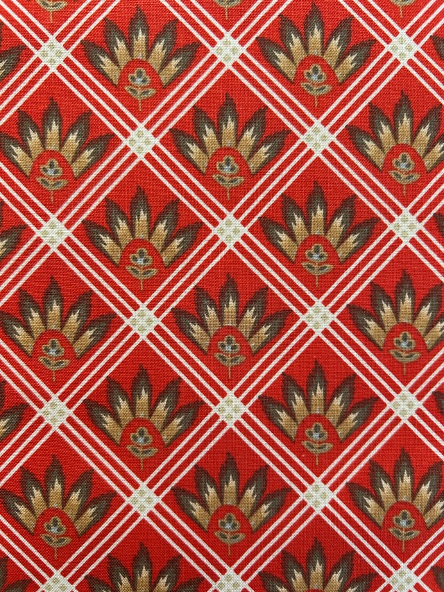 輸入コットンファブリック フレンチ柄 ソレイアード柄 レッド系×ブラウン USAファブリック カルトナージュ