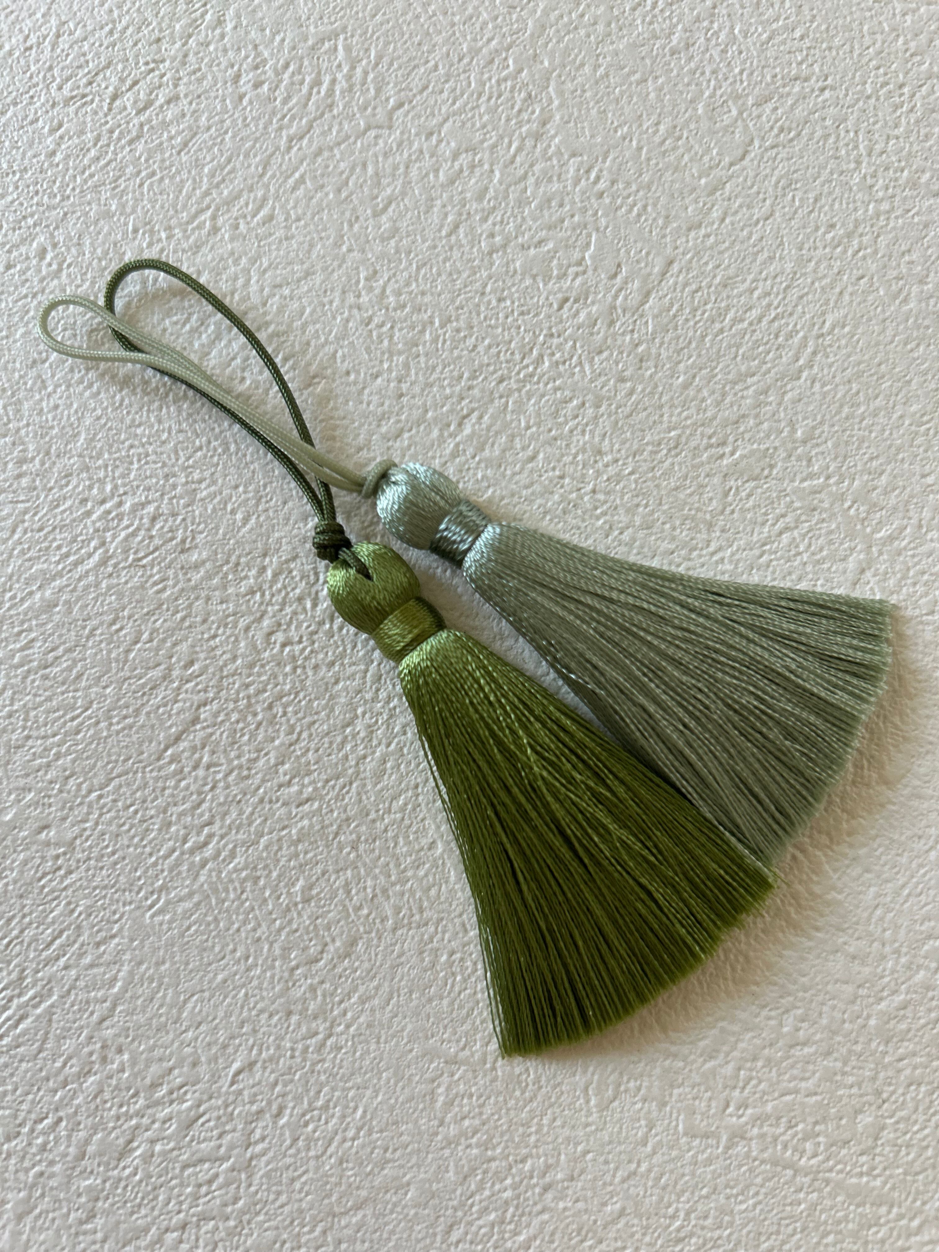 画像のようなグリーン系のタッセル。オリーブグリーンとミントグリーン。