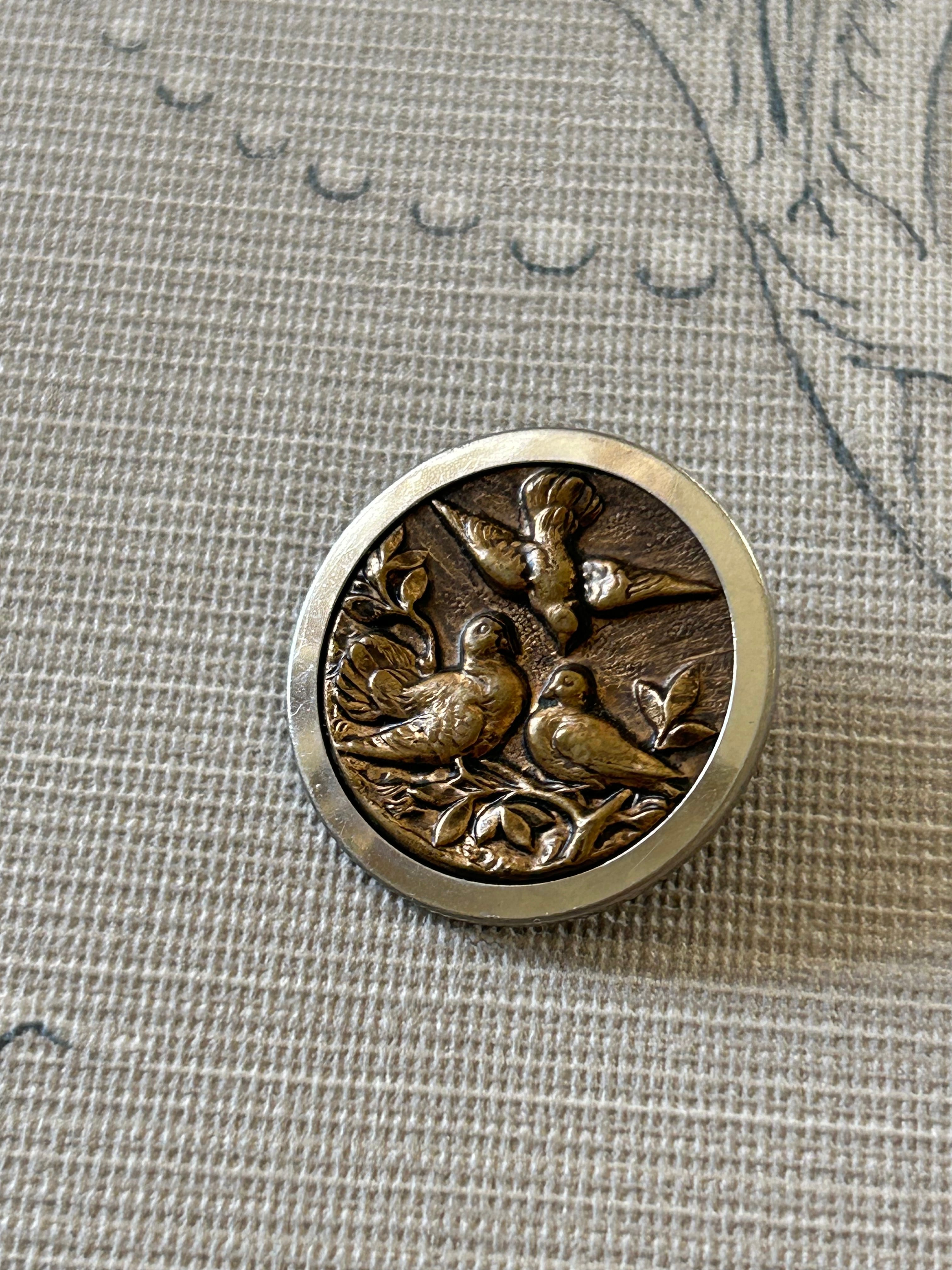 フランスアンティークボタン メタル ピクチャーボタン 32mm 鳥 鳩 アクセサリーパーツ コレクション デコレーション材