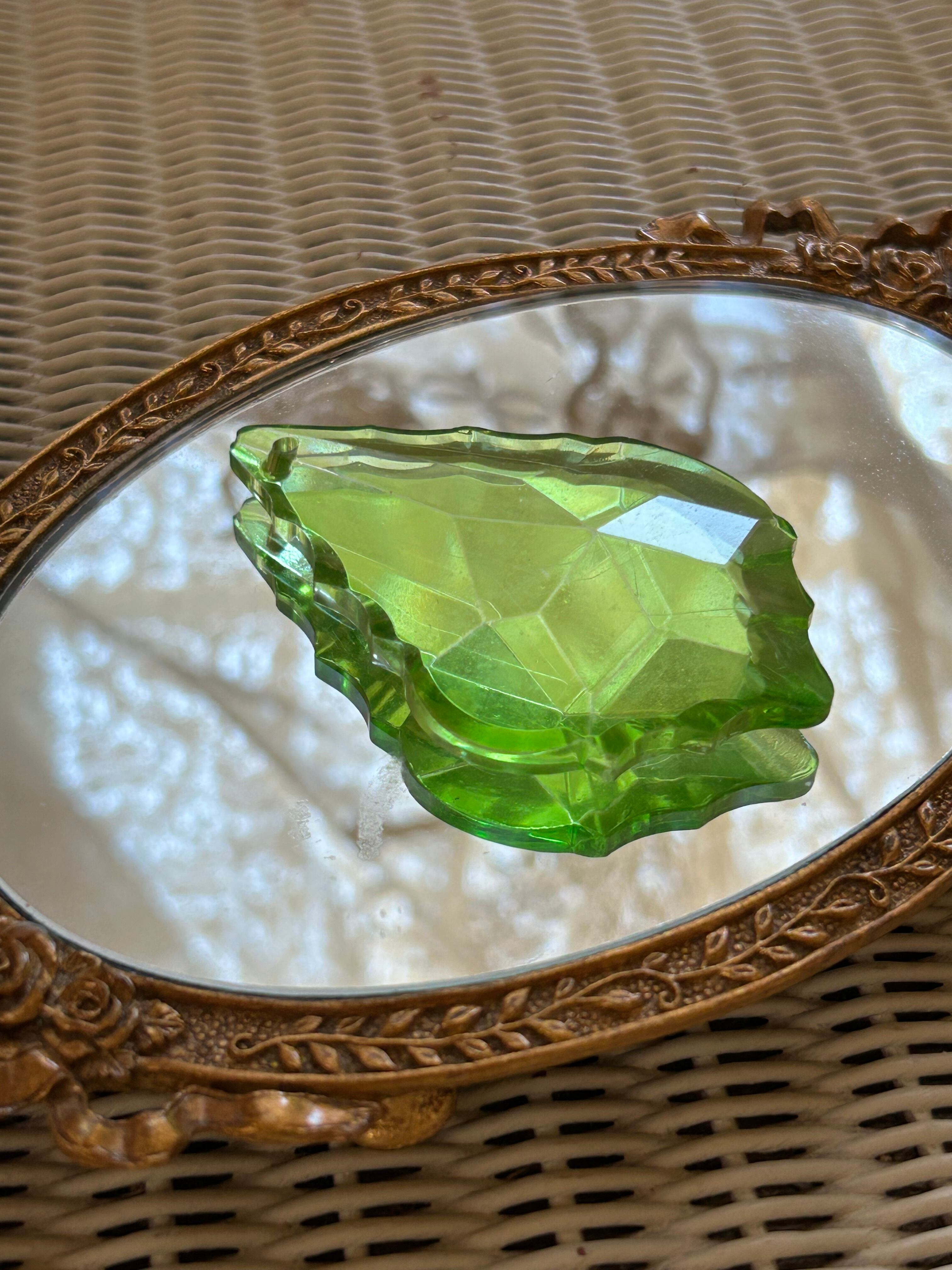 英国アンティーク シャンデリアパーツ サンキャッチャー イエローグリーン ガラス カットガラス インテリア小物 オブジェ ペーパーウェイト