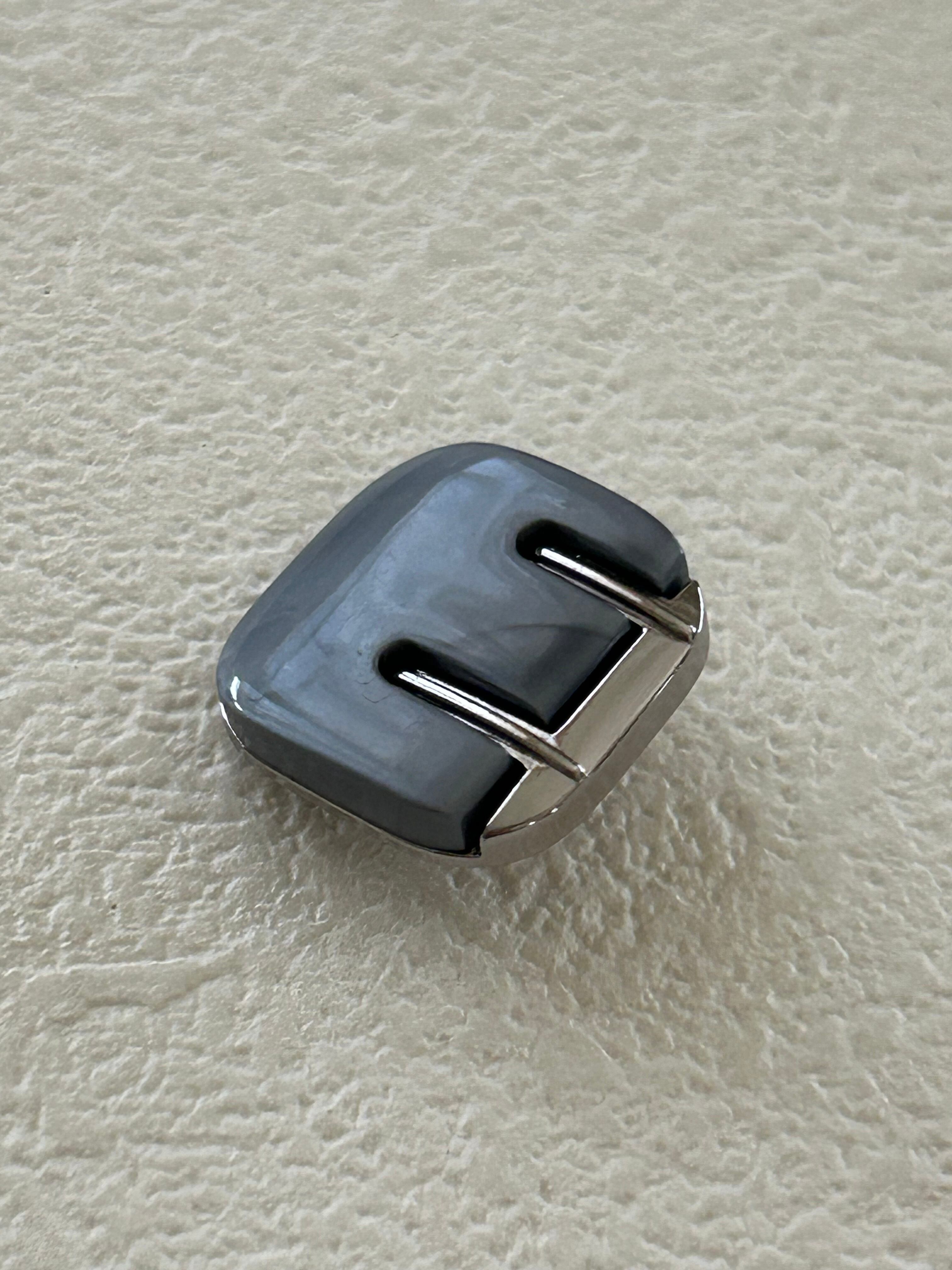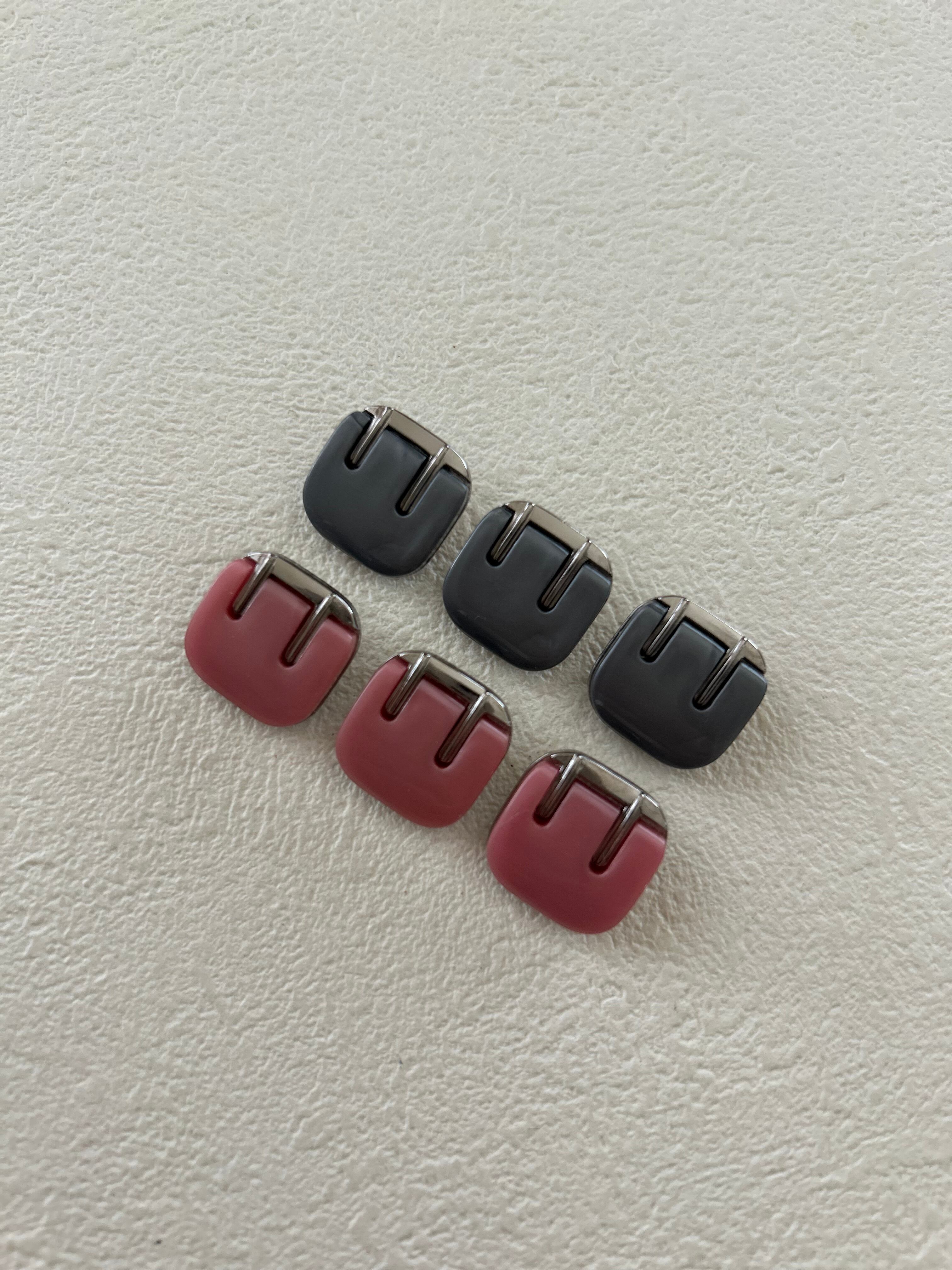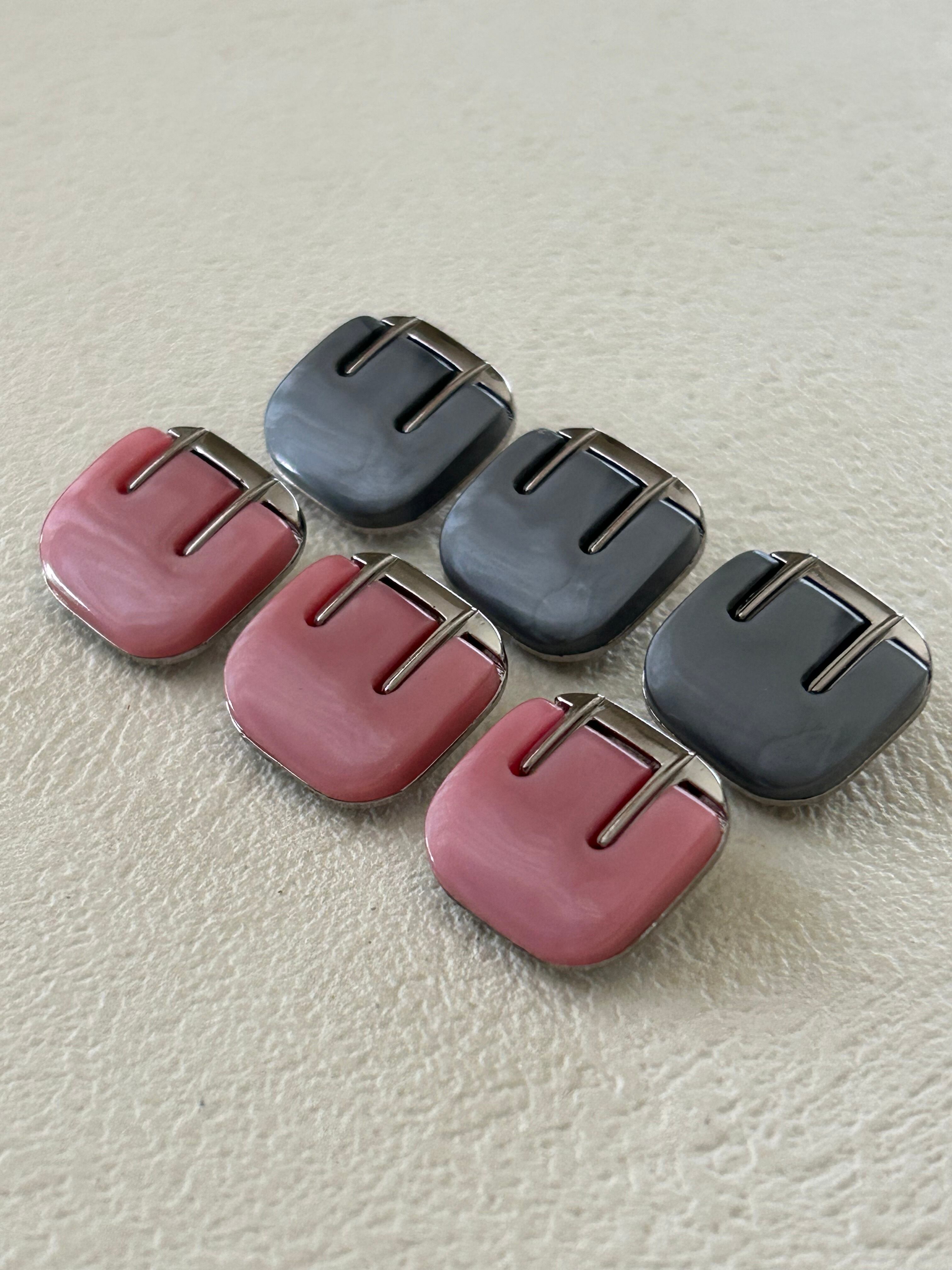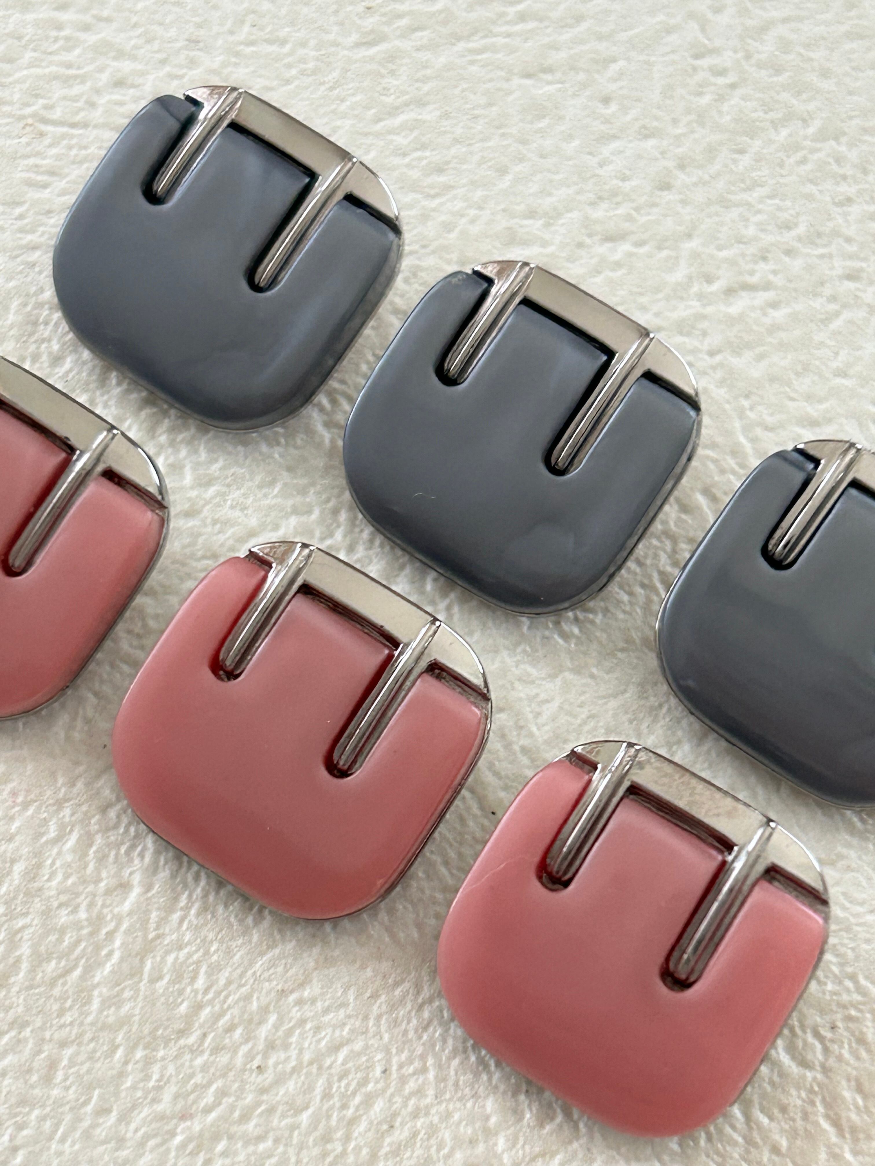 シルバーの台座にぽってりとしたお色のピンク、グレーのカボション。