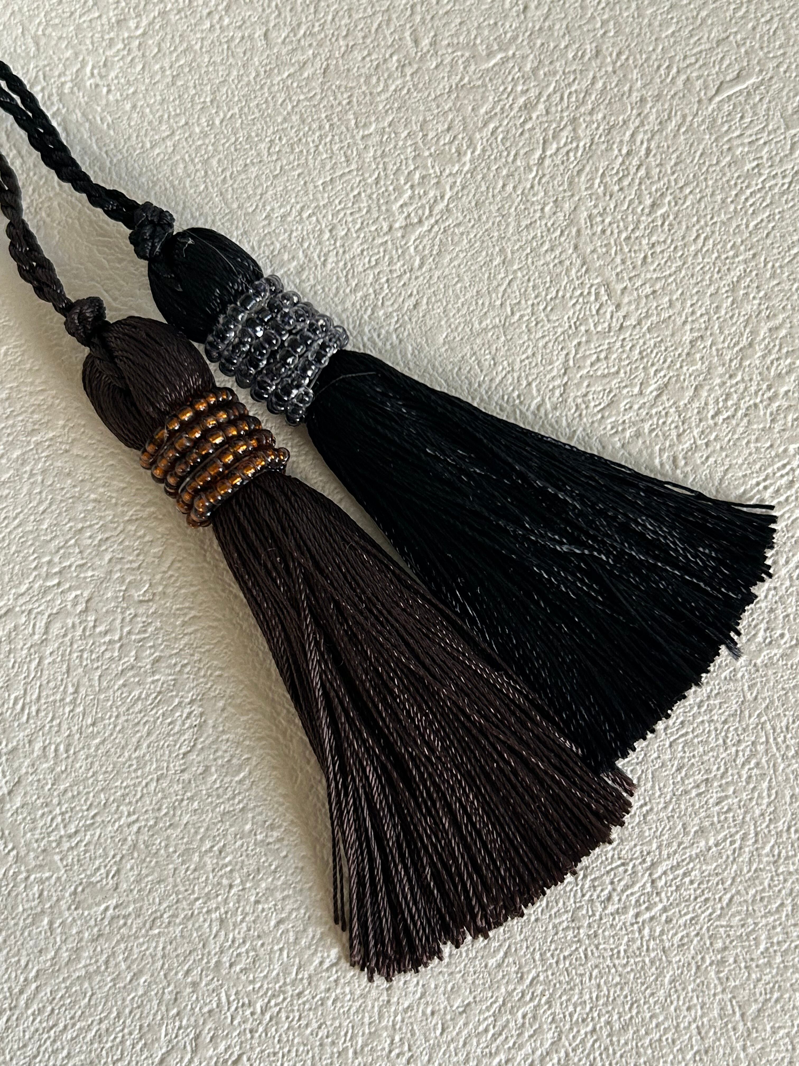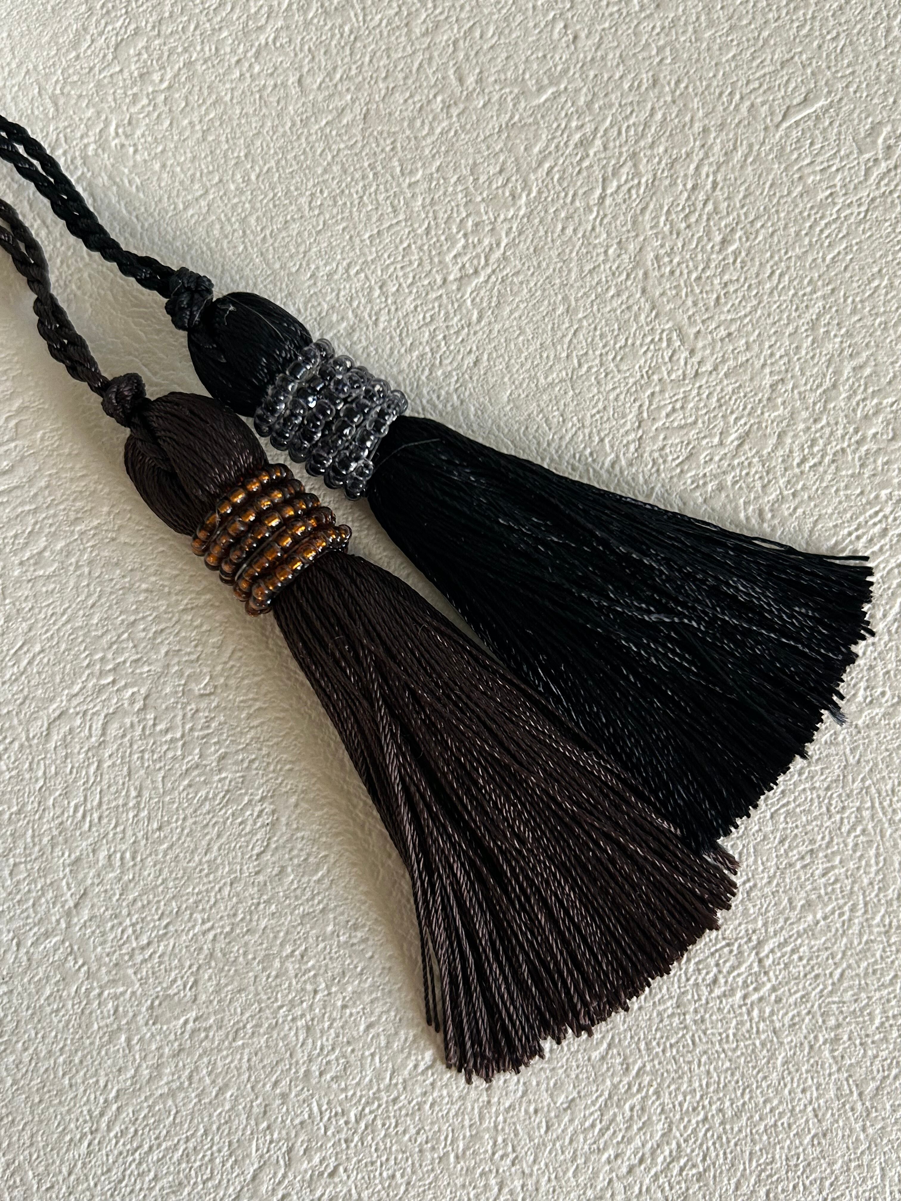 輸入デザインタッセル 8.5cm ビーズ ブラック/ブラウン カルトナージュ バッグチャーム インテリアタッセル