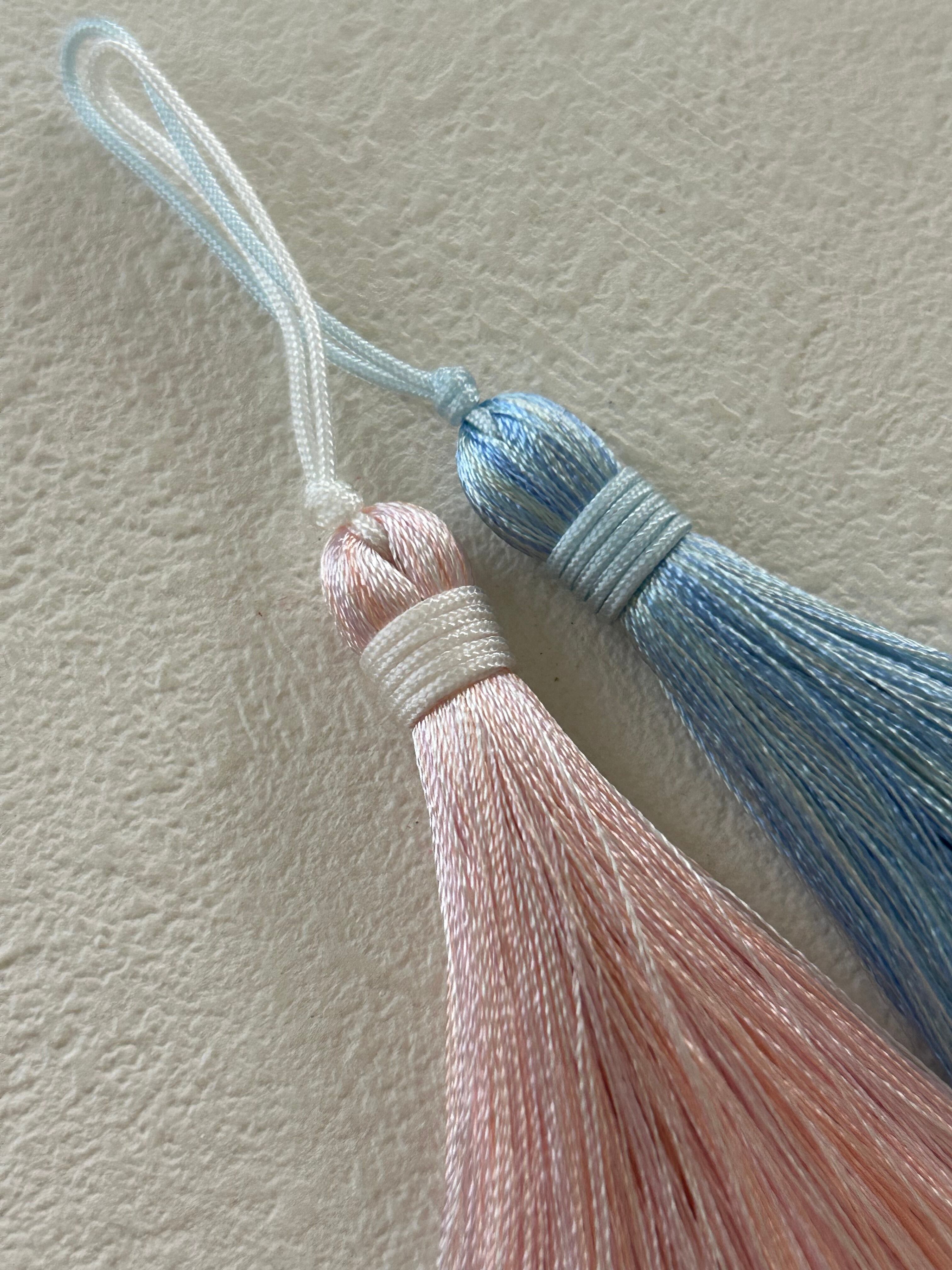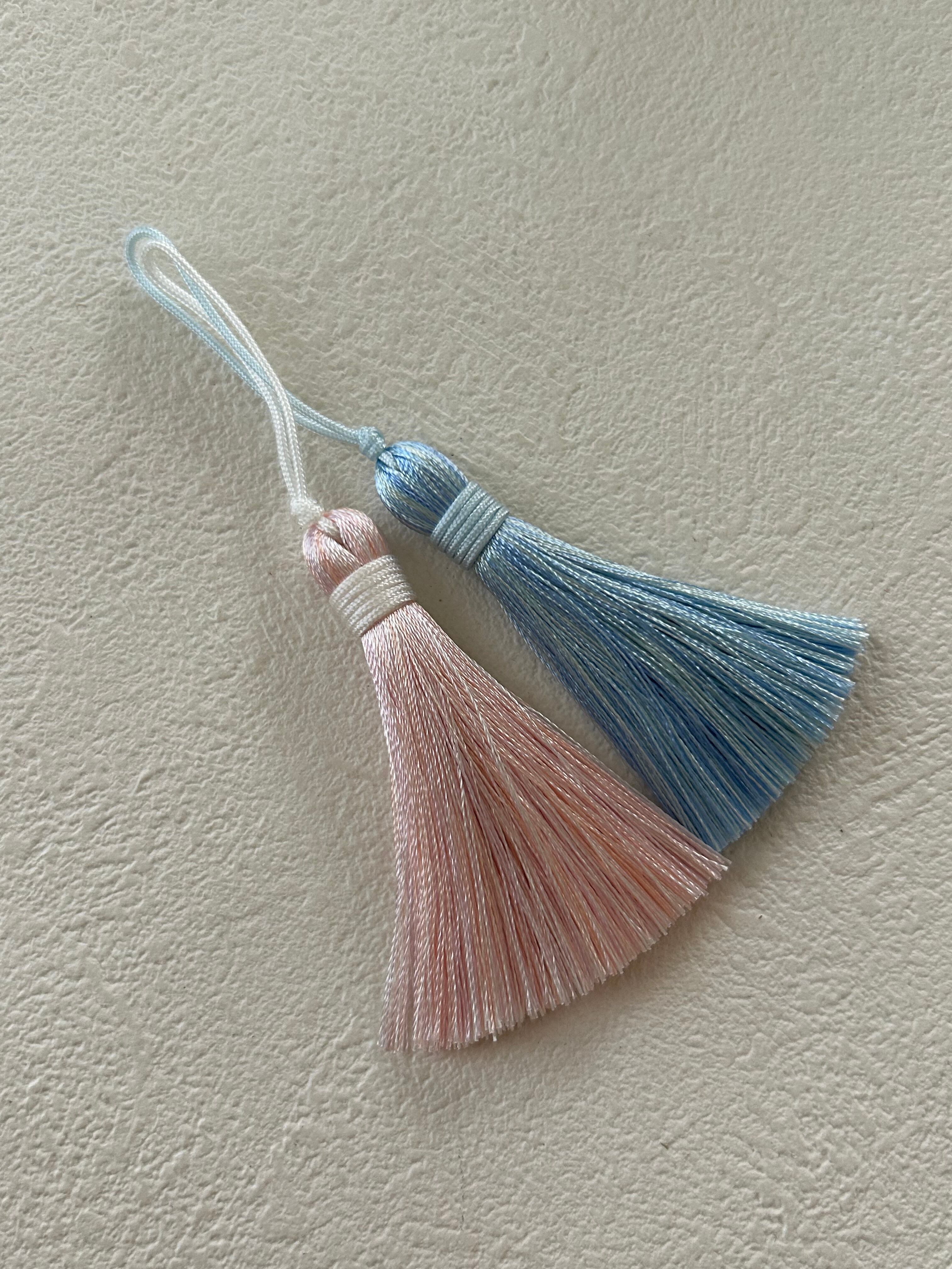 艶やかな糸、淡く優しいお色使いのシンプルなデザインタッセルです。