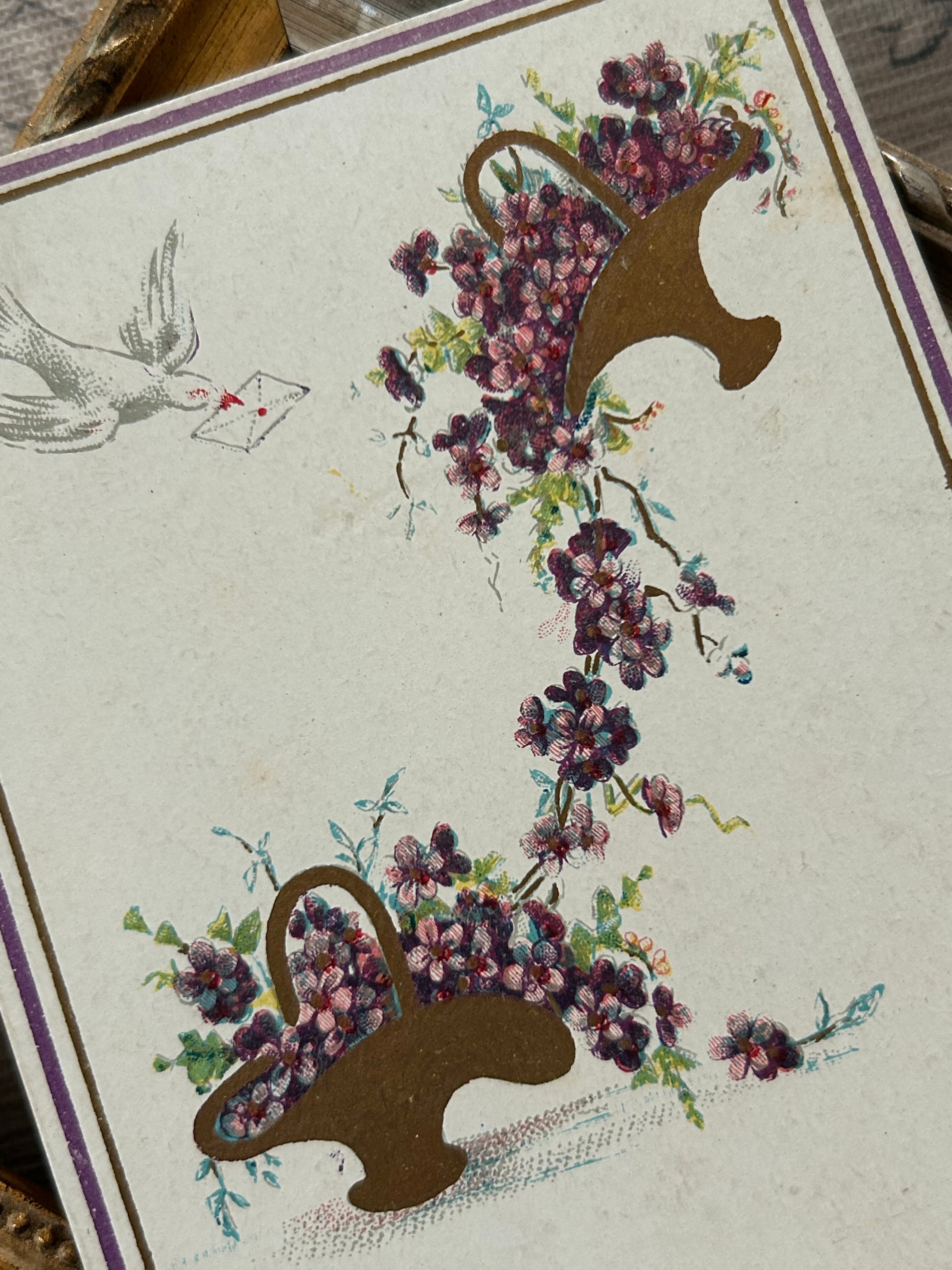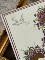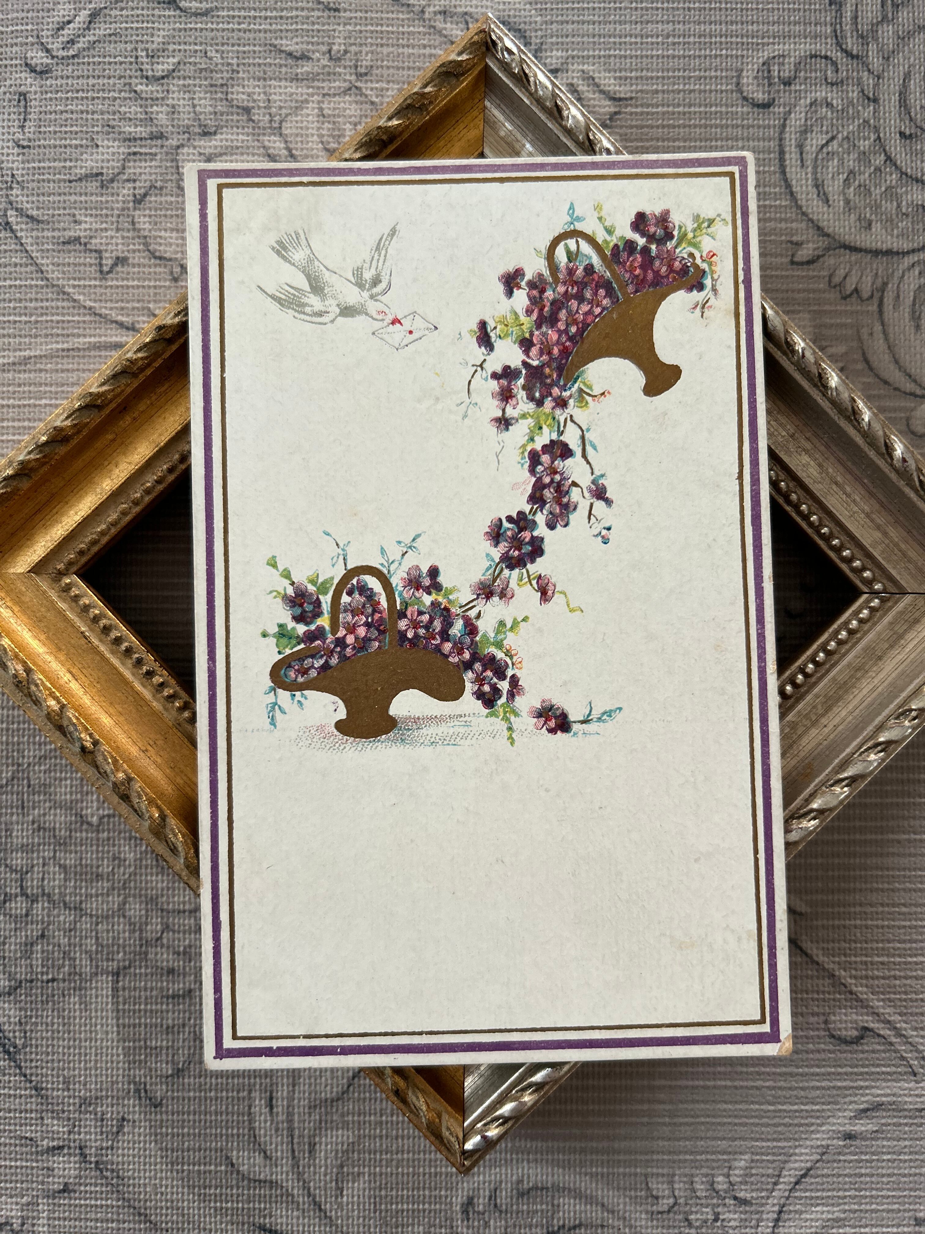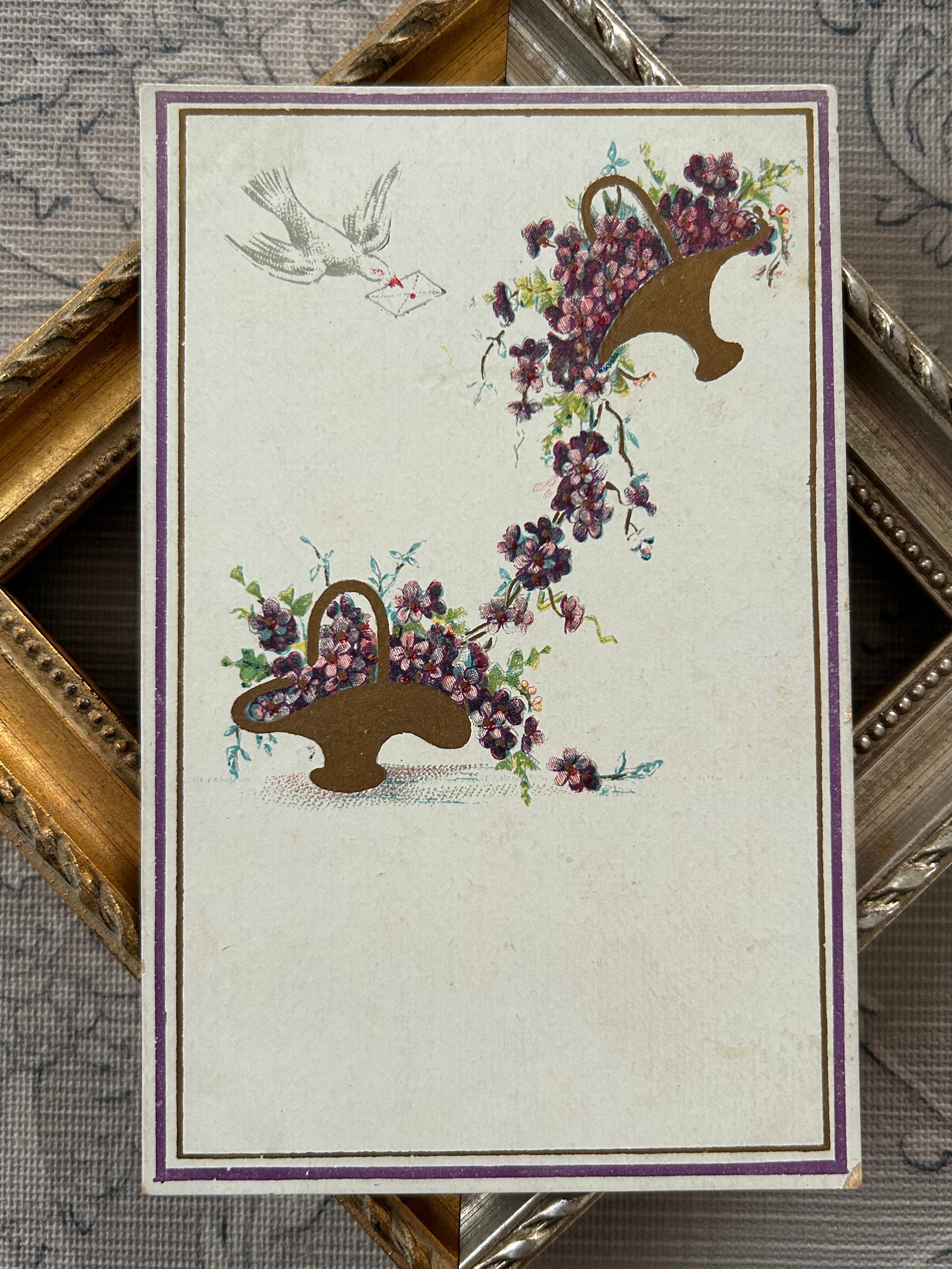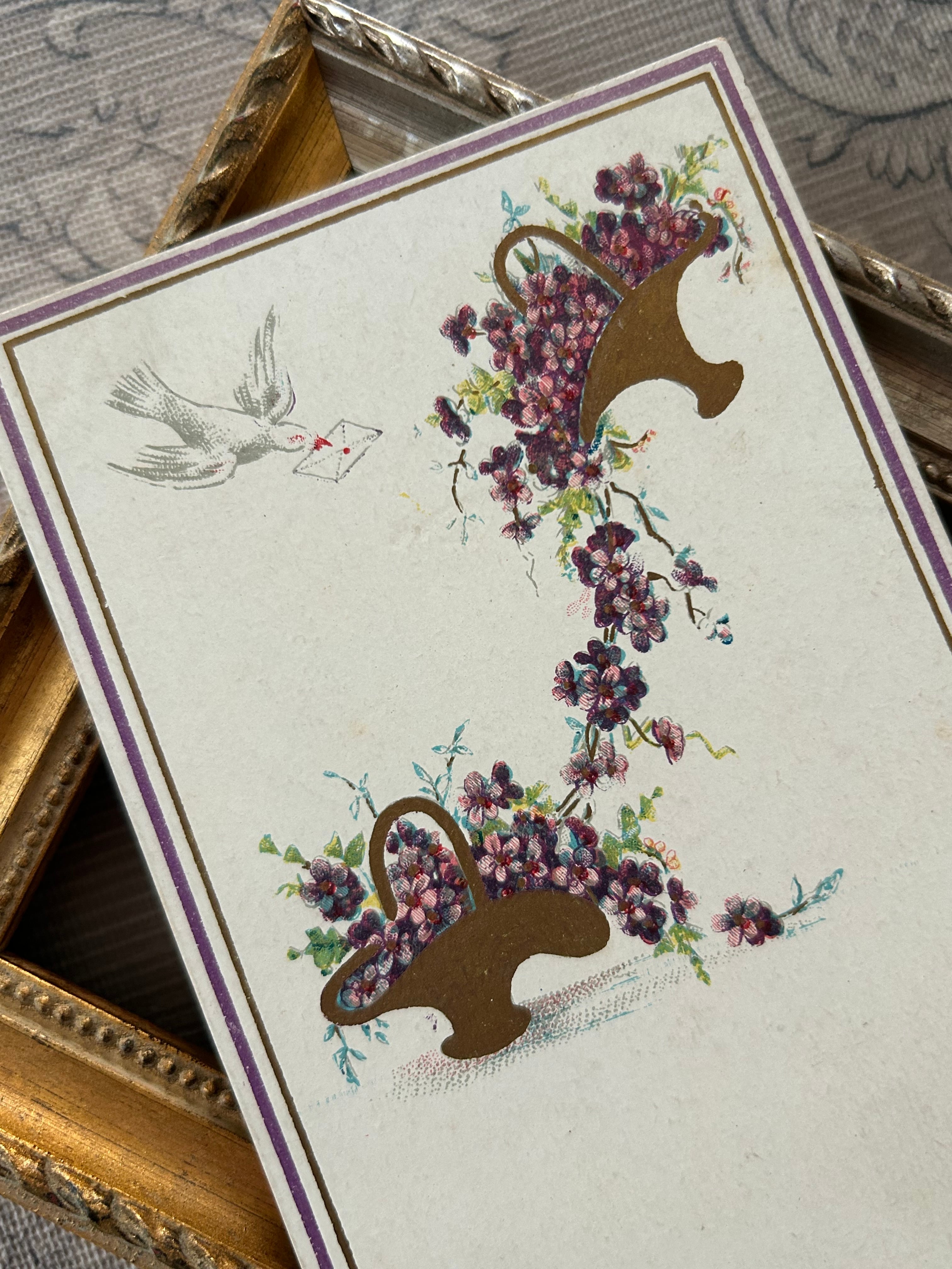 アンティークポストカード すみれの花籠 白鳩 フラワーバスケット ヴィオレット フランス 額装 インテリア 撮影小物