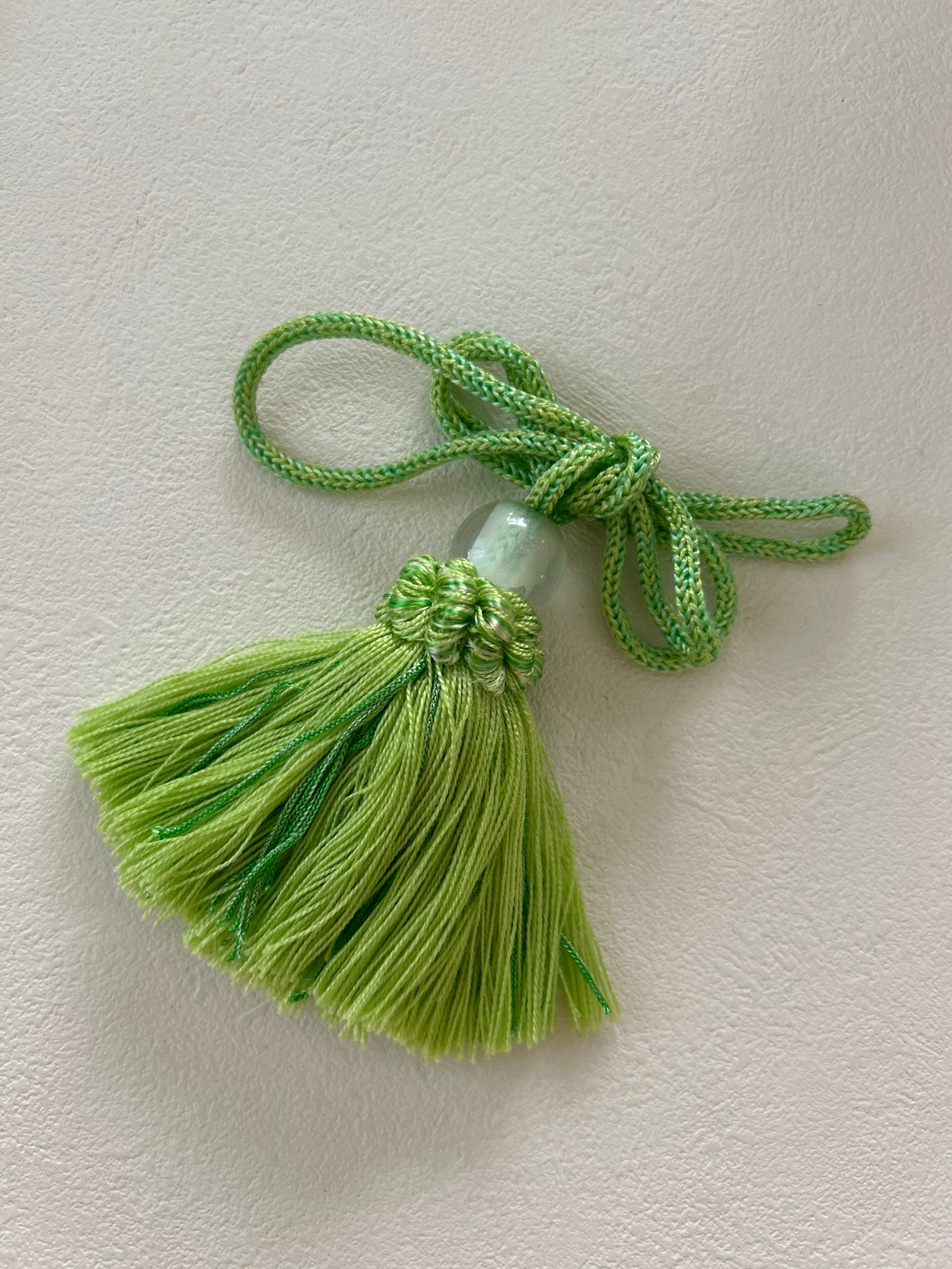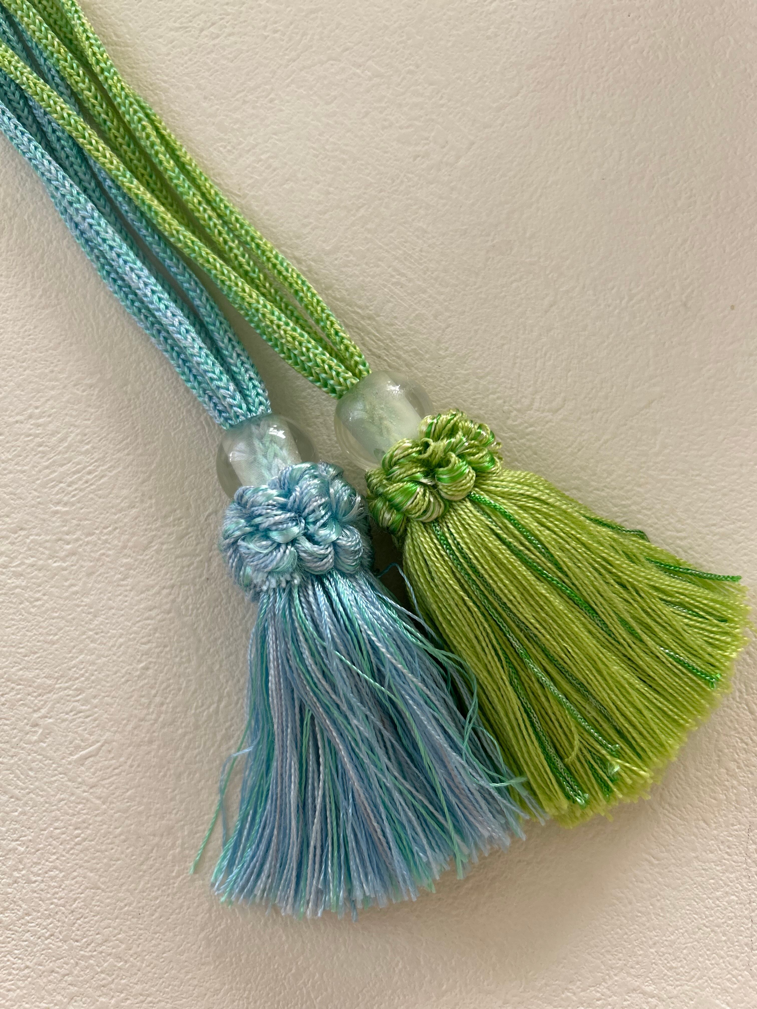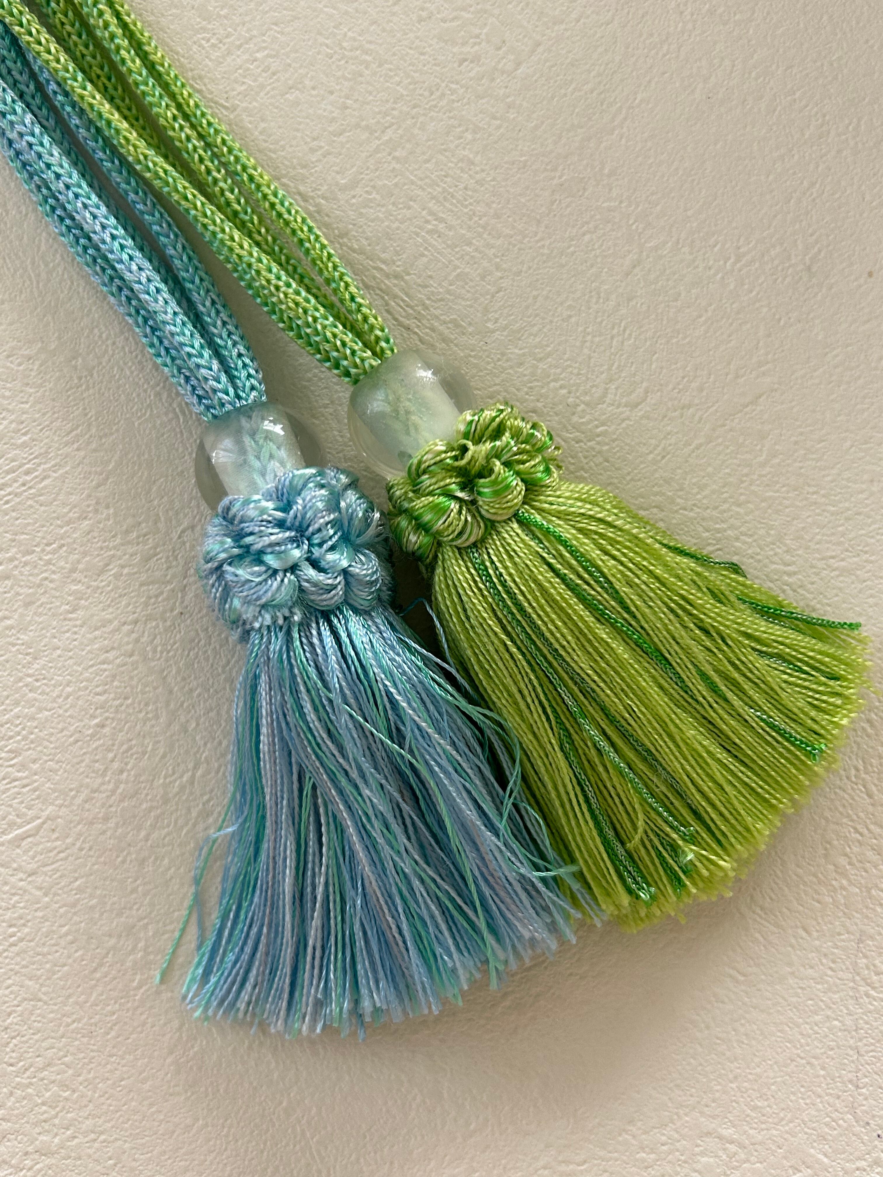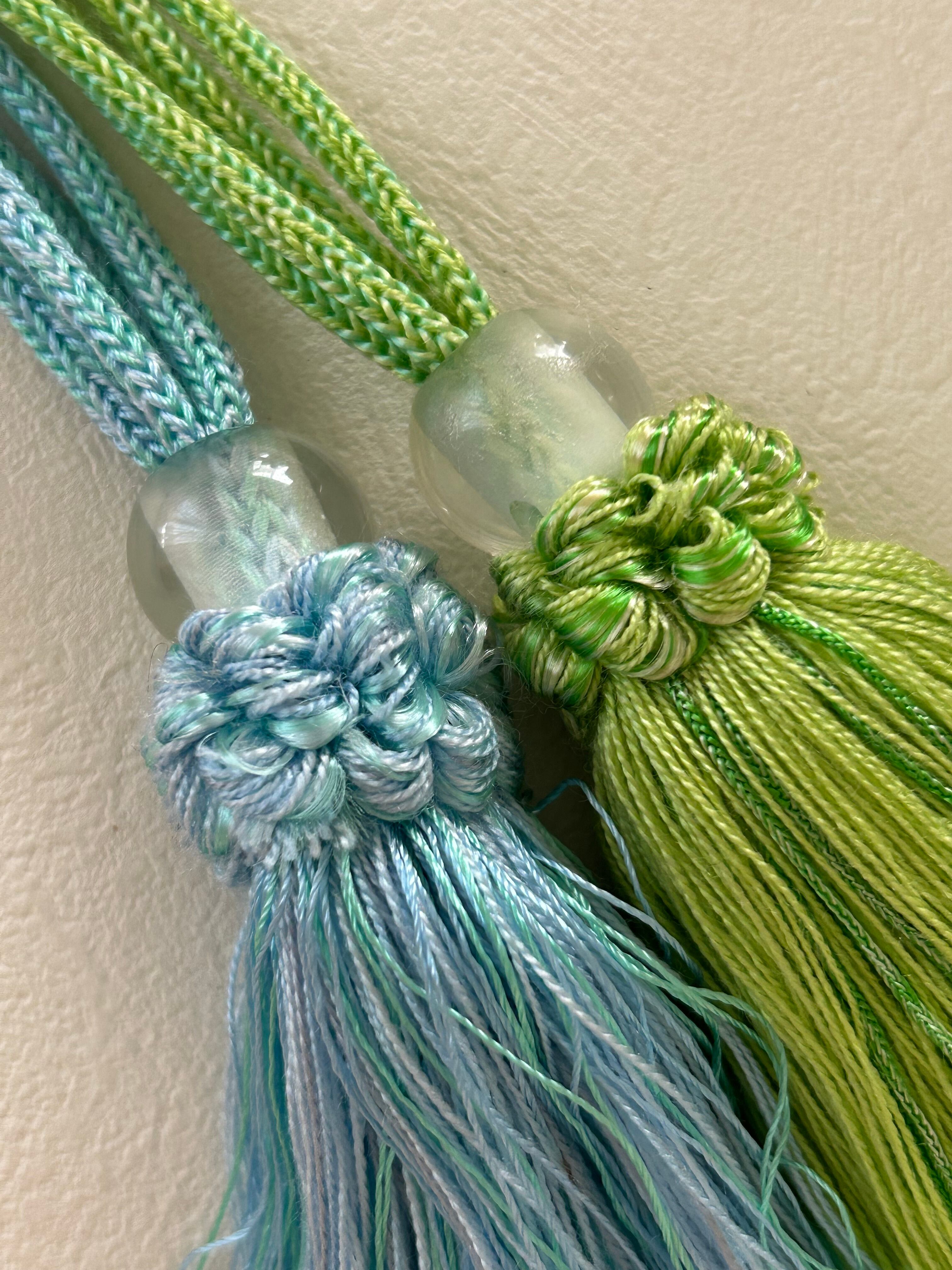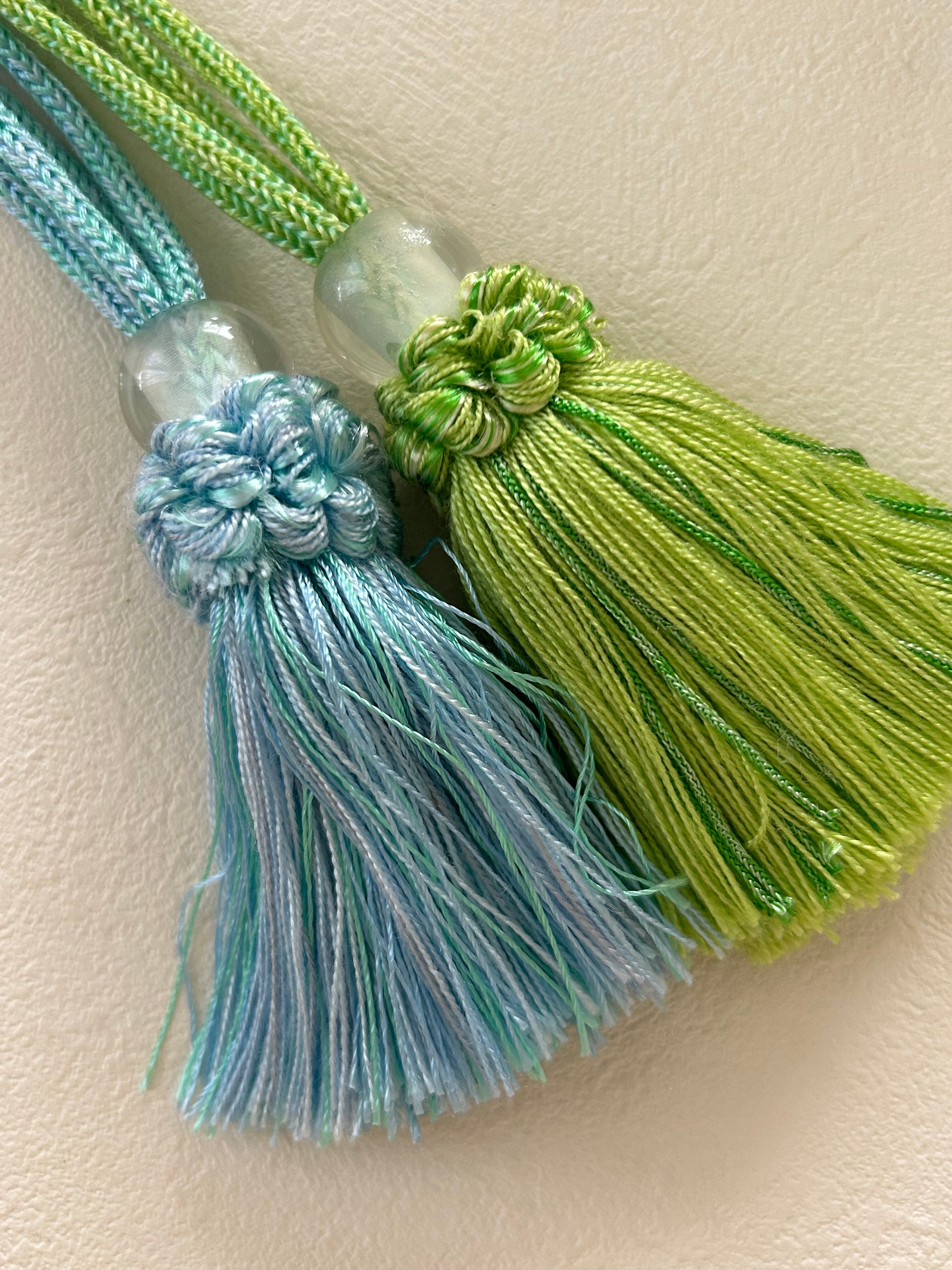 ロープタッセル フランス インテリアタッセル. イエローグリーン/ライトブルー 9cm カルトナージュ カーテンタッセル デコレーション材