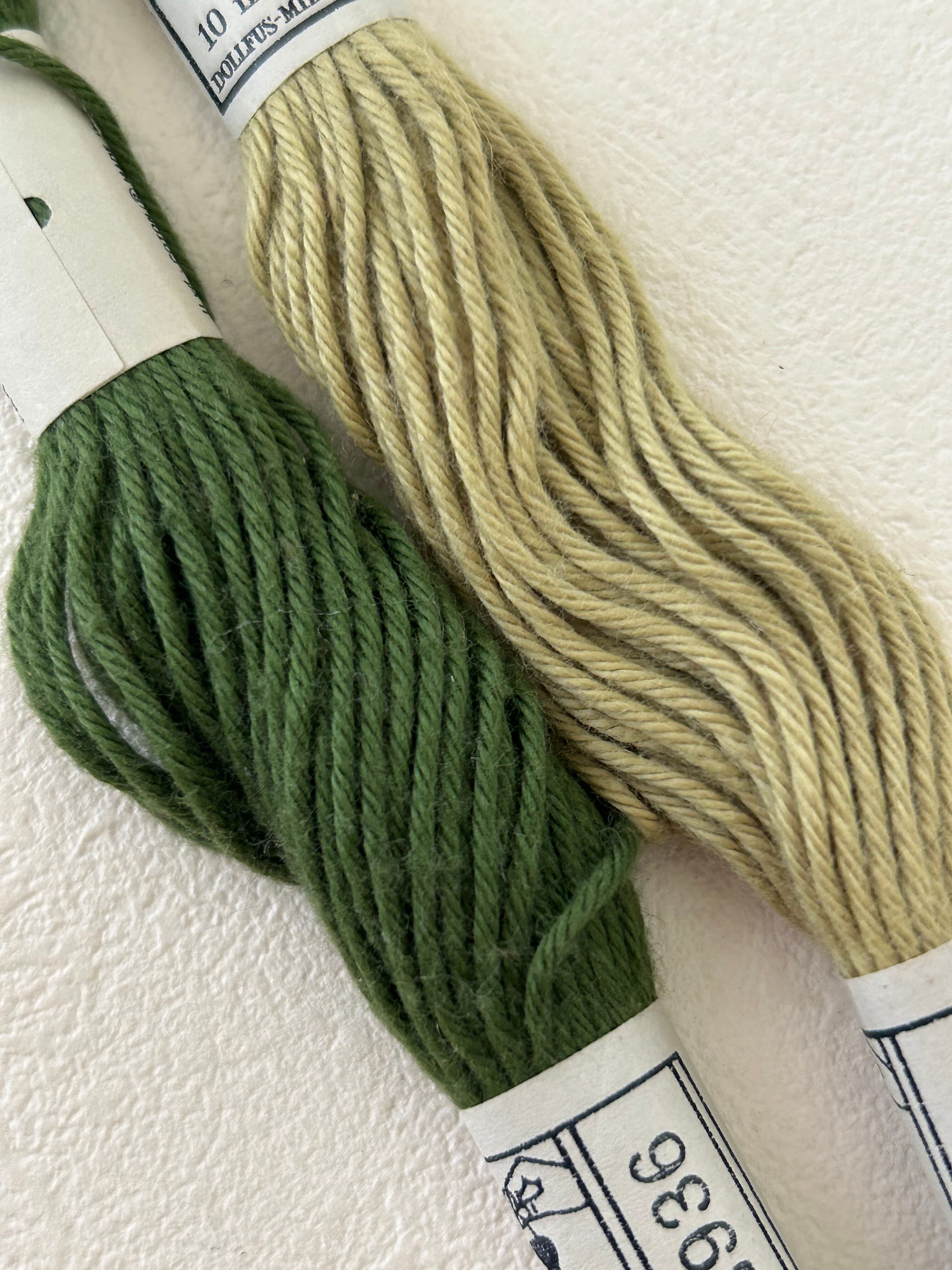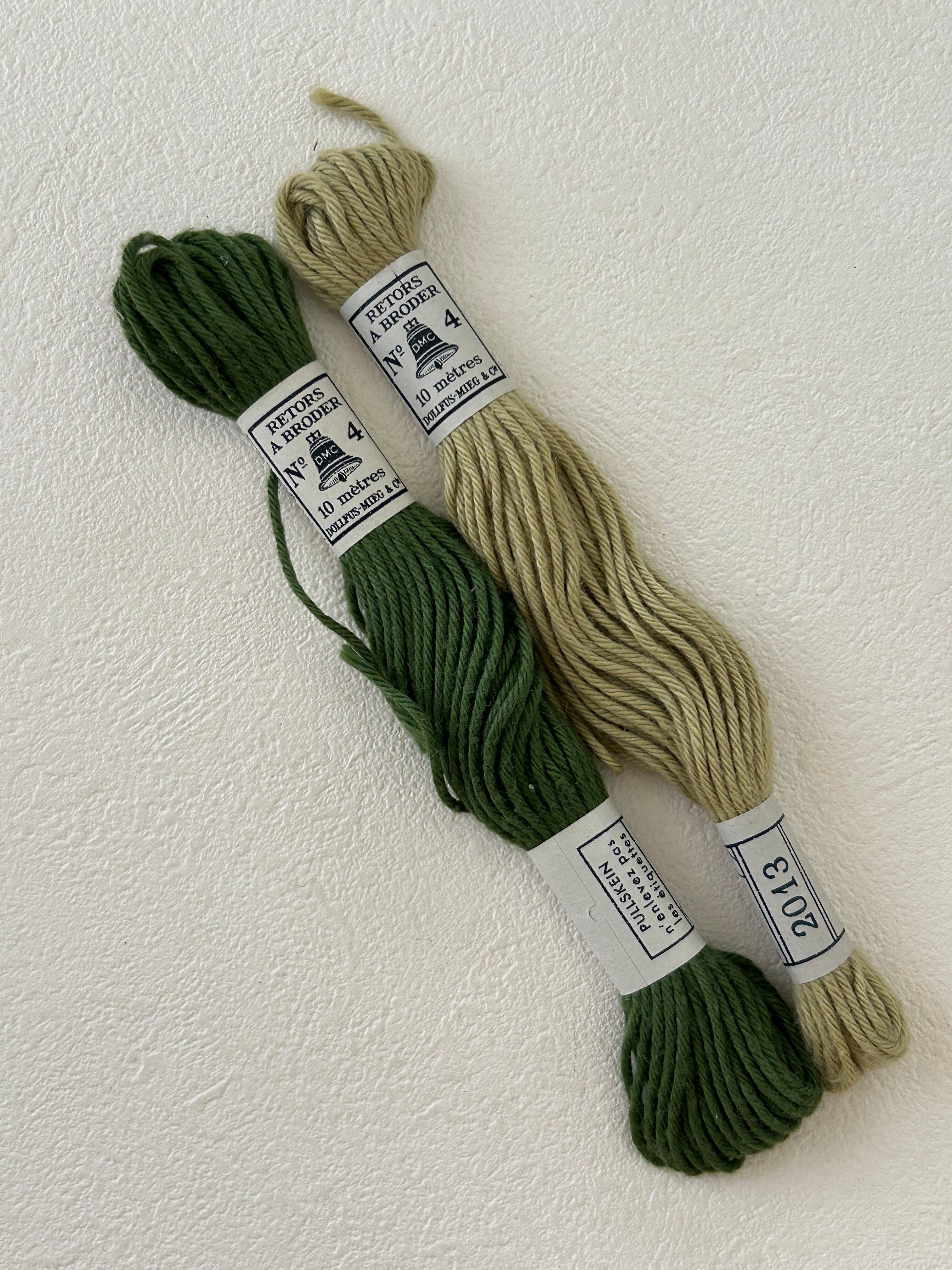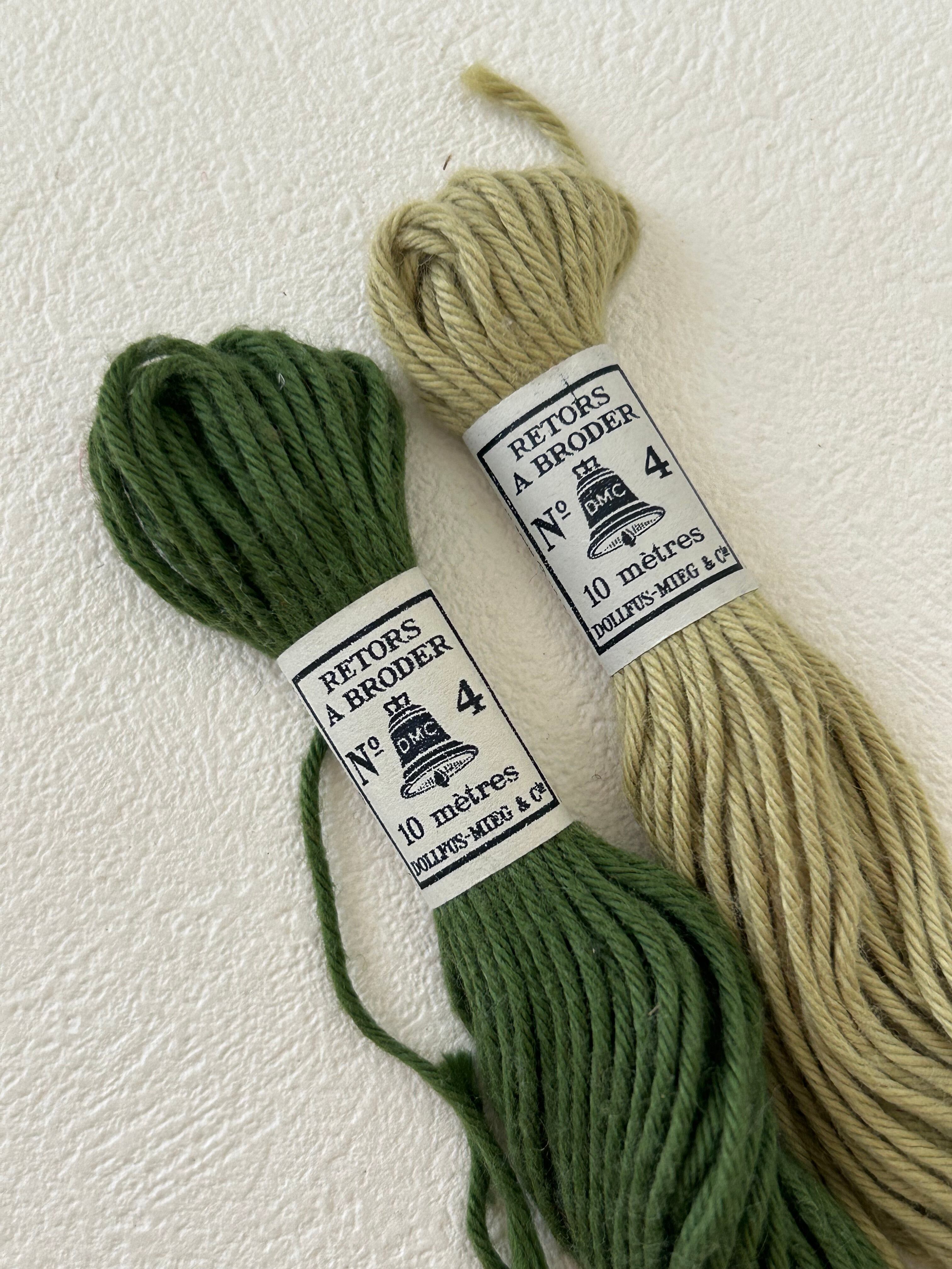 フランス アンティーク DOLLFUS-MIEG & C ドルフュス・ミエッグ&カンパニー(DMC)の刺繍糸 2本セット グリーン系 1960年以前 ディスプレイ 撮影小物