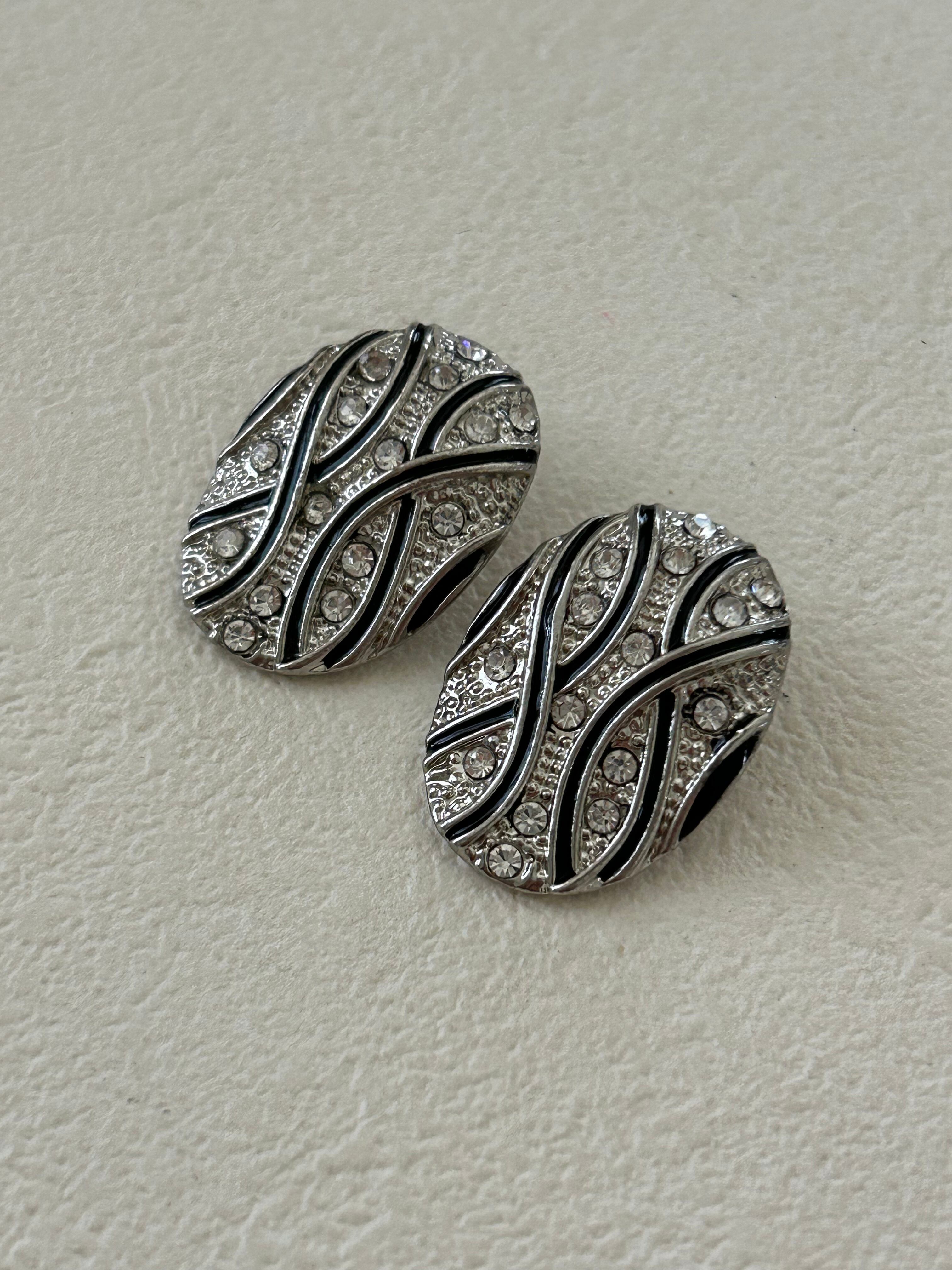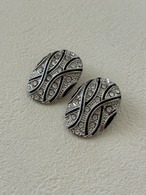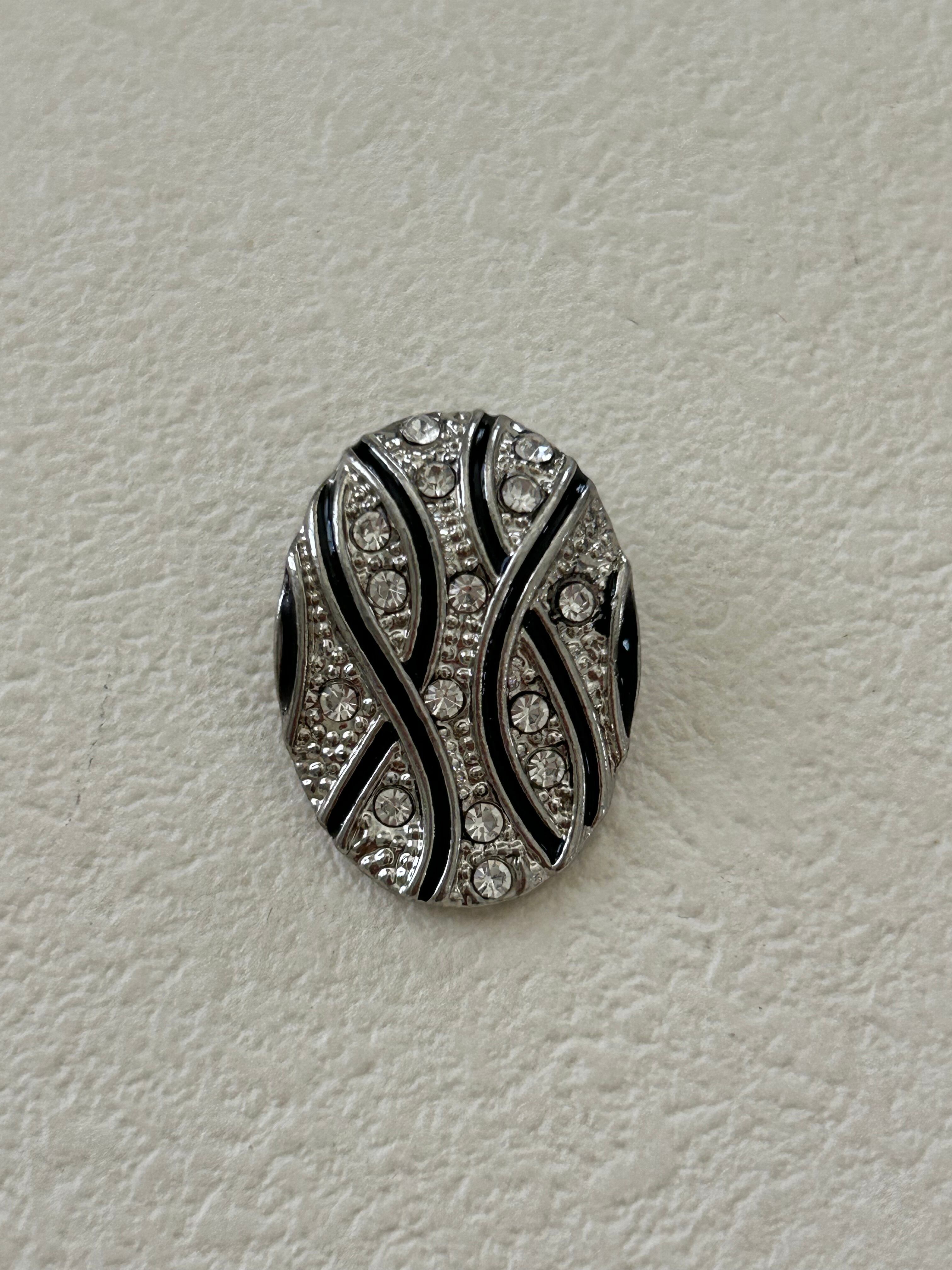 輸入デザインボタン 変形オーバル メタル×ストーン 25mm シルバー×ブラック アクセサリーパーツ カルトナージュ デコレーション材