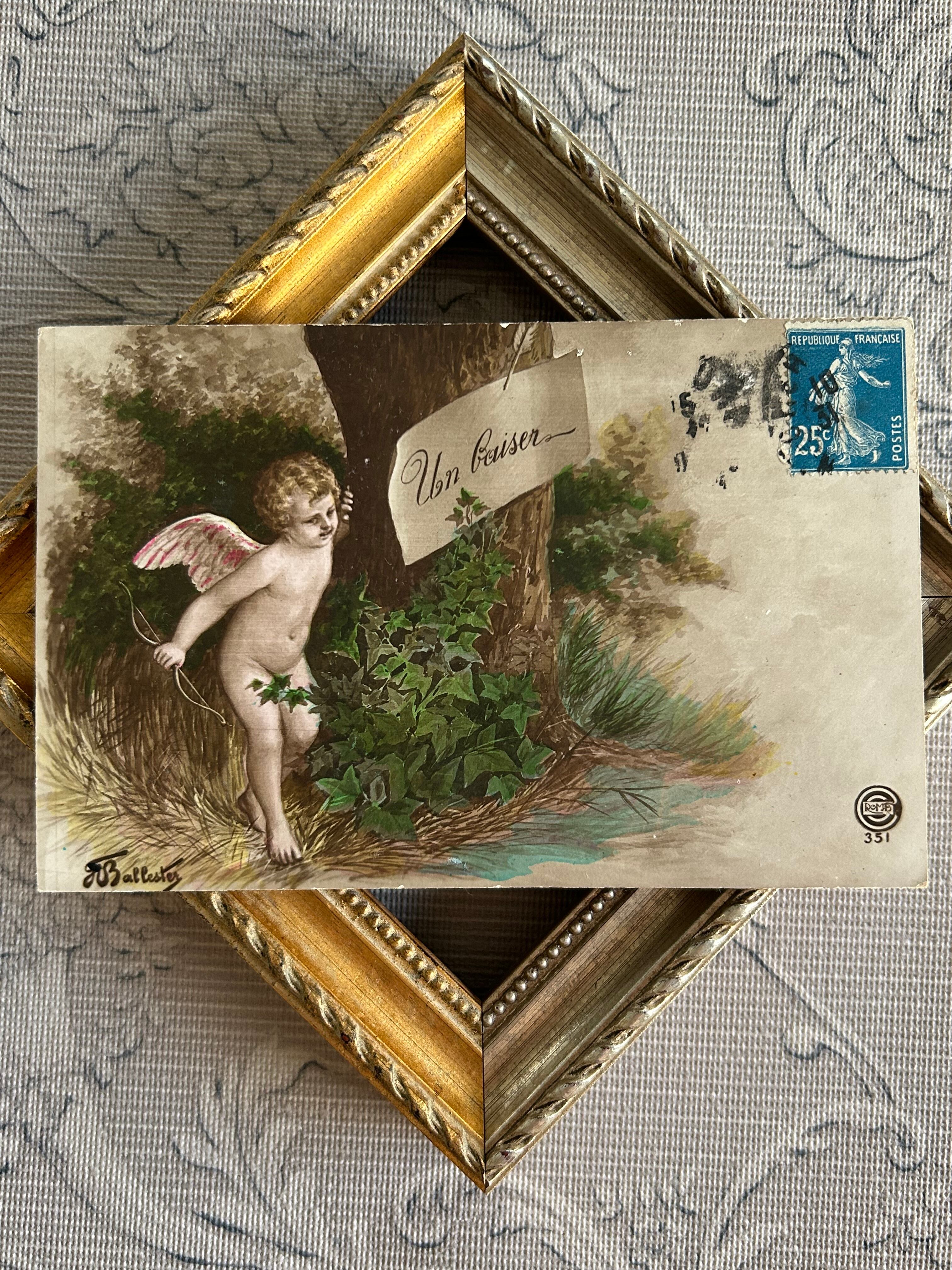 フランスアンティークカード Ange アイビー 額装 インテリア インテリア小物 撮影小物