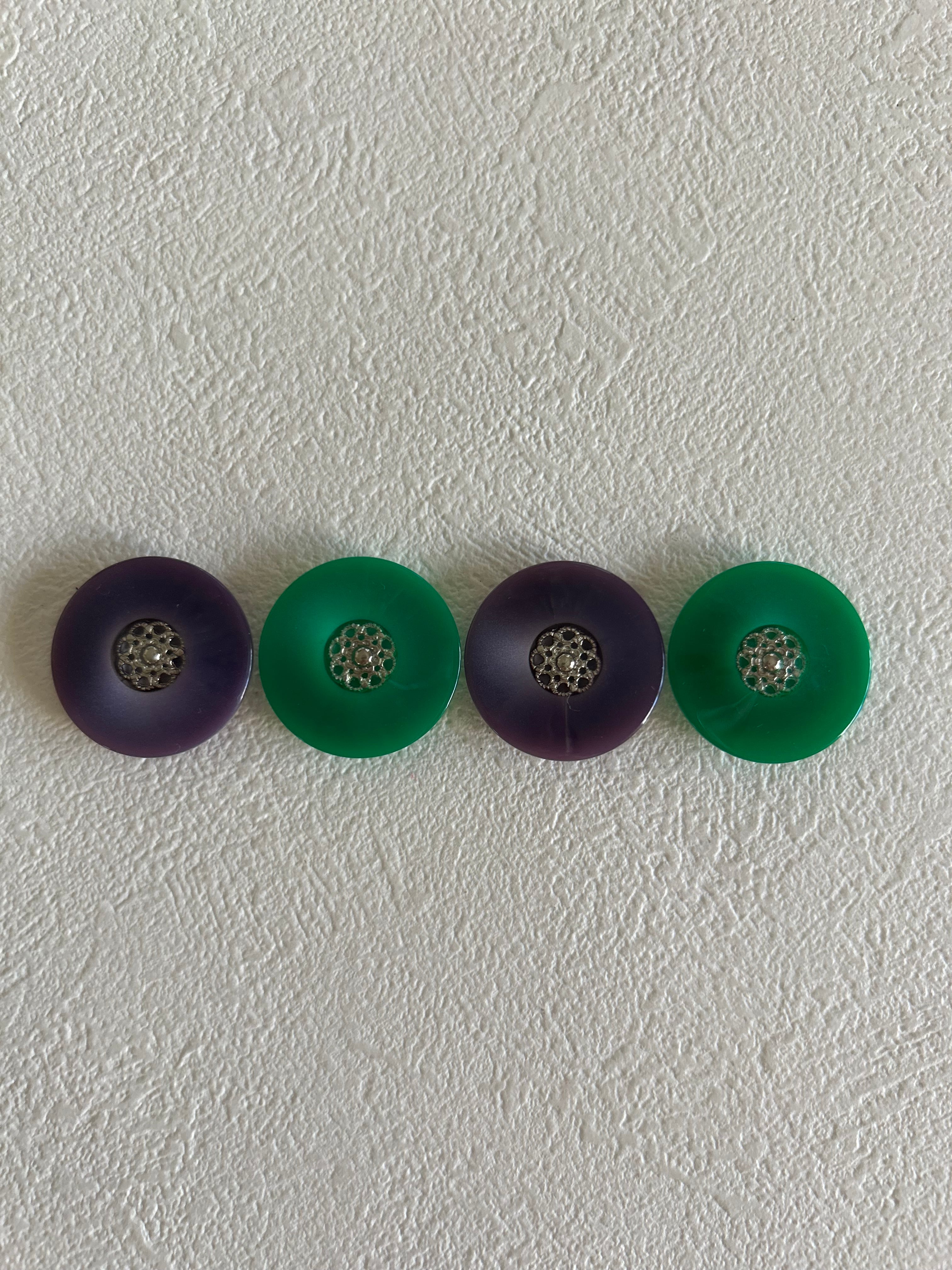 Japanese Vintage ボタン パープル/グリーン 23mm 昭和レトロ アクセサリーパーツ 装飾材 カルトナージュ