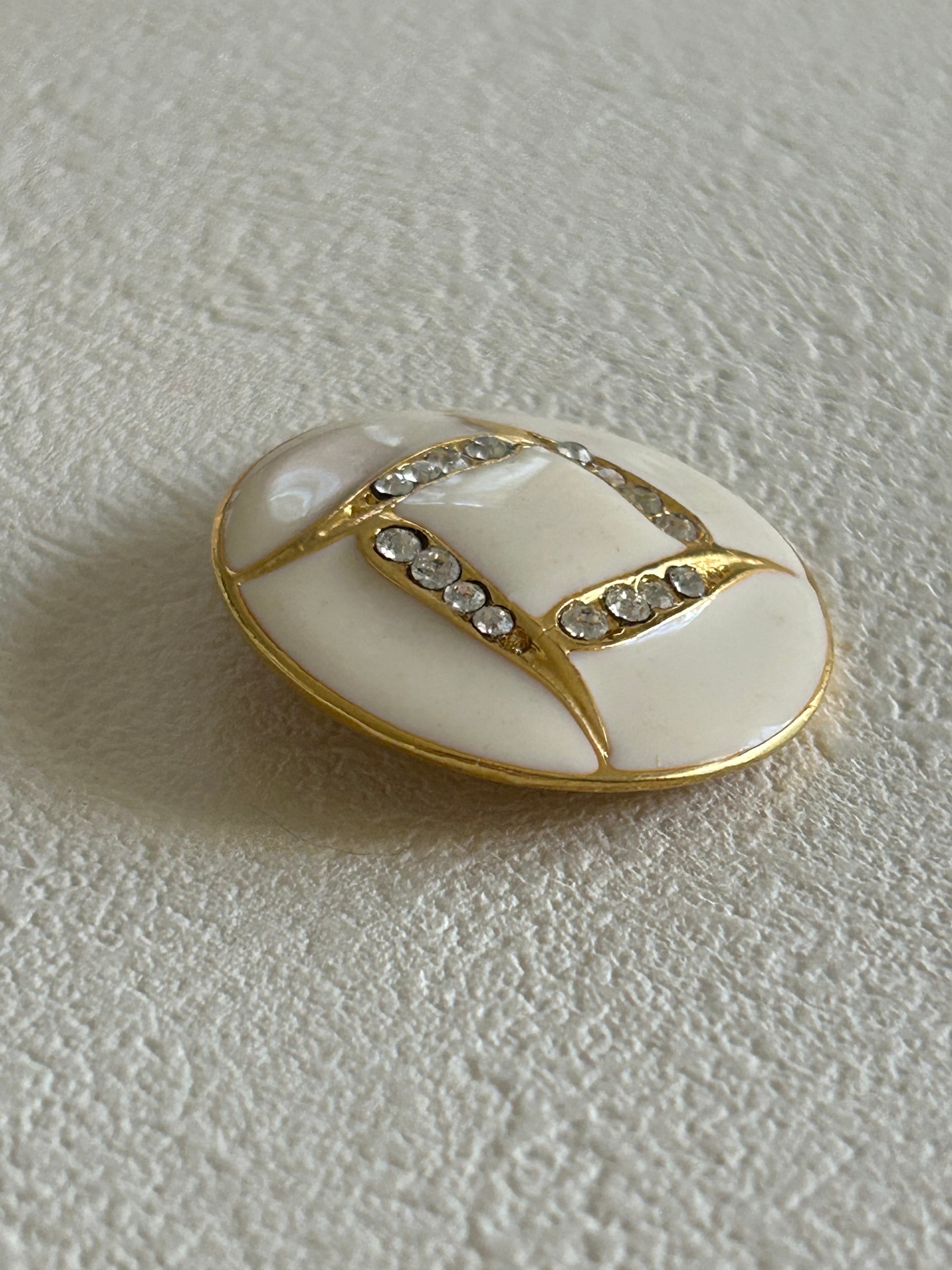 Japanese Vintage ボタン ヴィンテージボタン メタル ストーン ゴールド×アイボリー 32mm エレガント アクセサリーパーツ デコレーション材