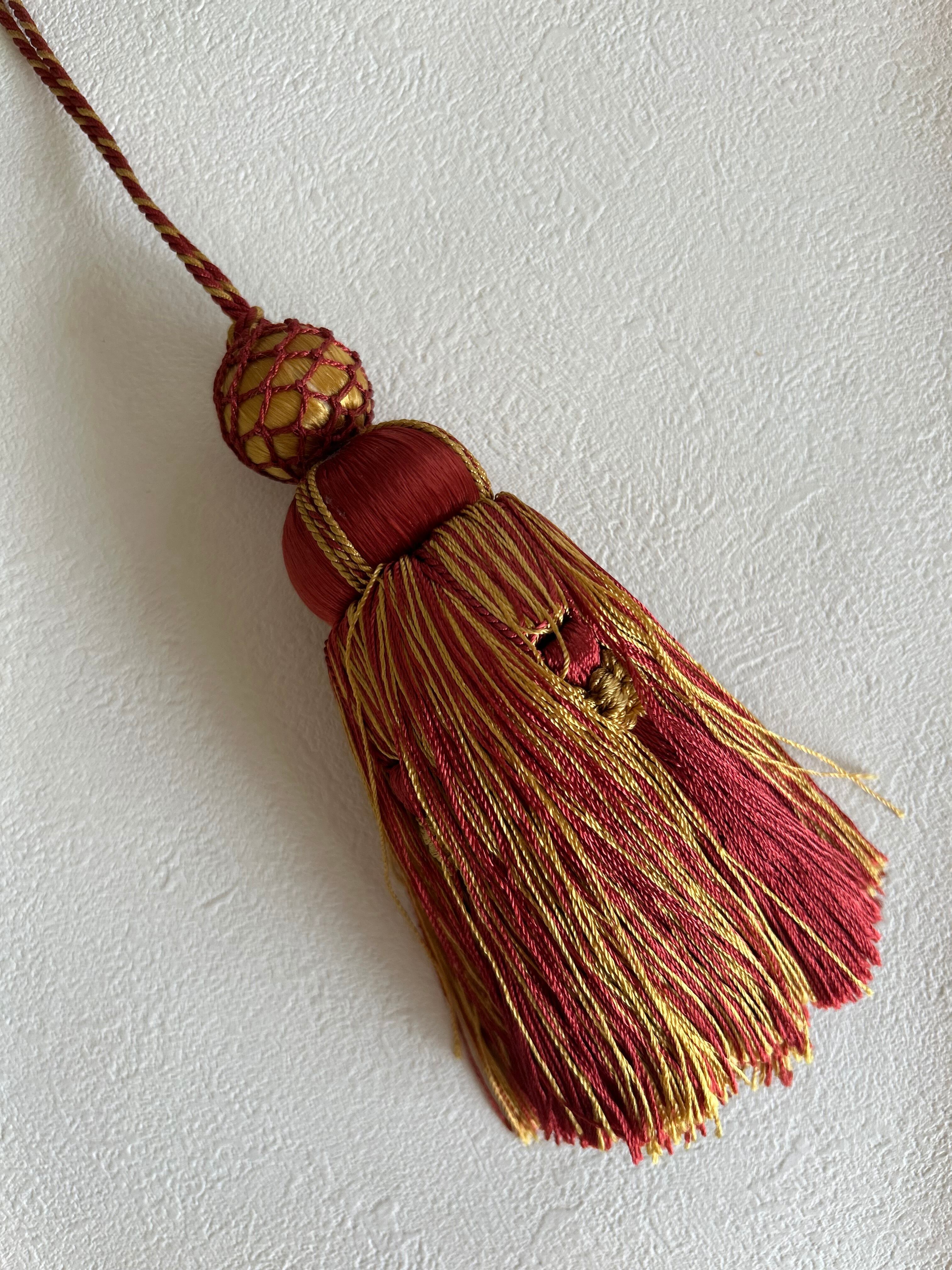 マットなレッド×イエローゴールドカラーの華やかなタッセルです。