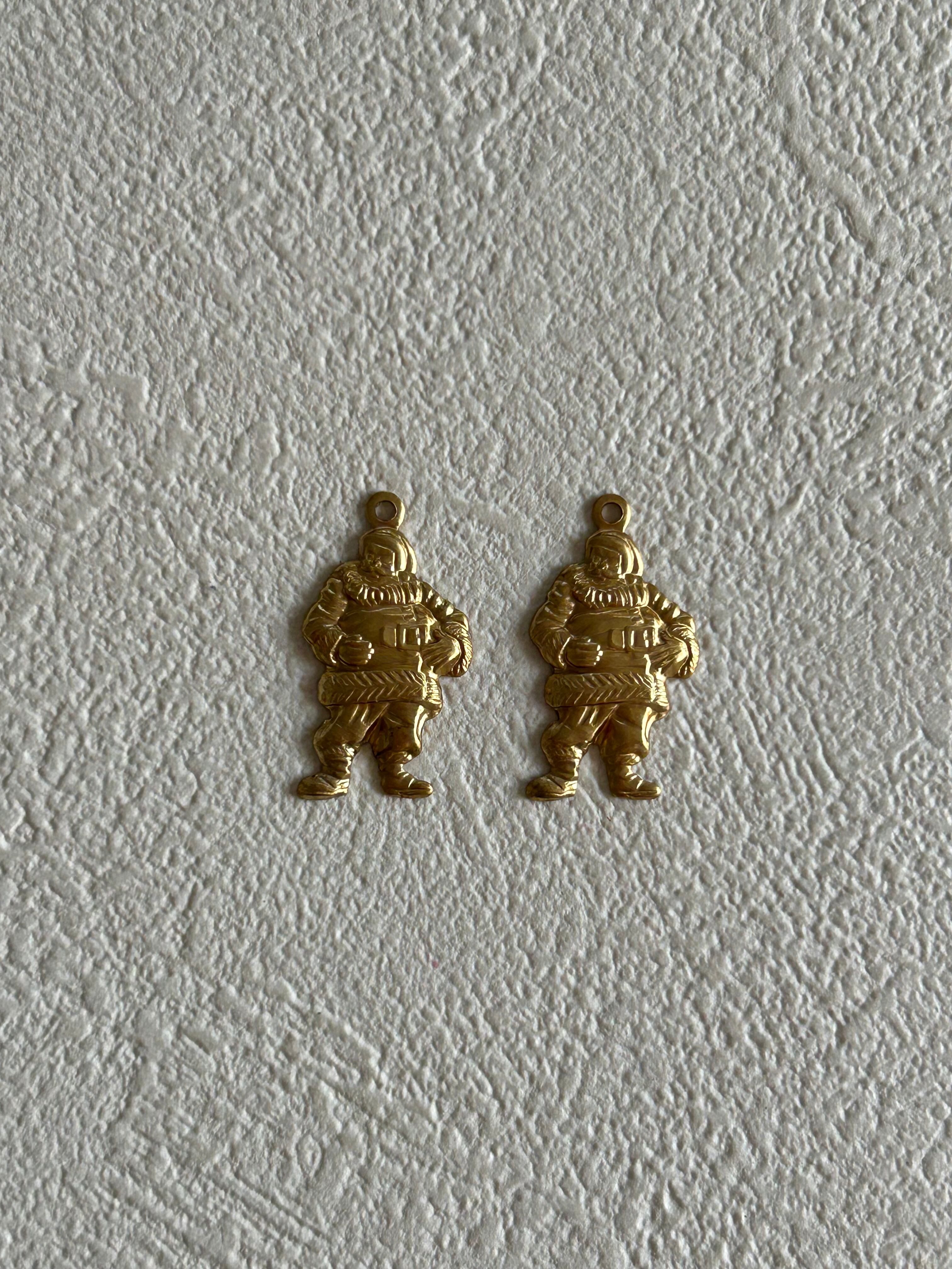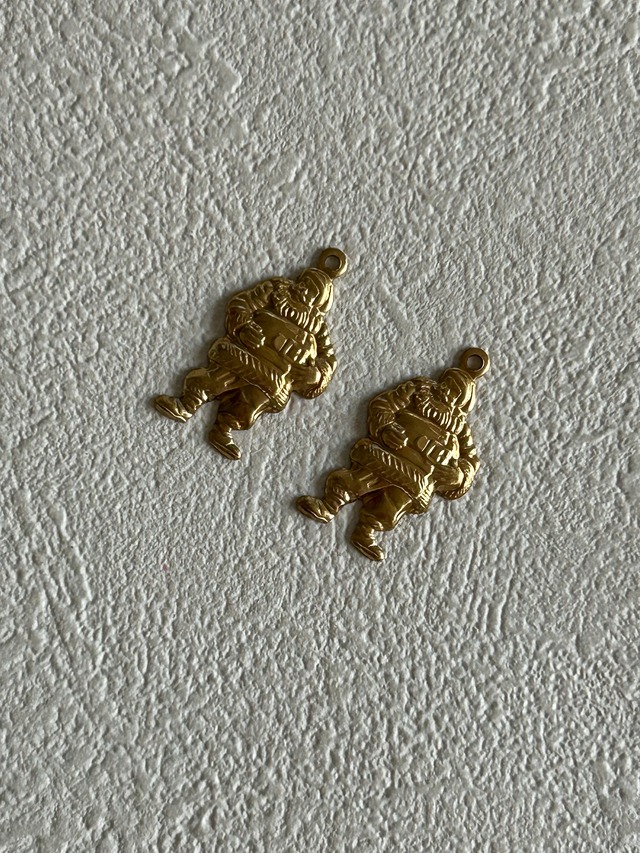 真鍮製のクラシカルなサンタクロースのチャーム、2個セットになります。