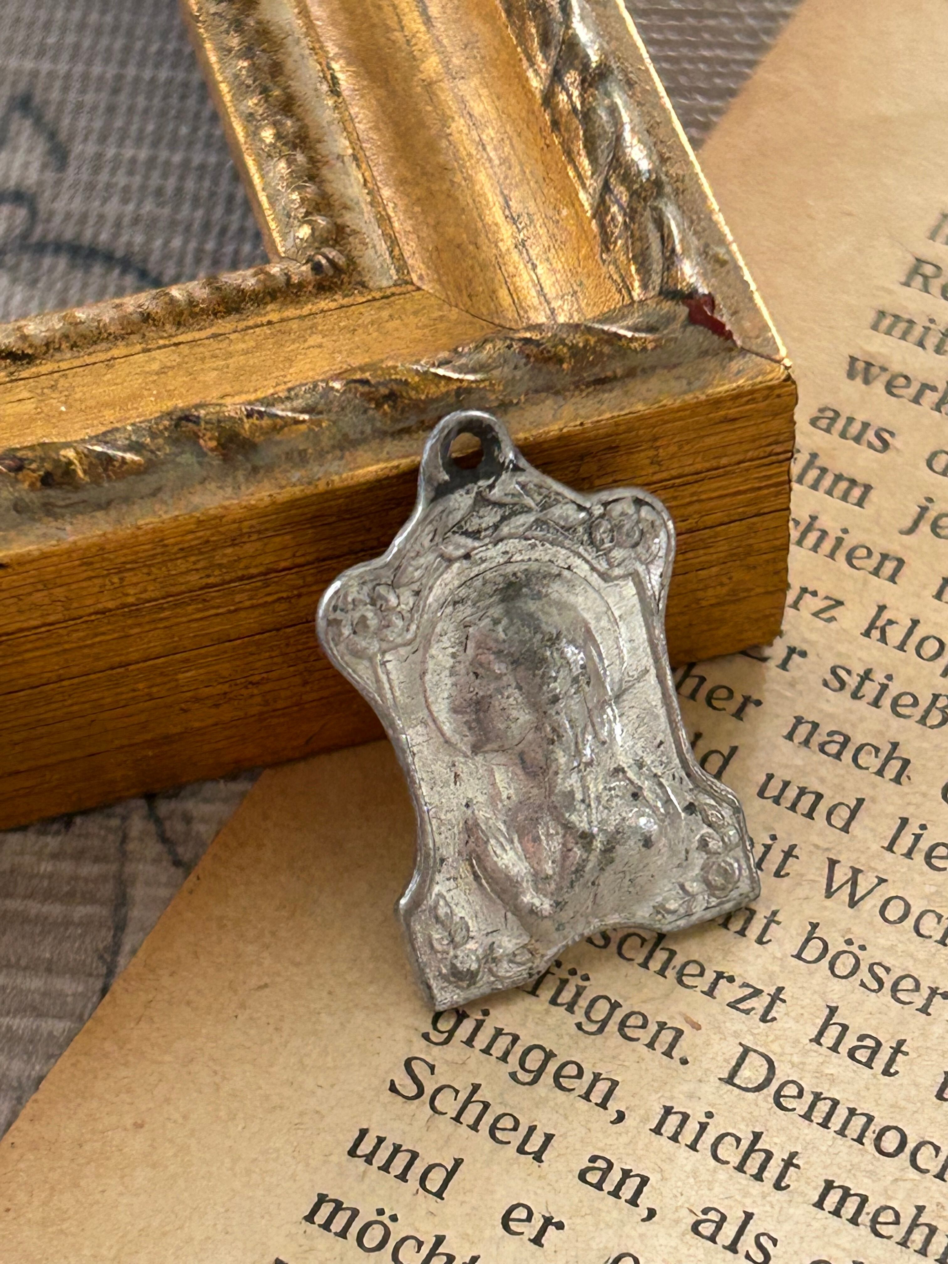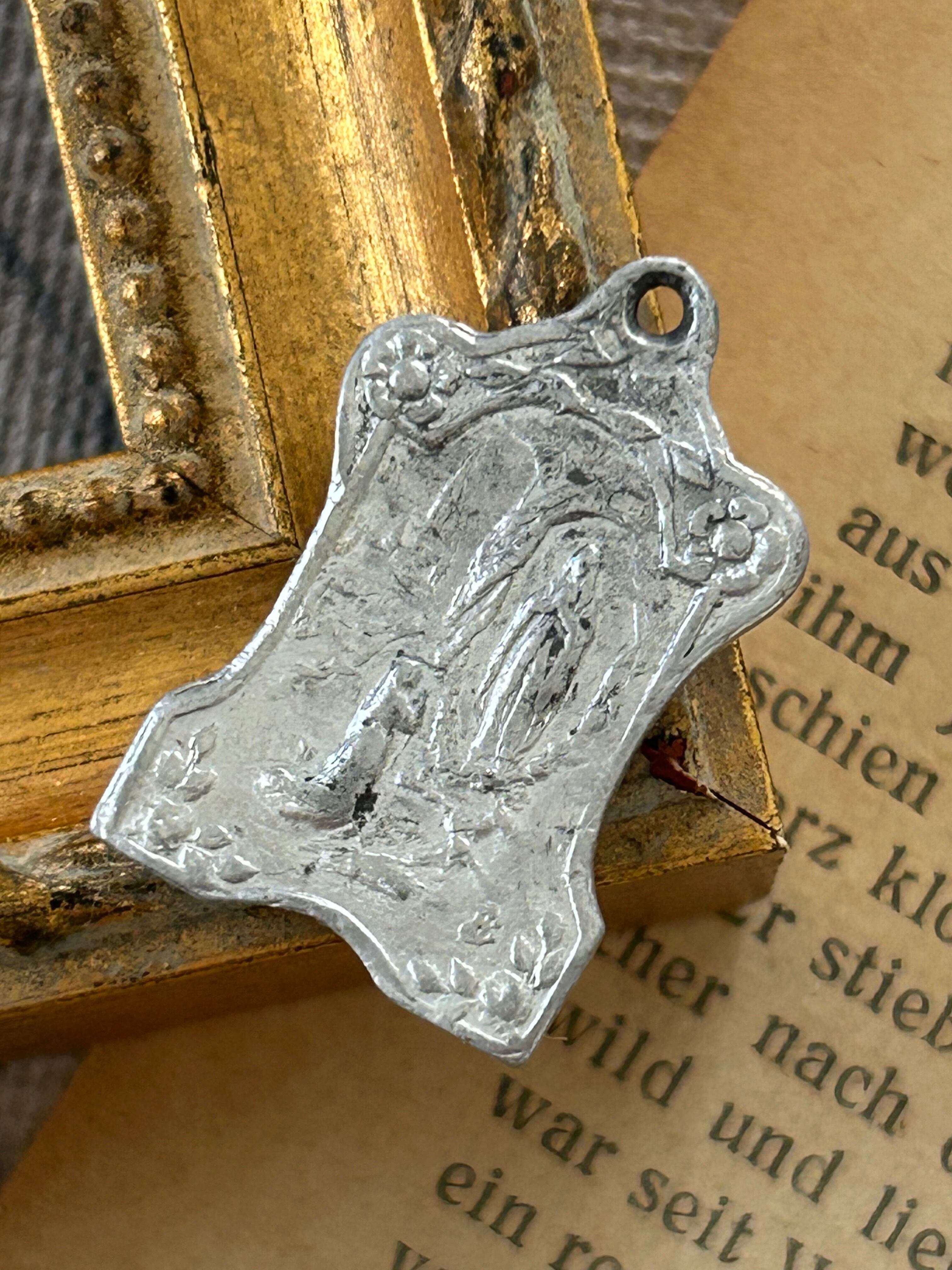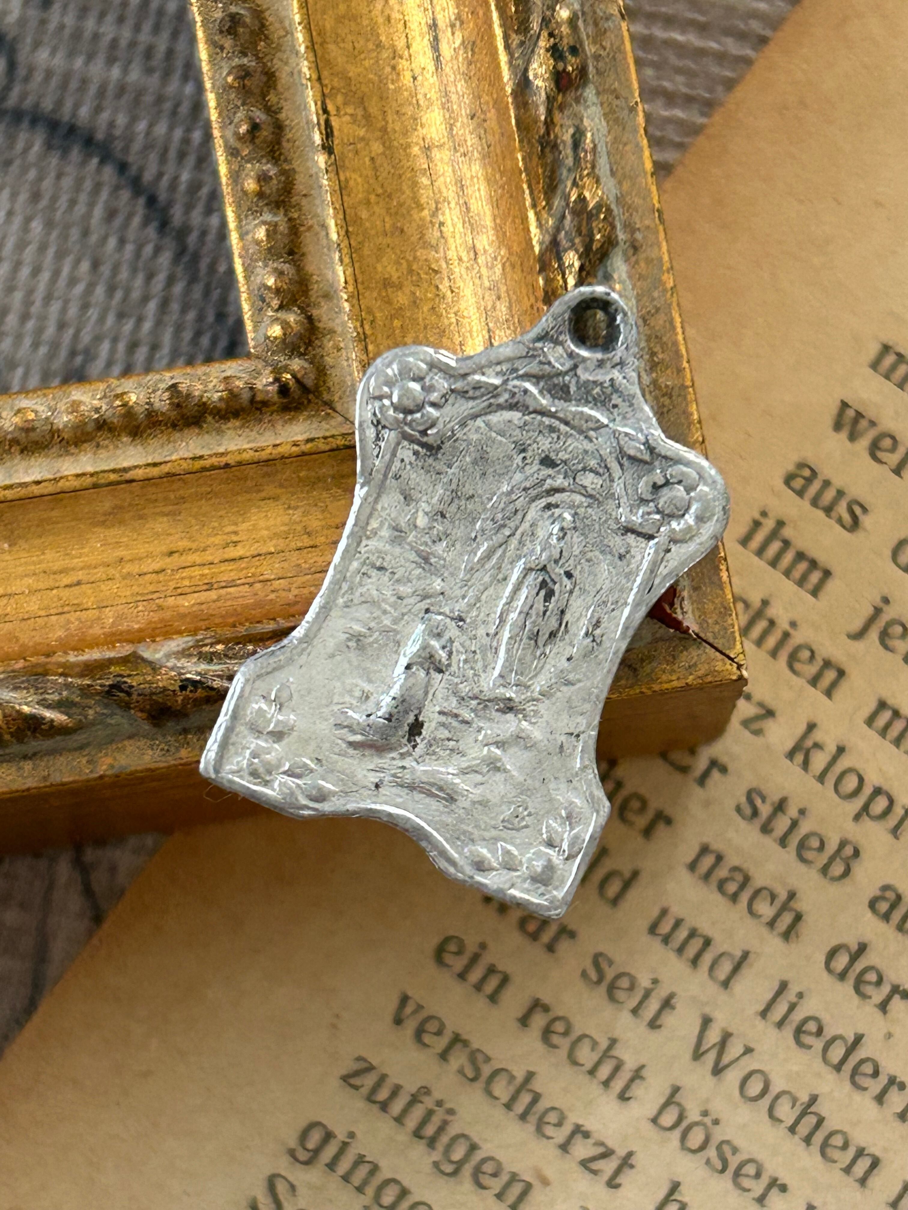 フランスヴィンテージ メダイ ルルドの泉 聖母マリア アルミ チャーム 聖品 ペンダントトップ コレクション インテリア小物 撮影小物