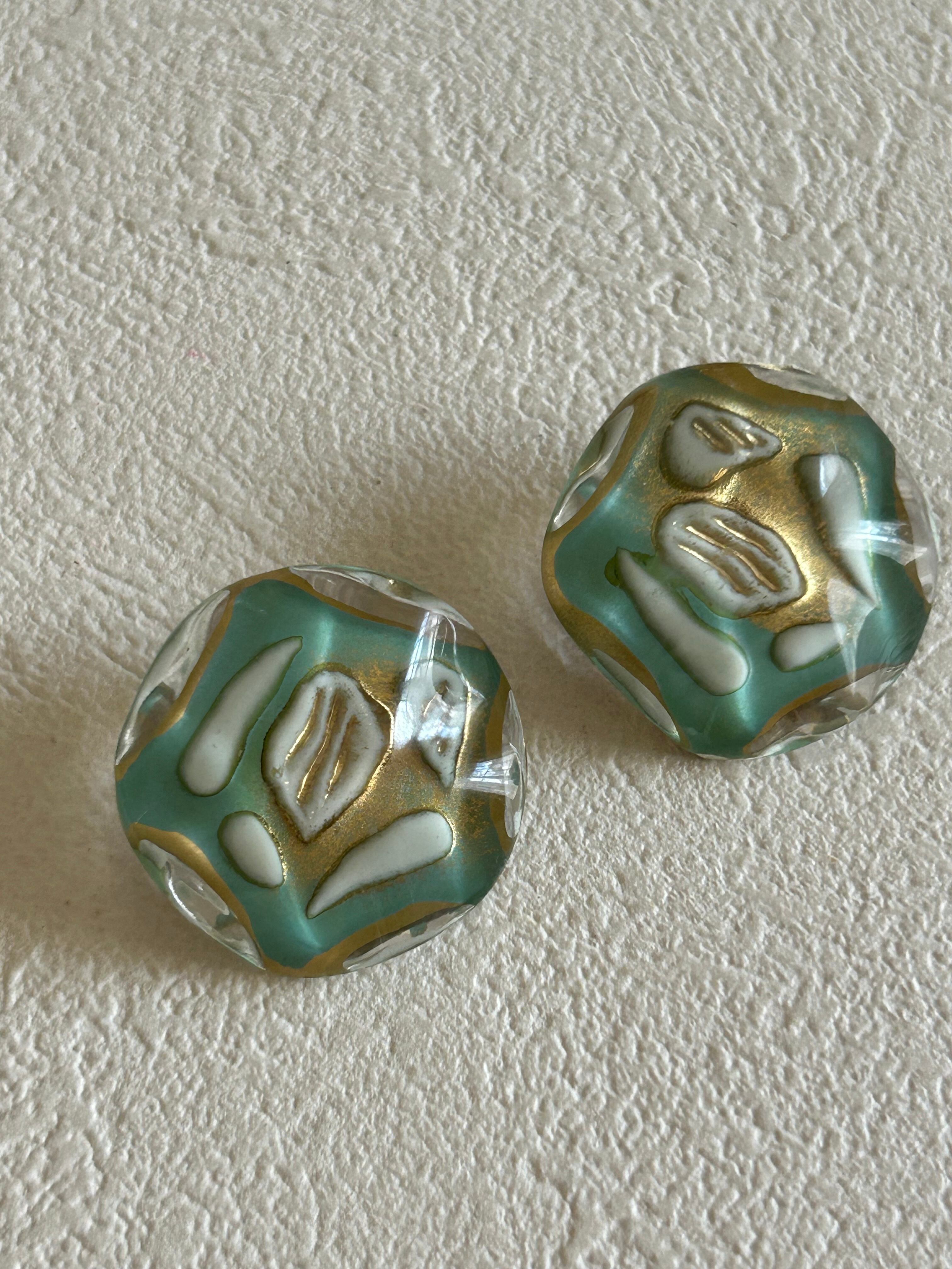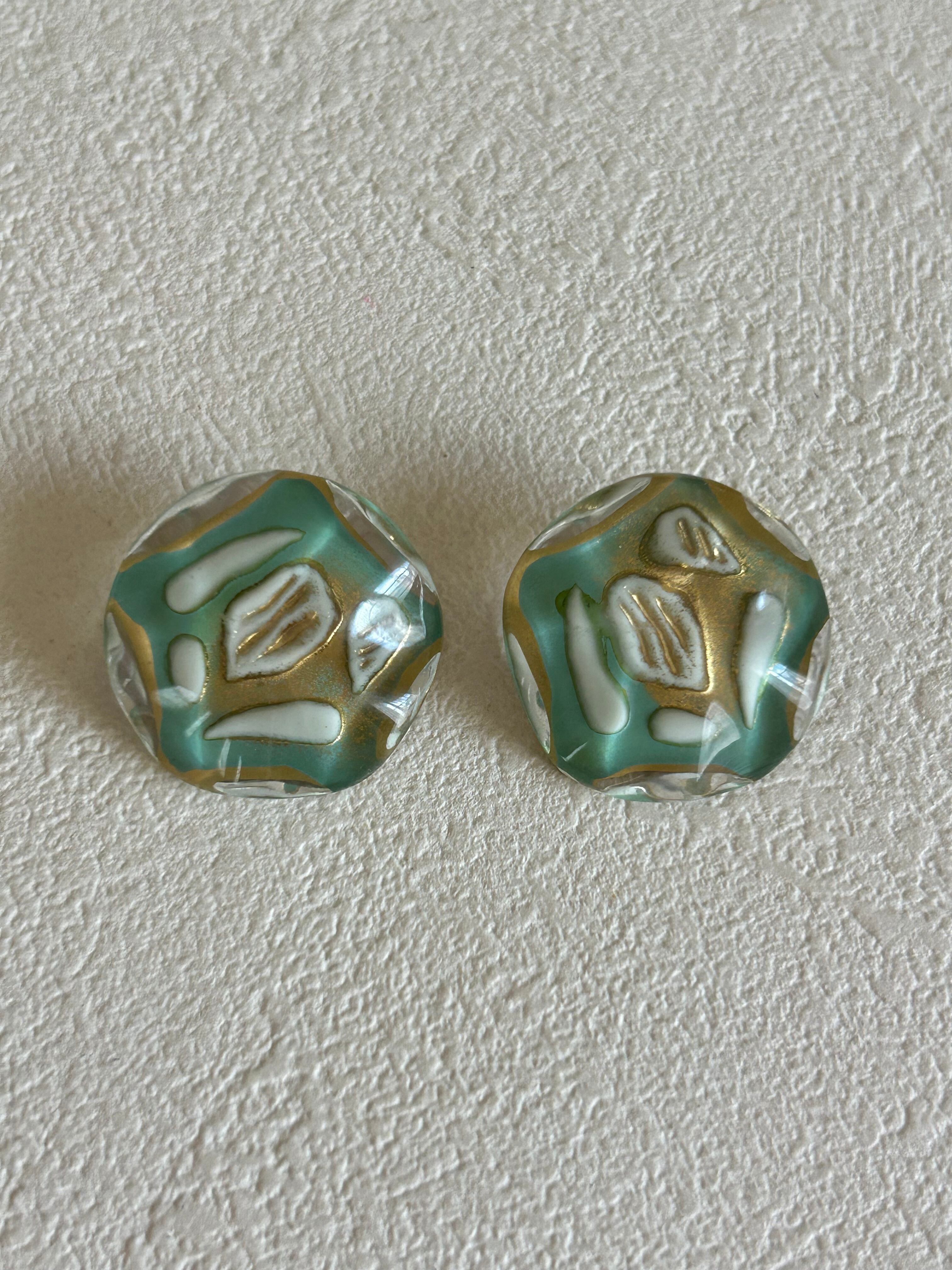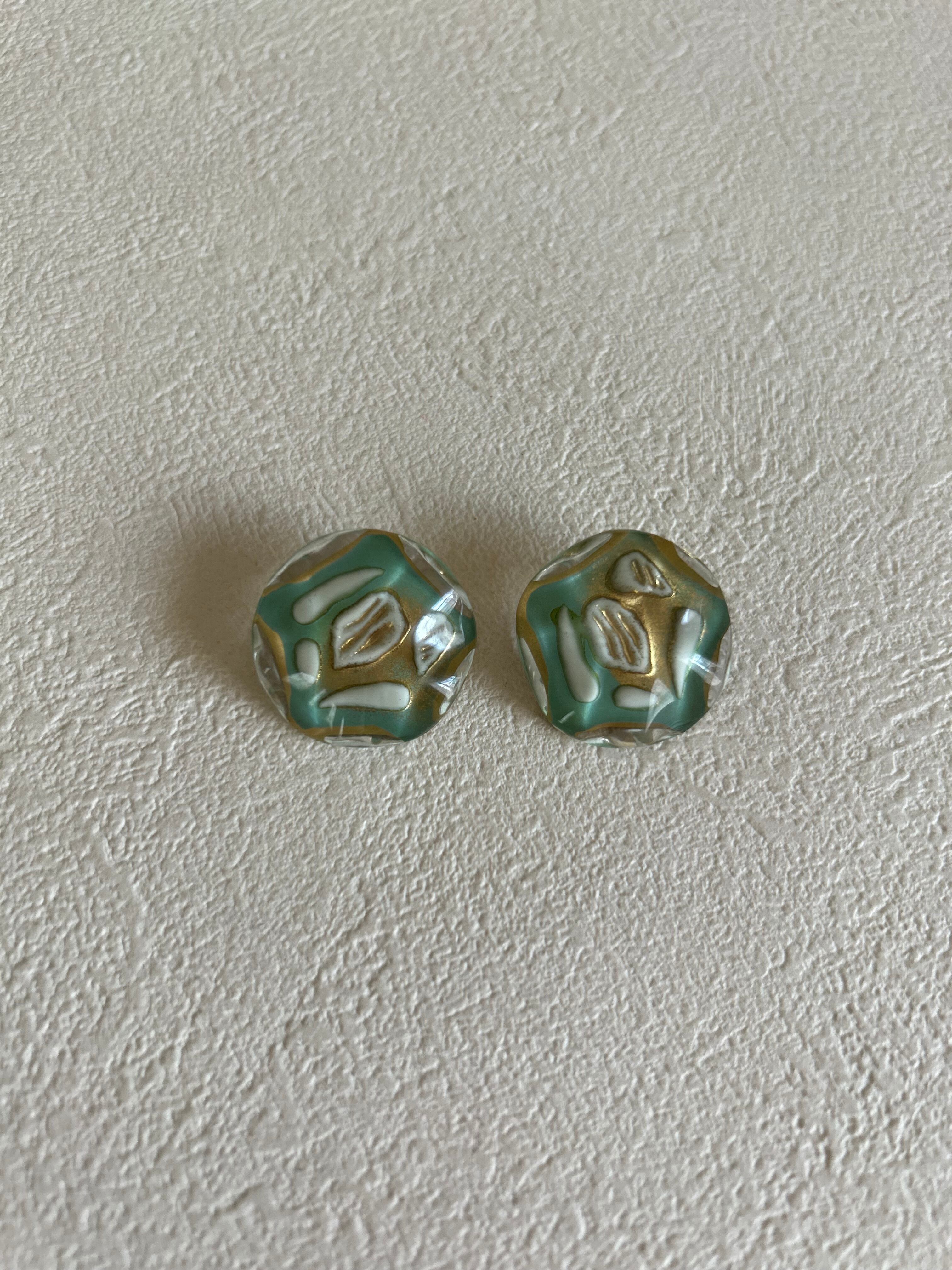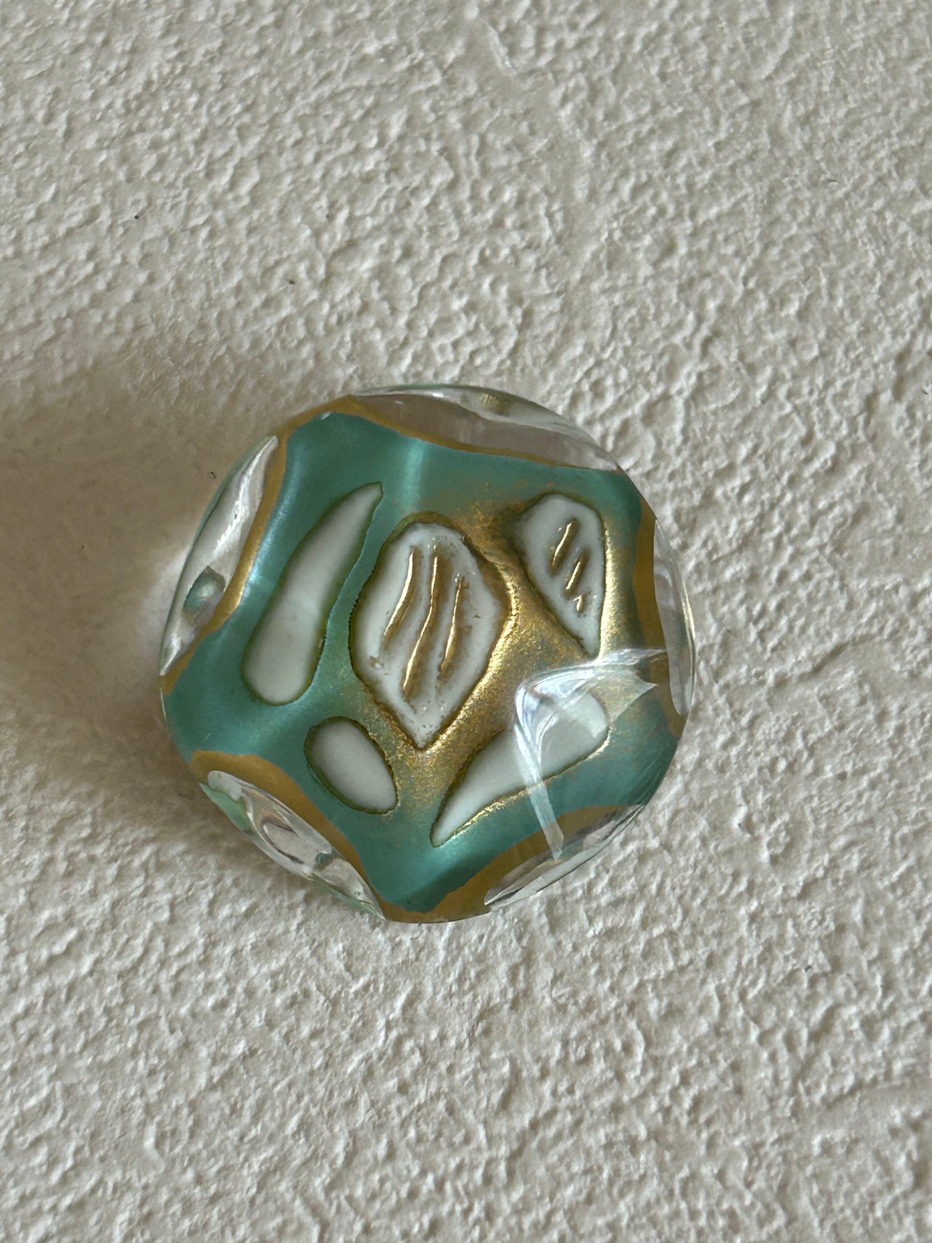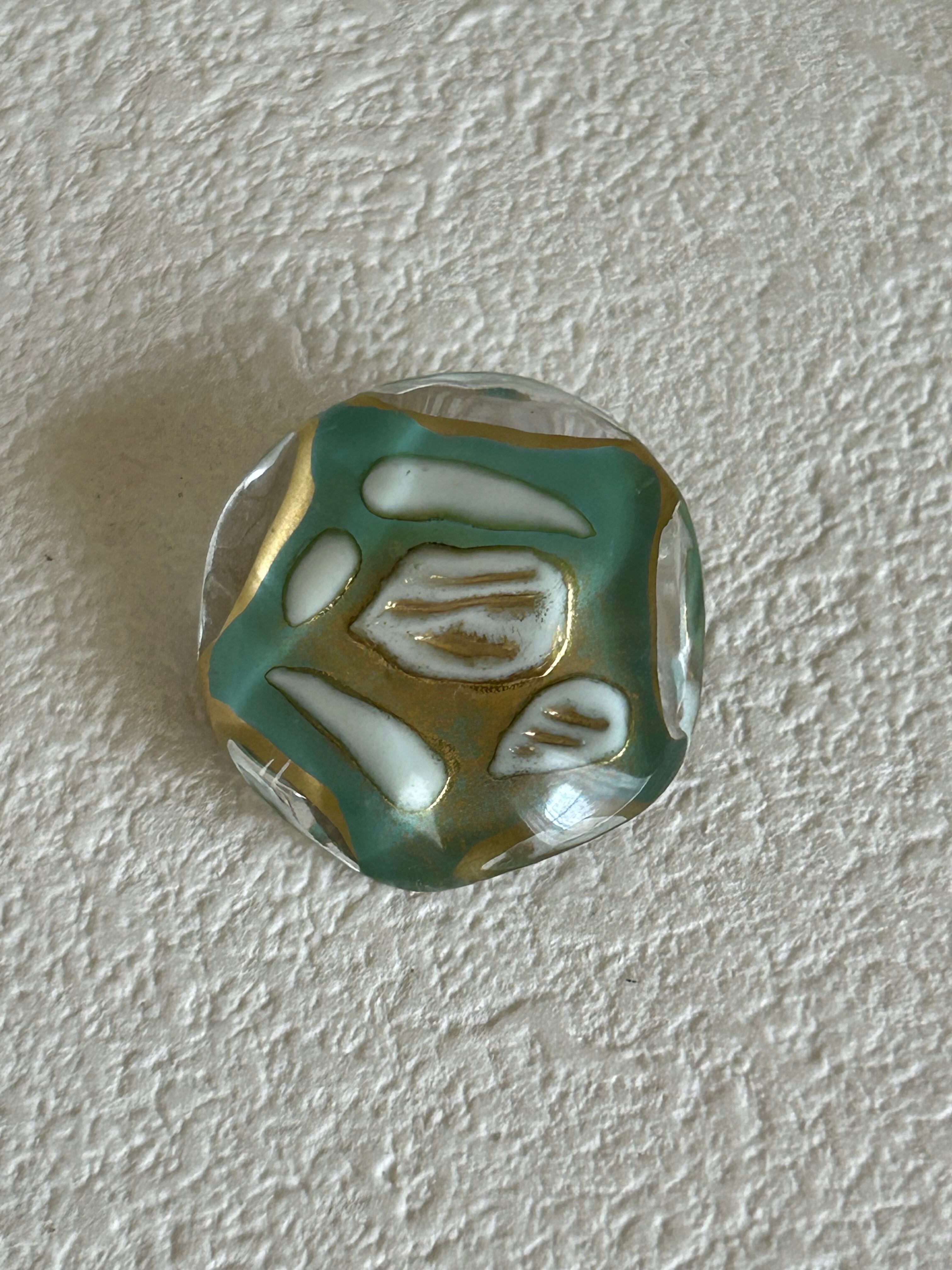 Japanese Vintage ボタン 23mm button ゴールド×グリーン×ホワイト プラスチック アクセサリーパーツ 装飾材 カルトナージュ