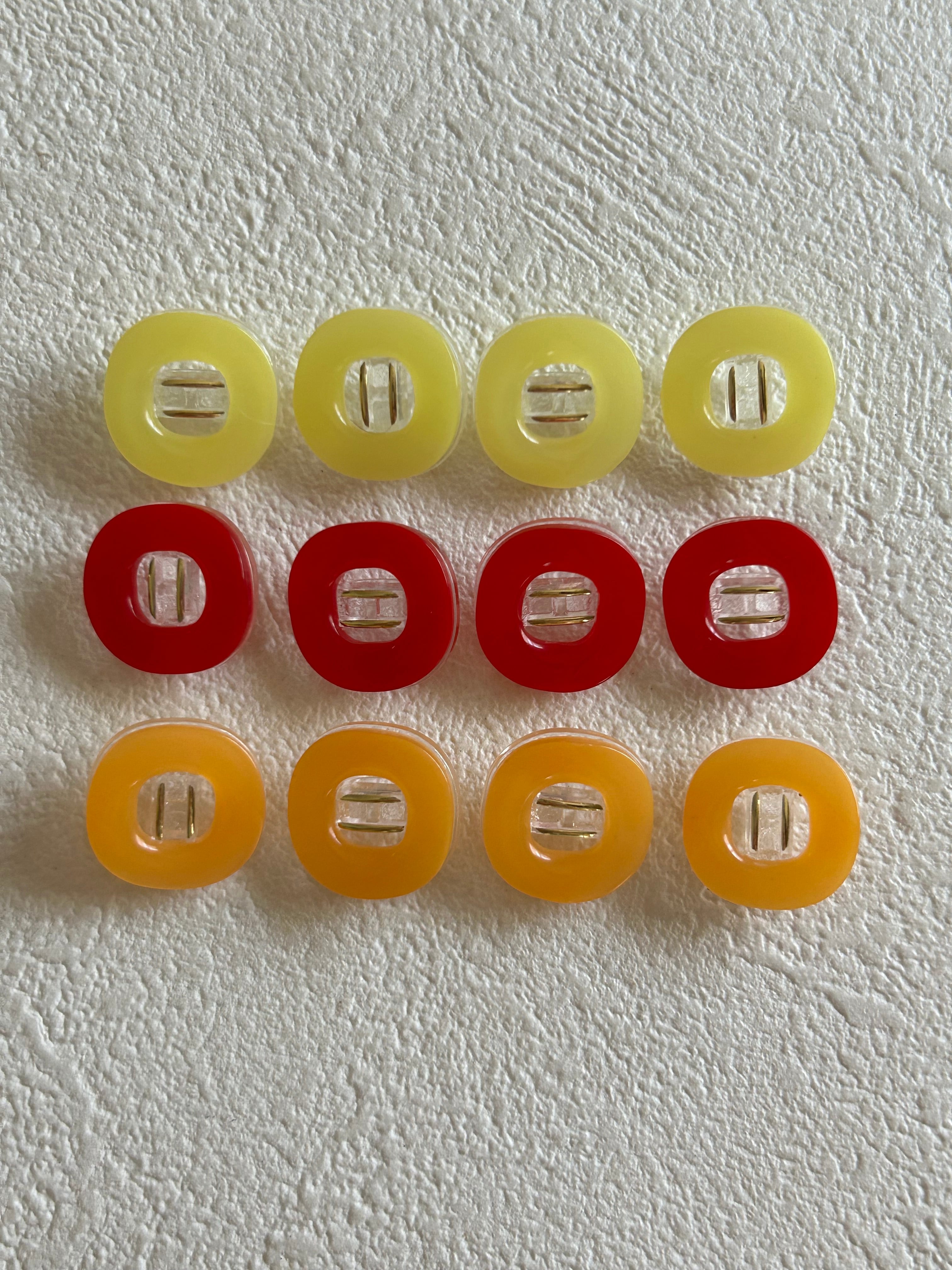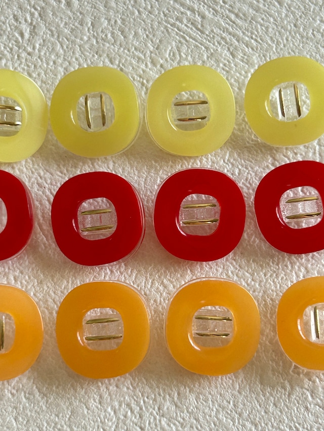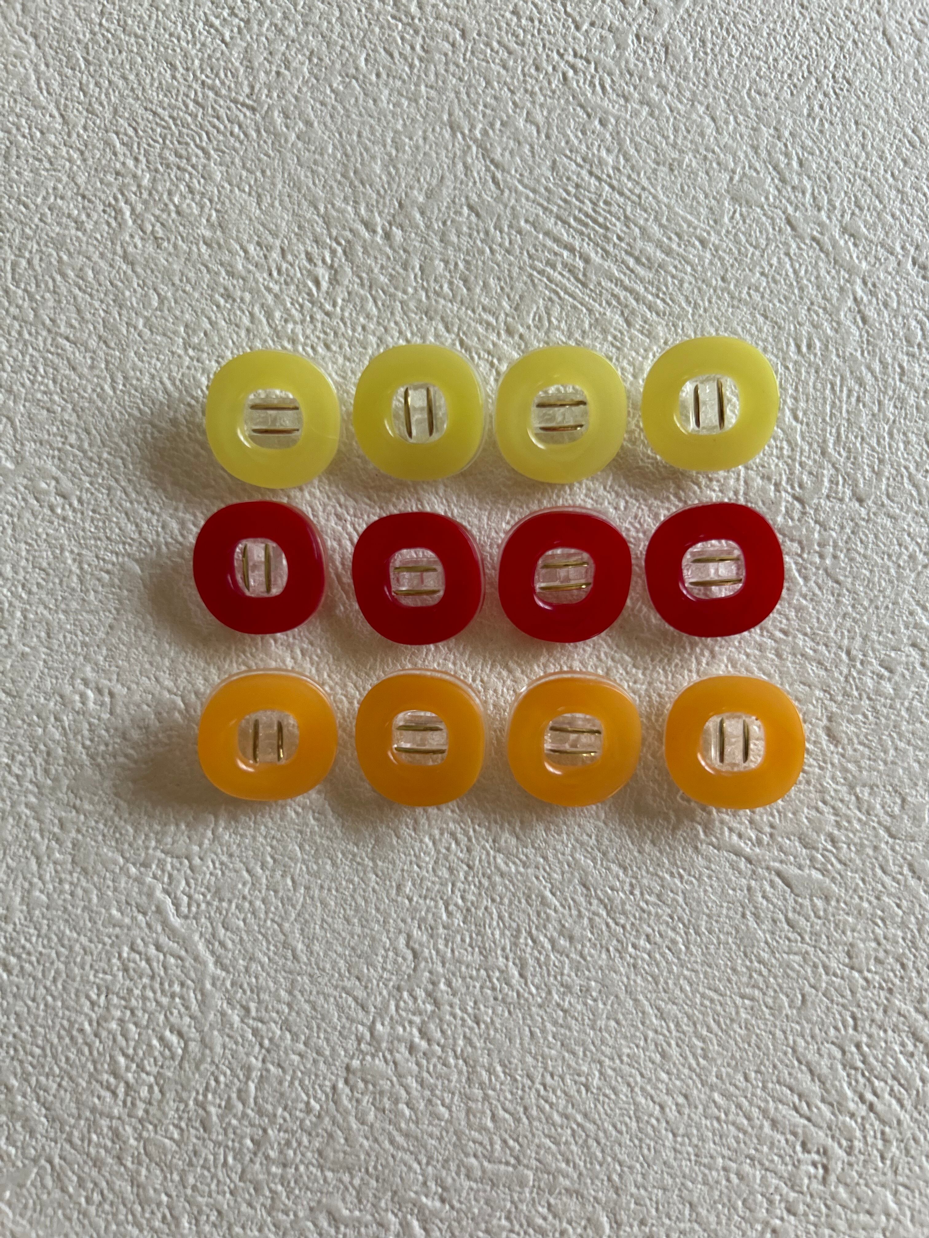 Japanese Vintage ボタン 角なしスクウェア レッド/イエロー/オレンジ 14mm プラスチック 昭和レトロ アクセサリーパーツ 装飾材 カルトナージュ