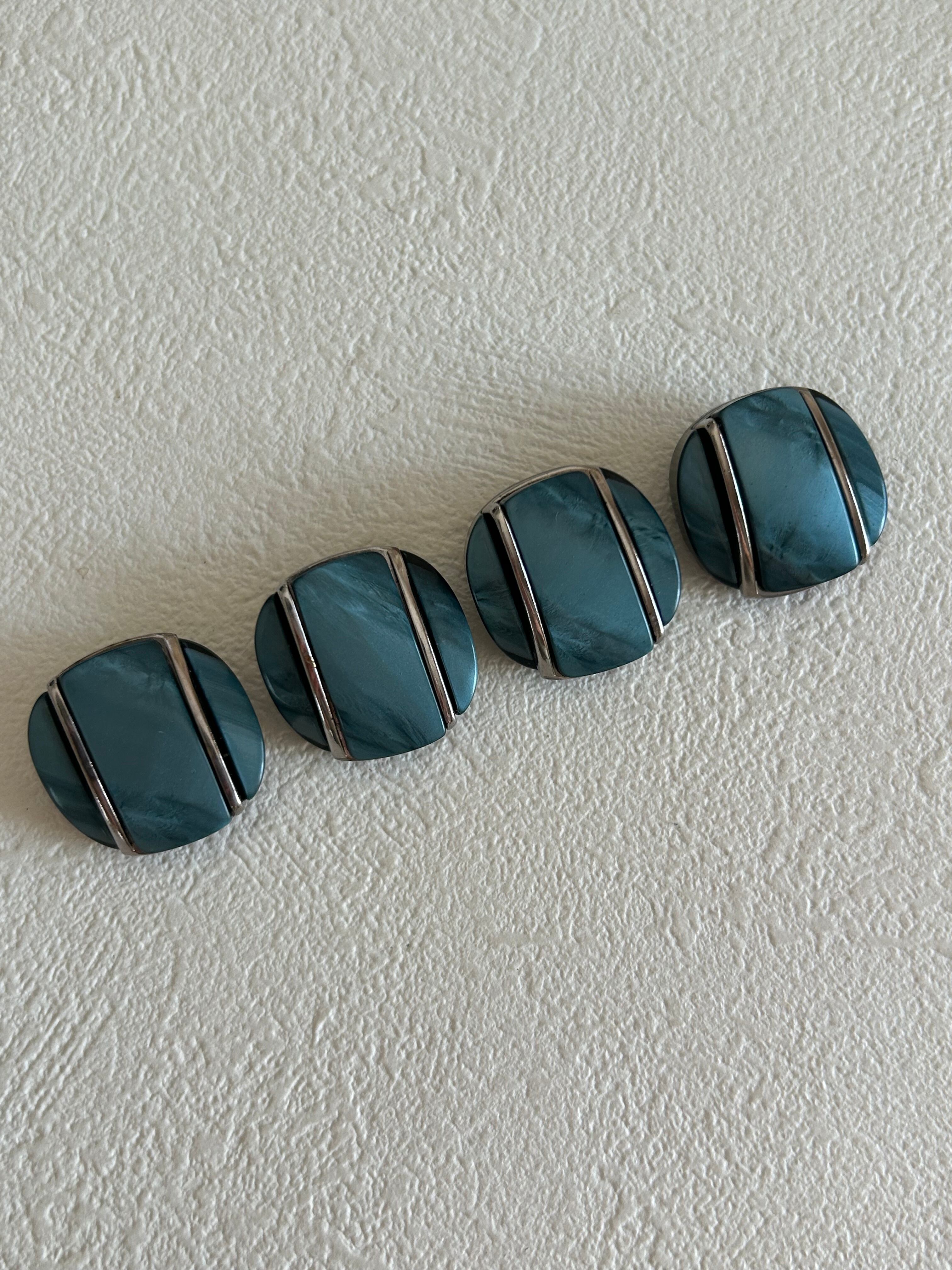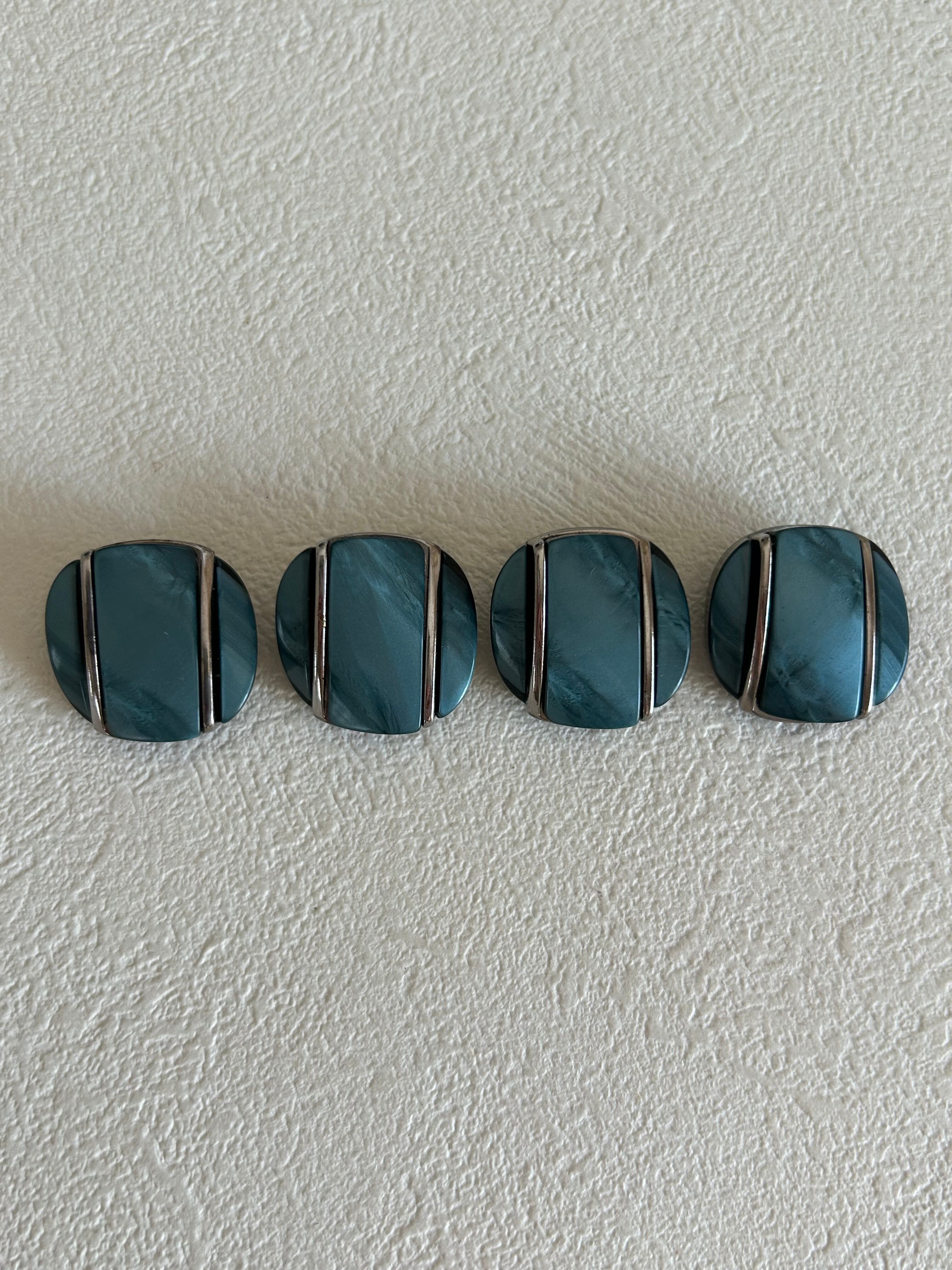 Japanese Vintage ヴィンテージボタン プラスチック 石調 マーブル ブルー系 20mm アクセサリーパーツ 装飾材
