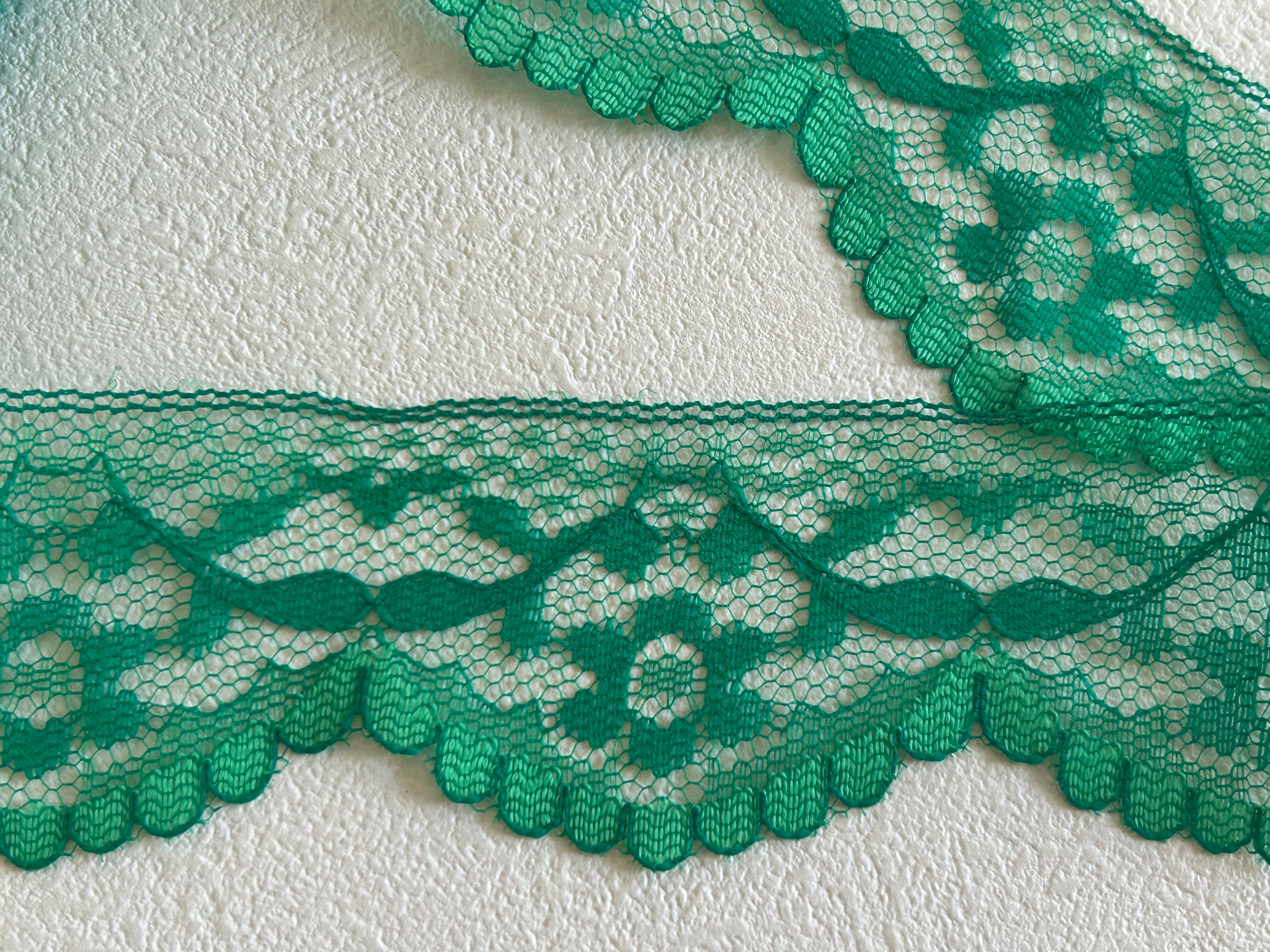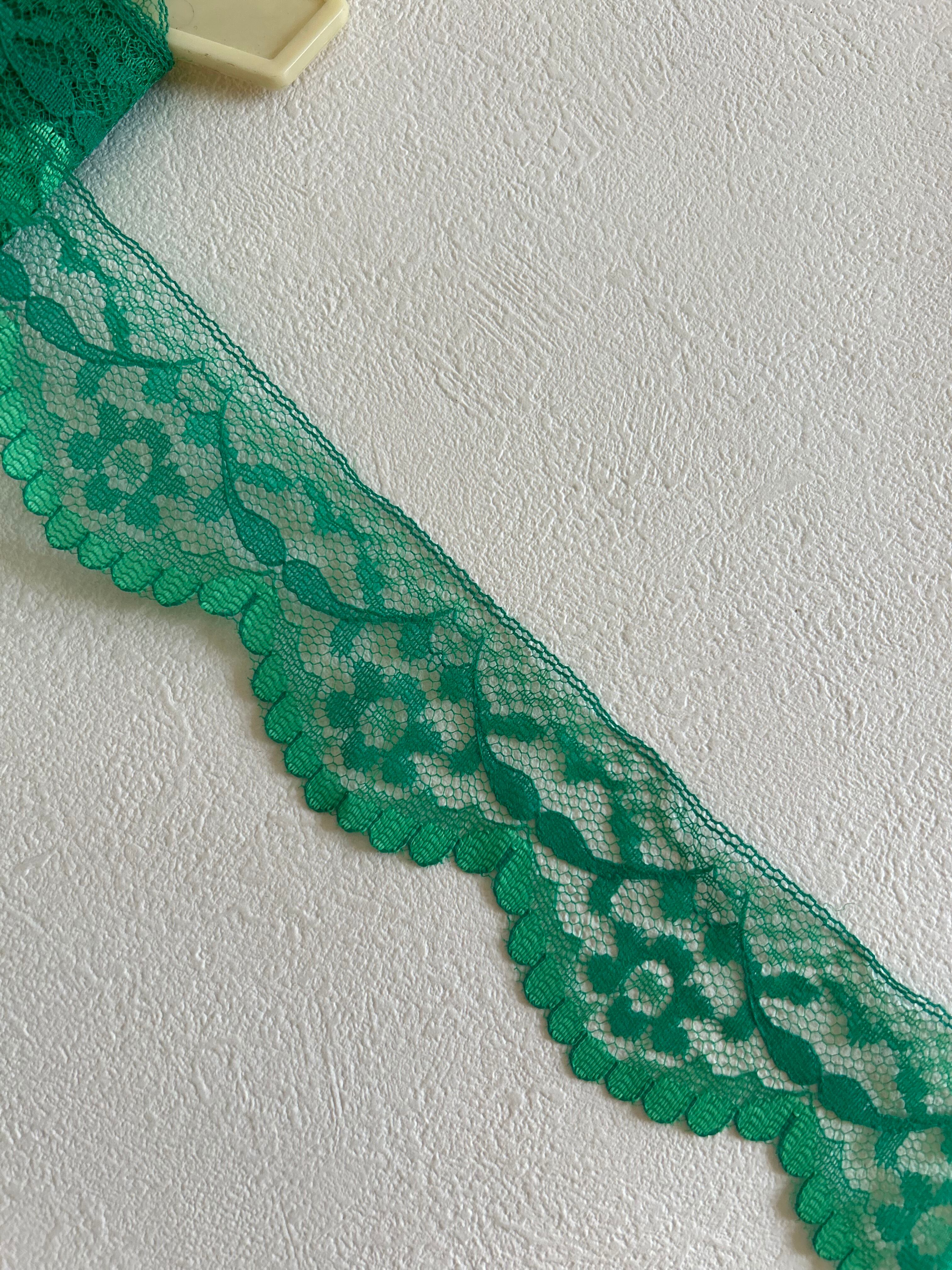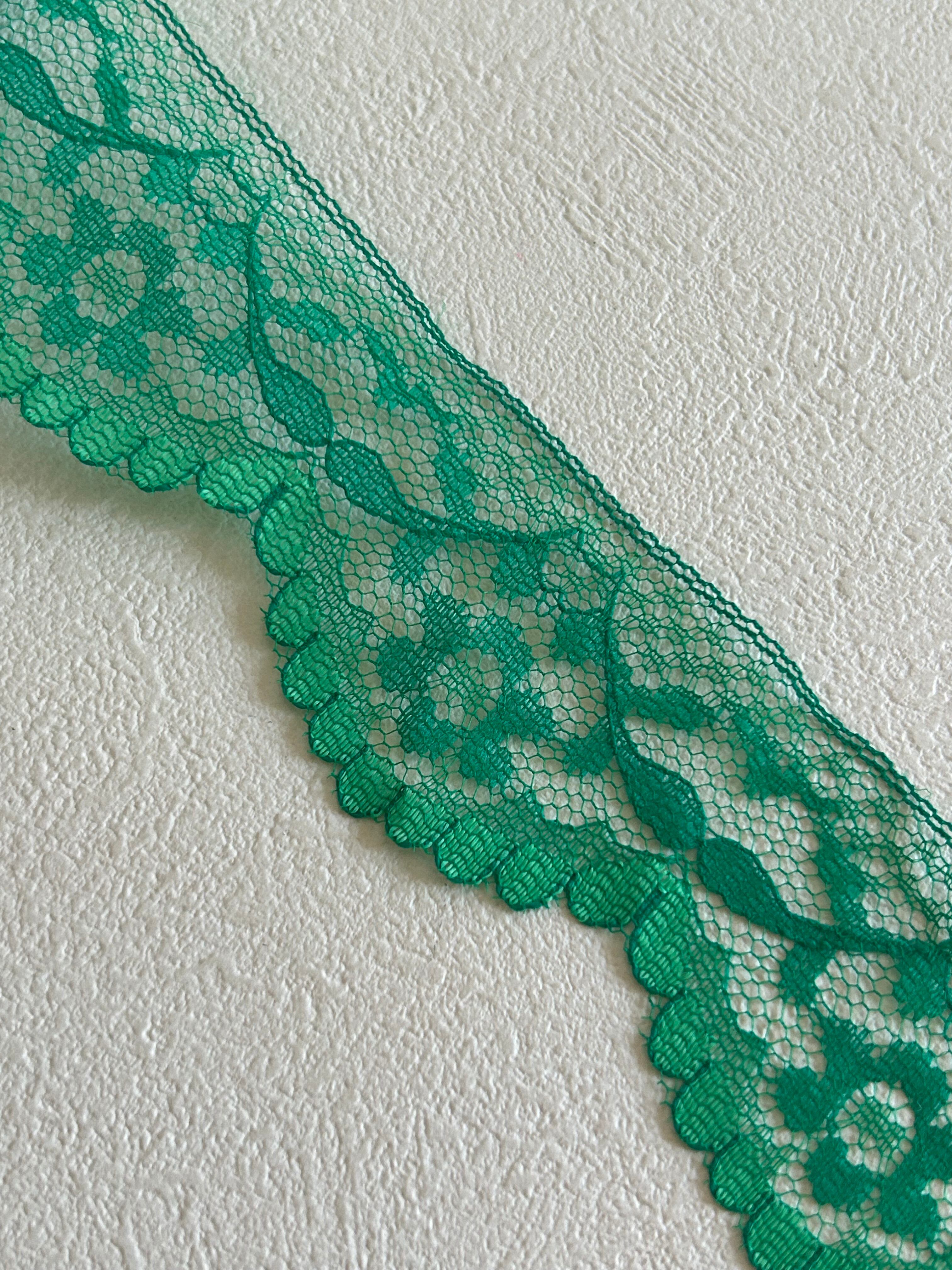 フランスVintage レース グリーン 50cm/カット フラワー 43mm レトロ カルトナージュ デコレーション材