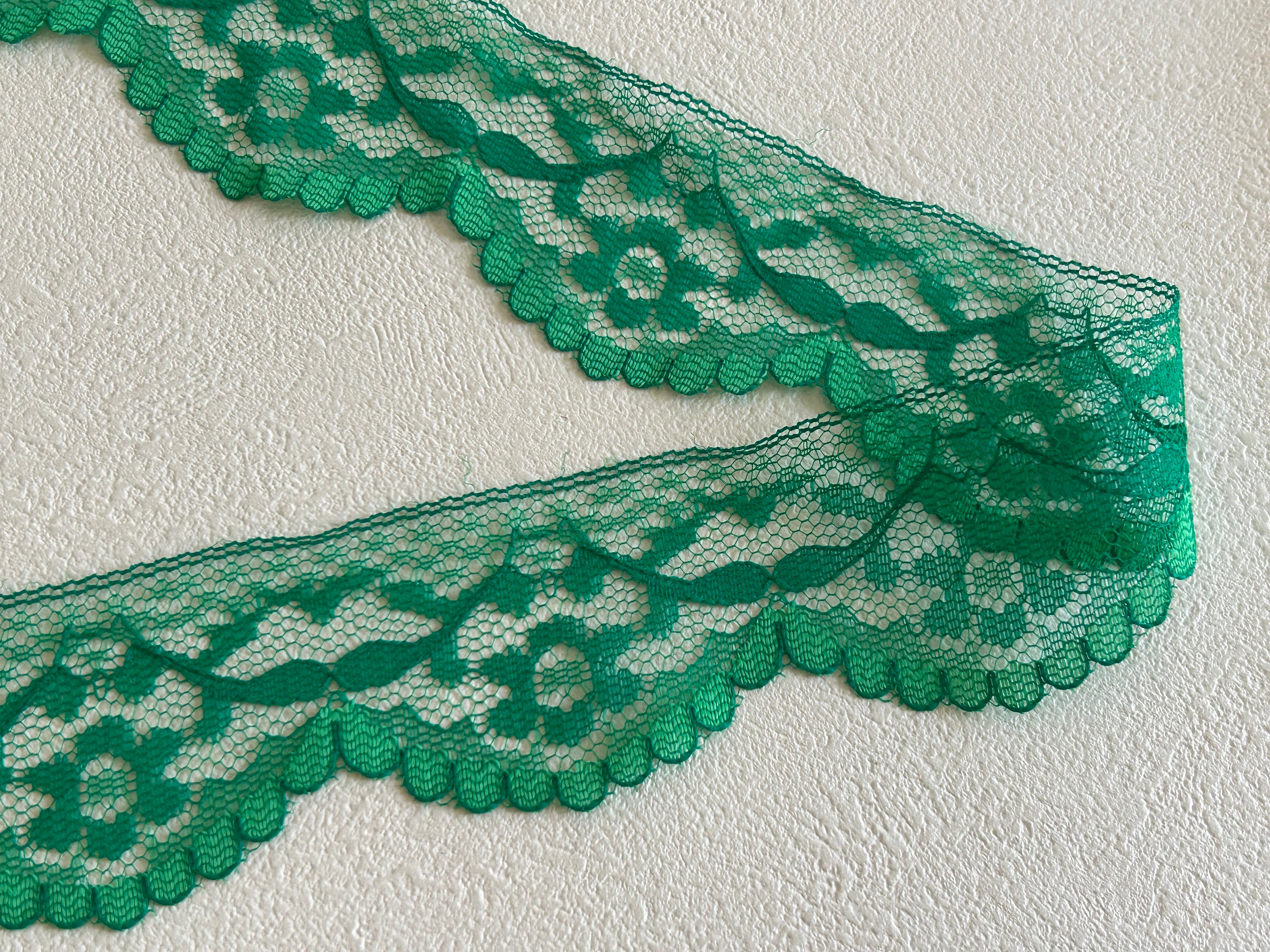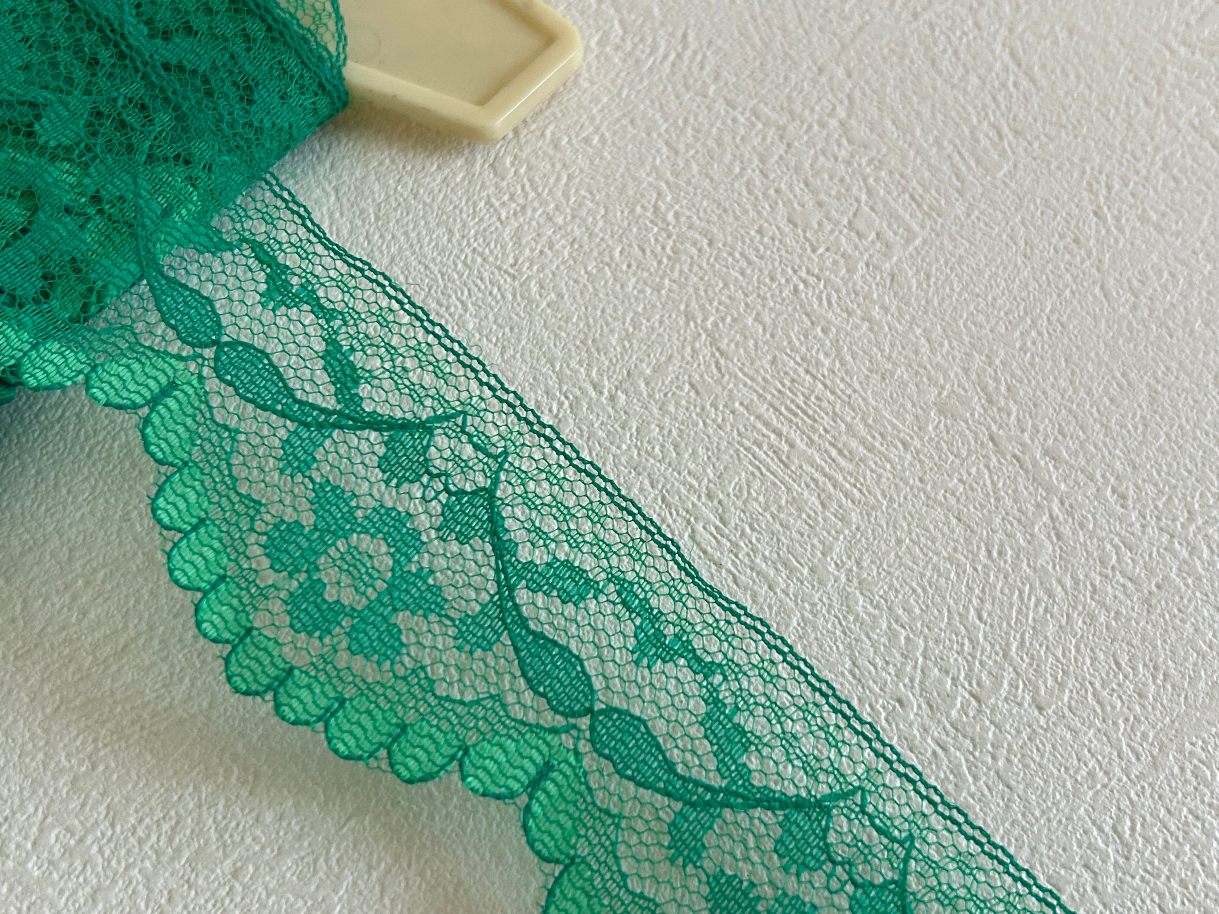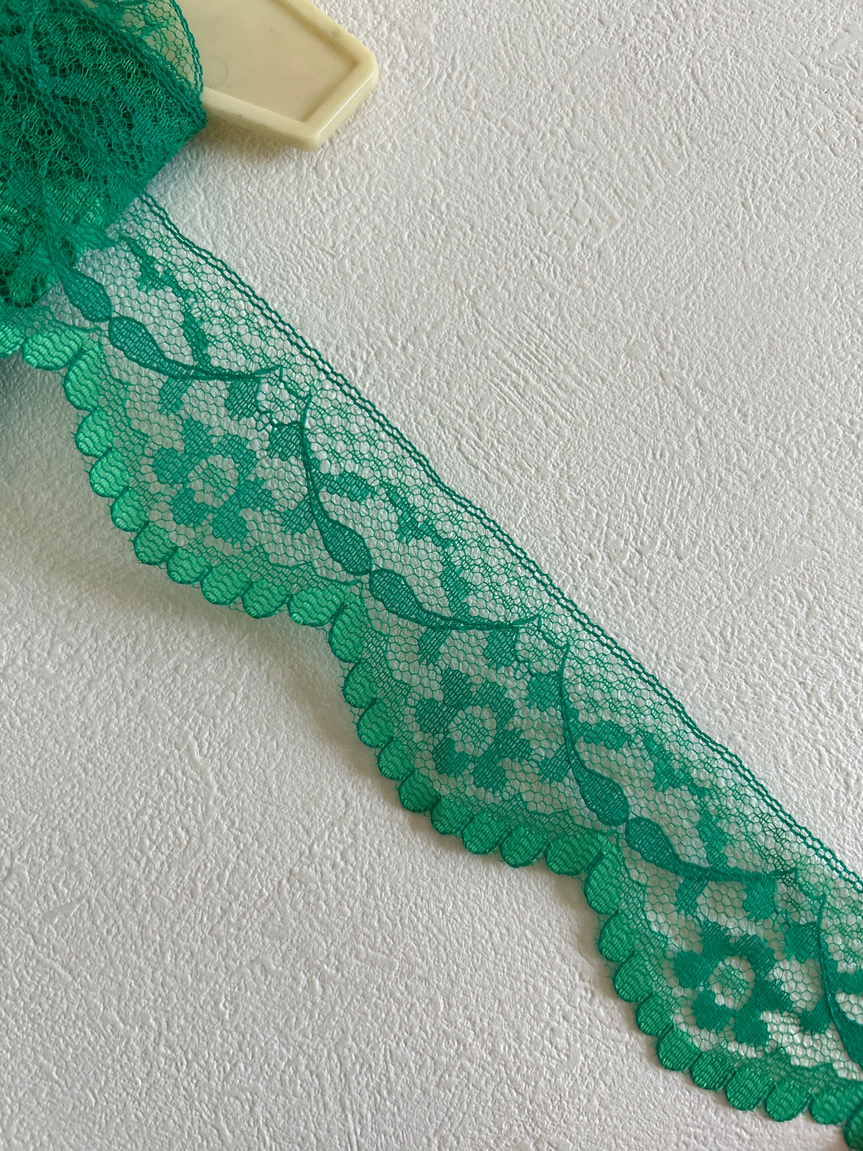 フランスVintage レース グリーン 50cm/カット フラワー 43mm レトロ カルトナージュ デコレーション材