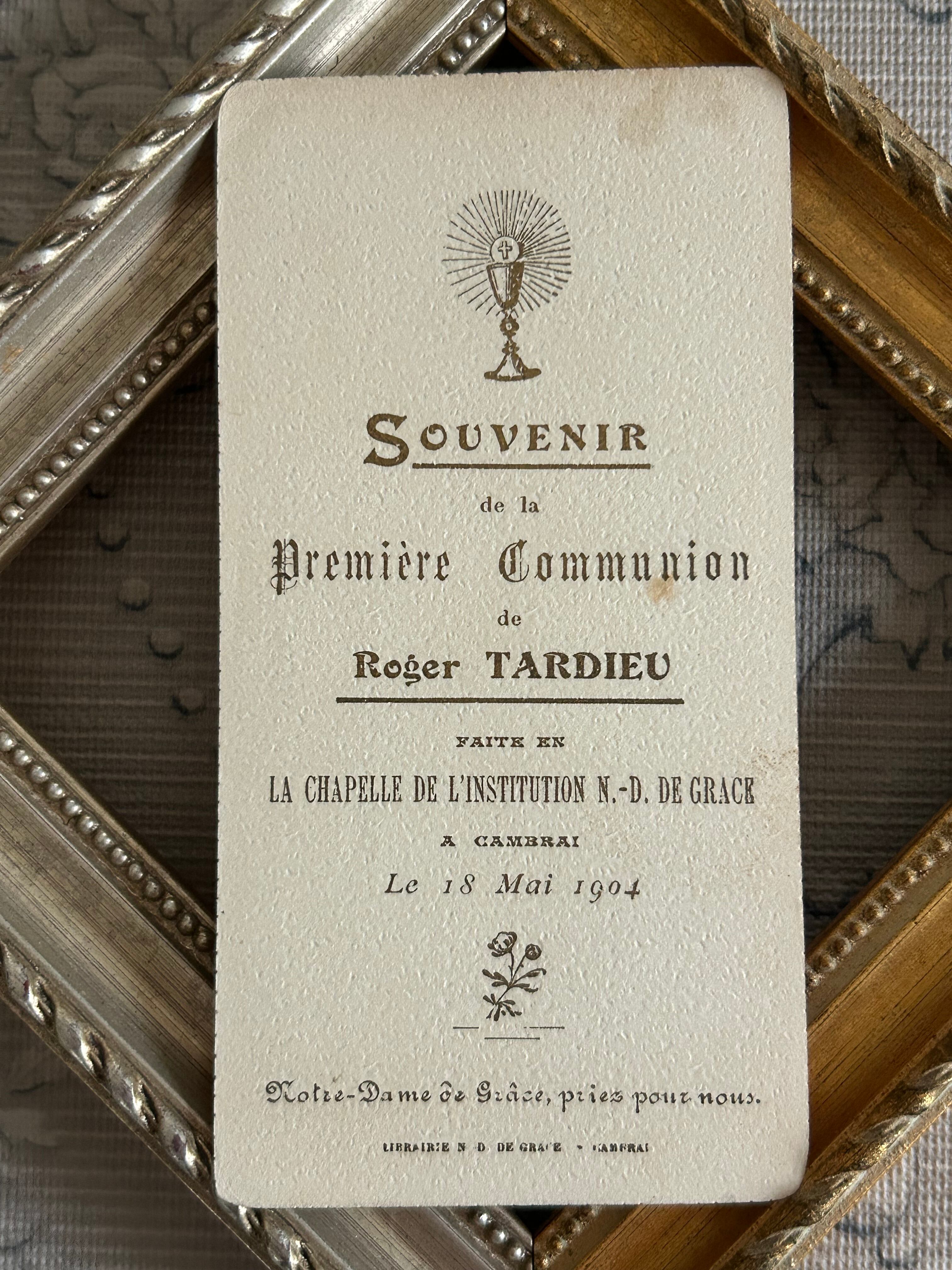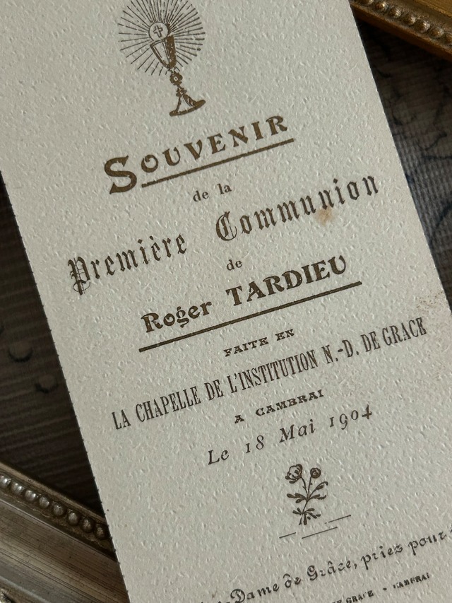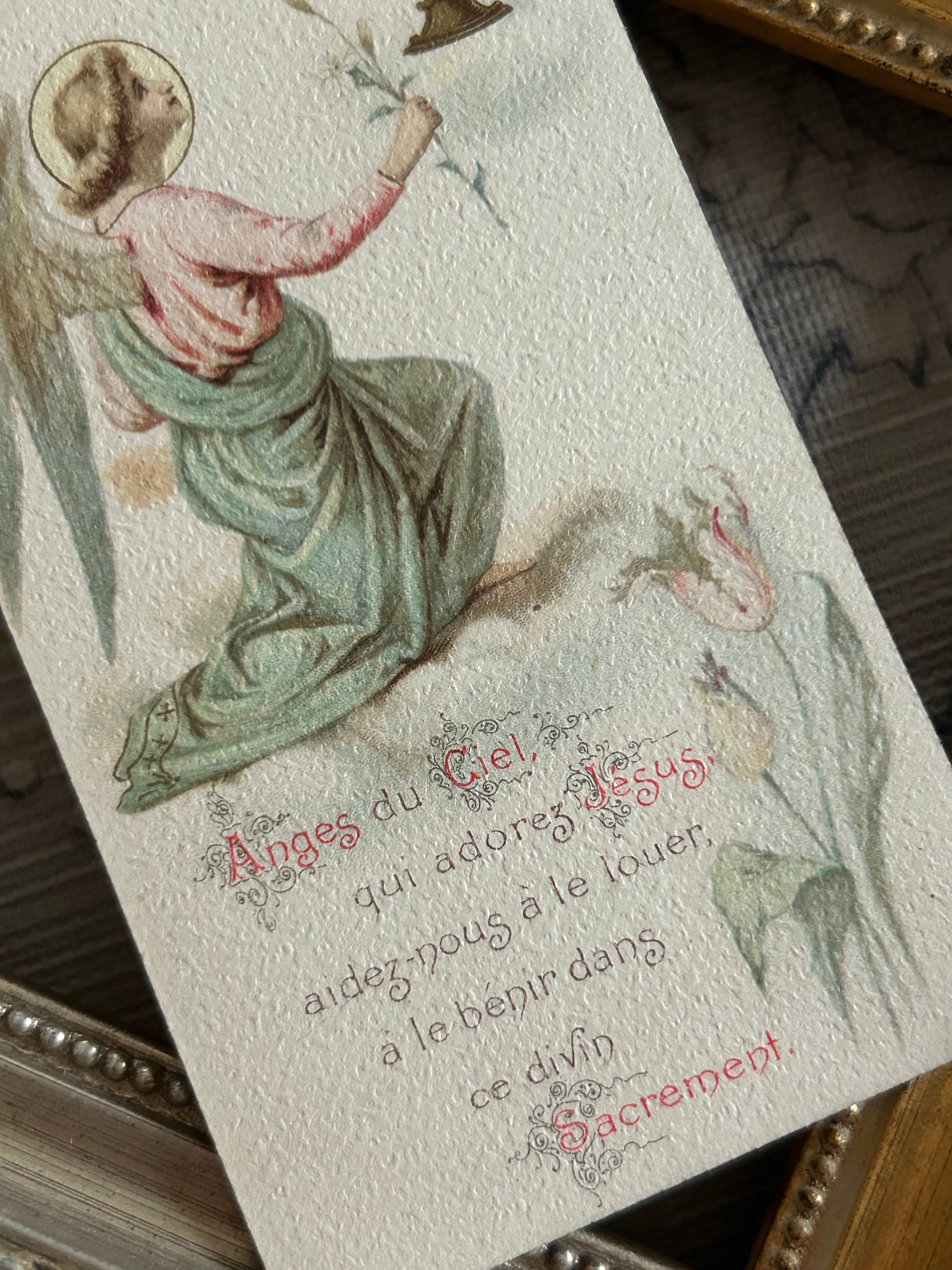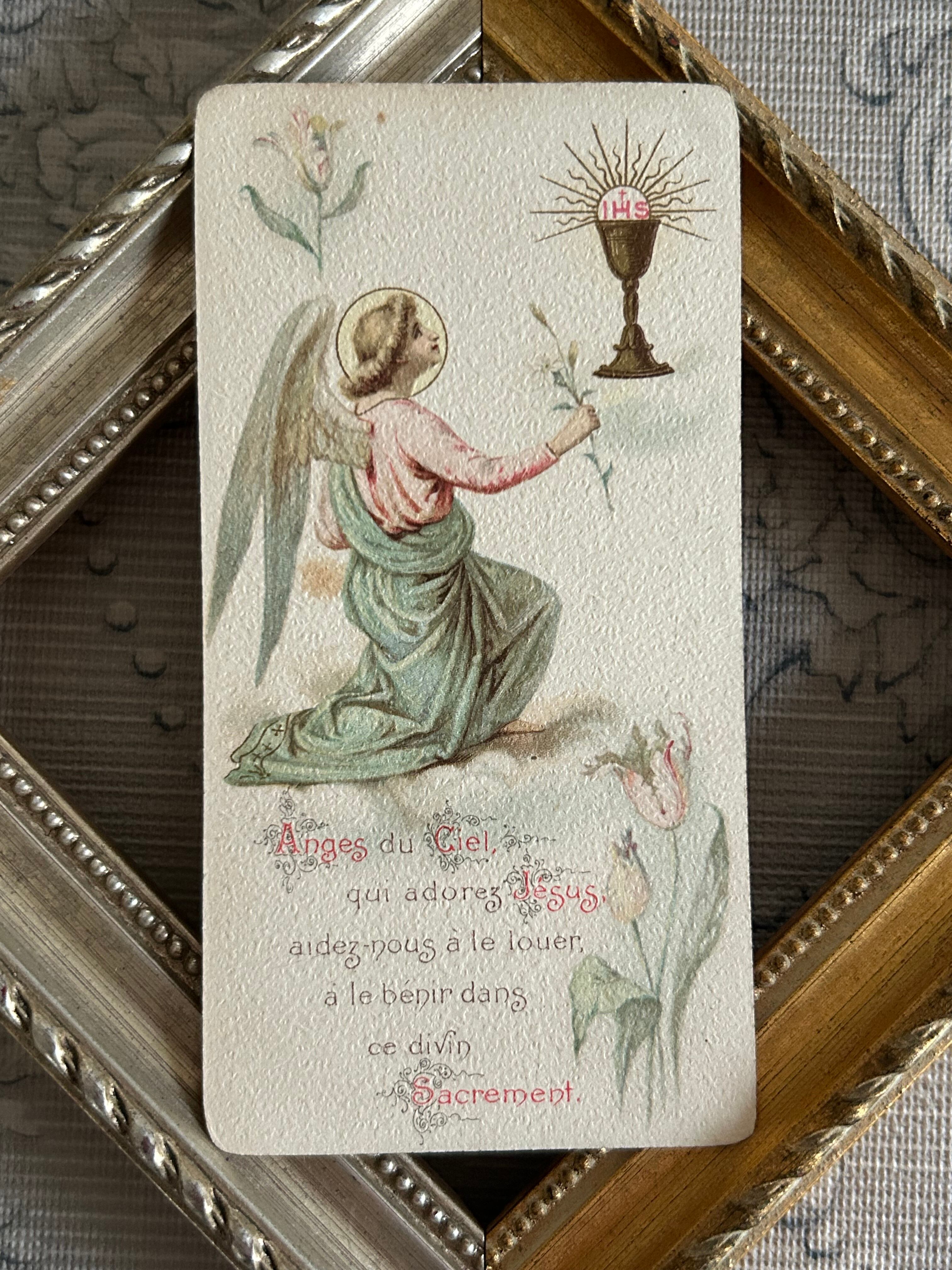 フランスアンティーク Holy Card ホーリーカード フラワー 聖杯 天使 1904年 額装 撮影小物 インテリア コレクション M