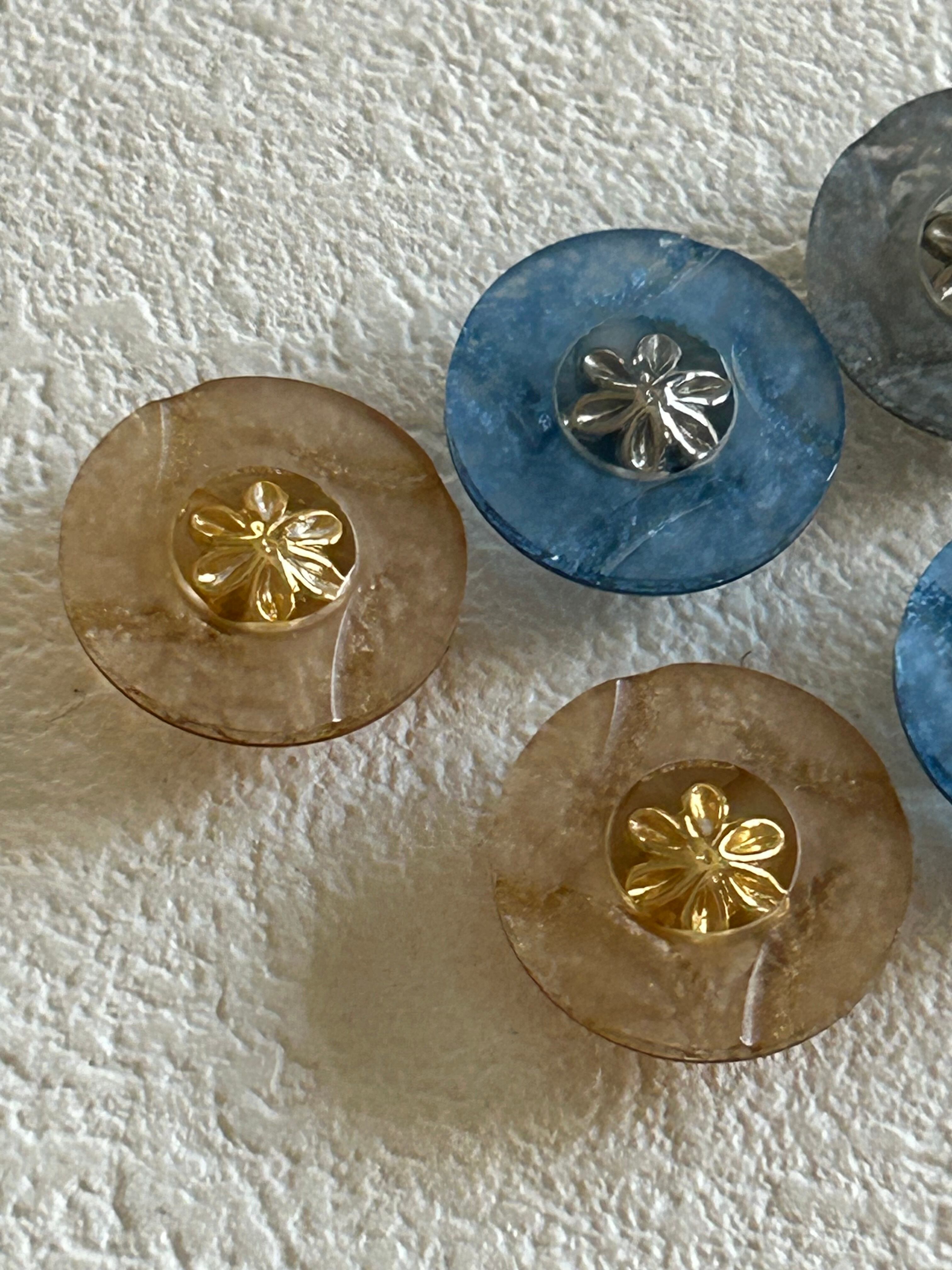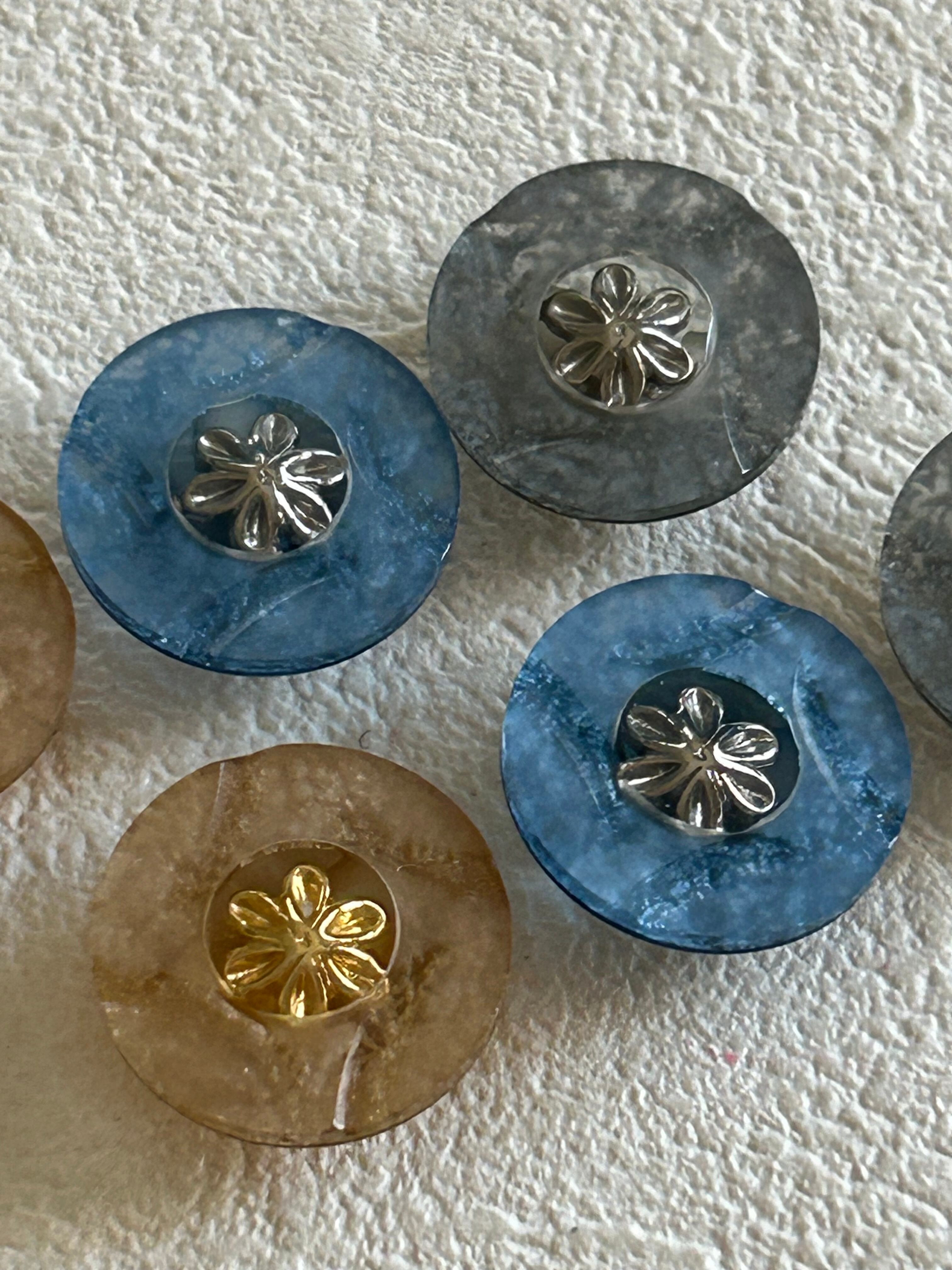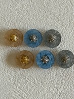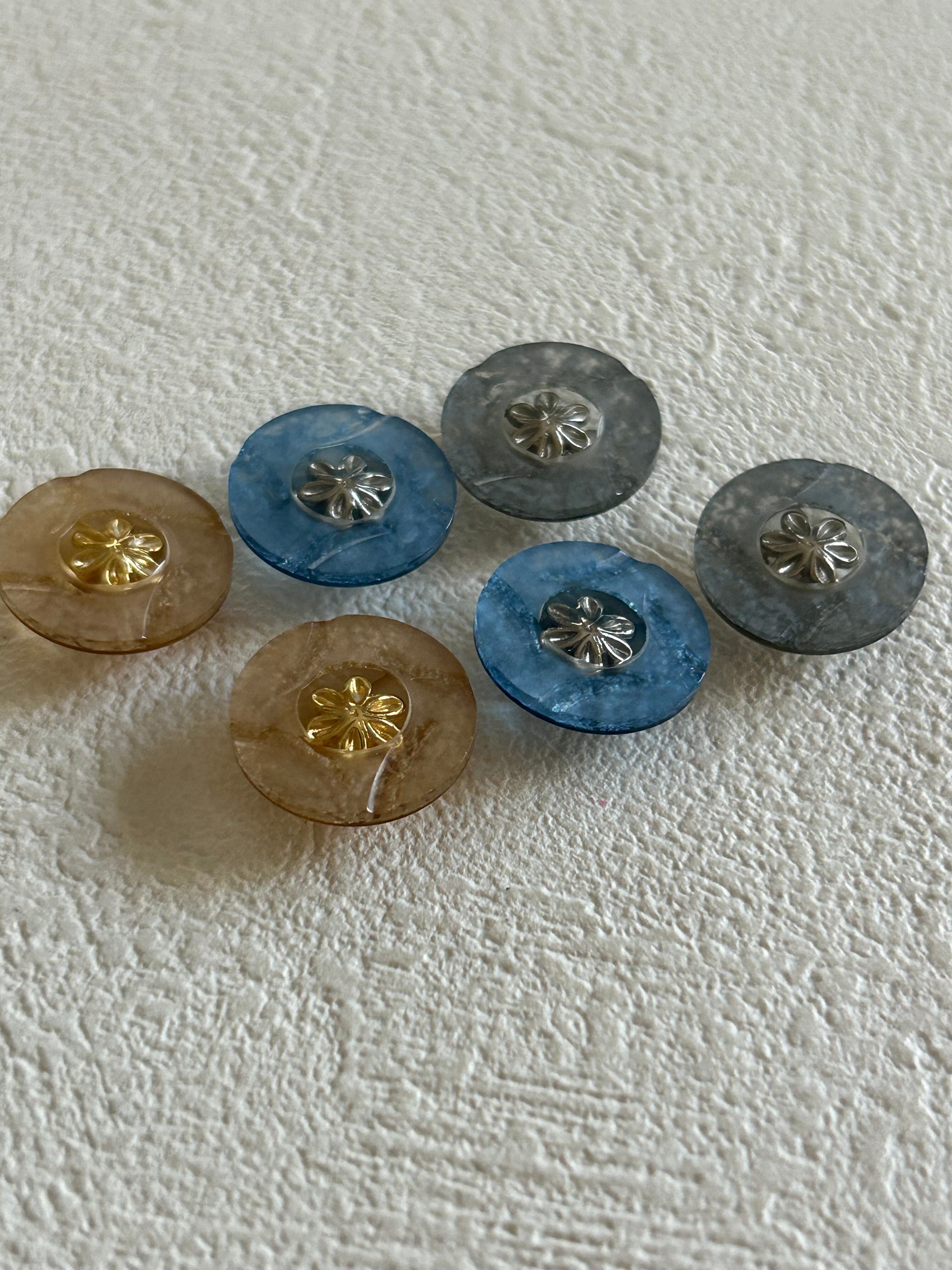 Japanese Vintage ボタン ブルー/イエロー/グレー 15mm 昭和レトロ アクセサリーパーツ 装飾材 カルトナージュ