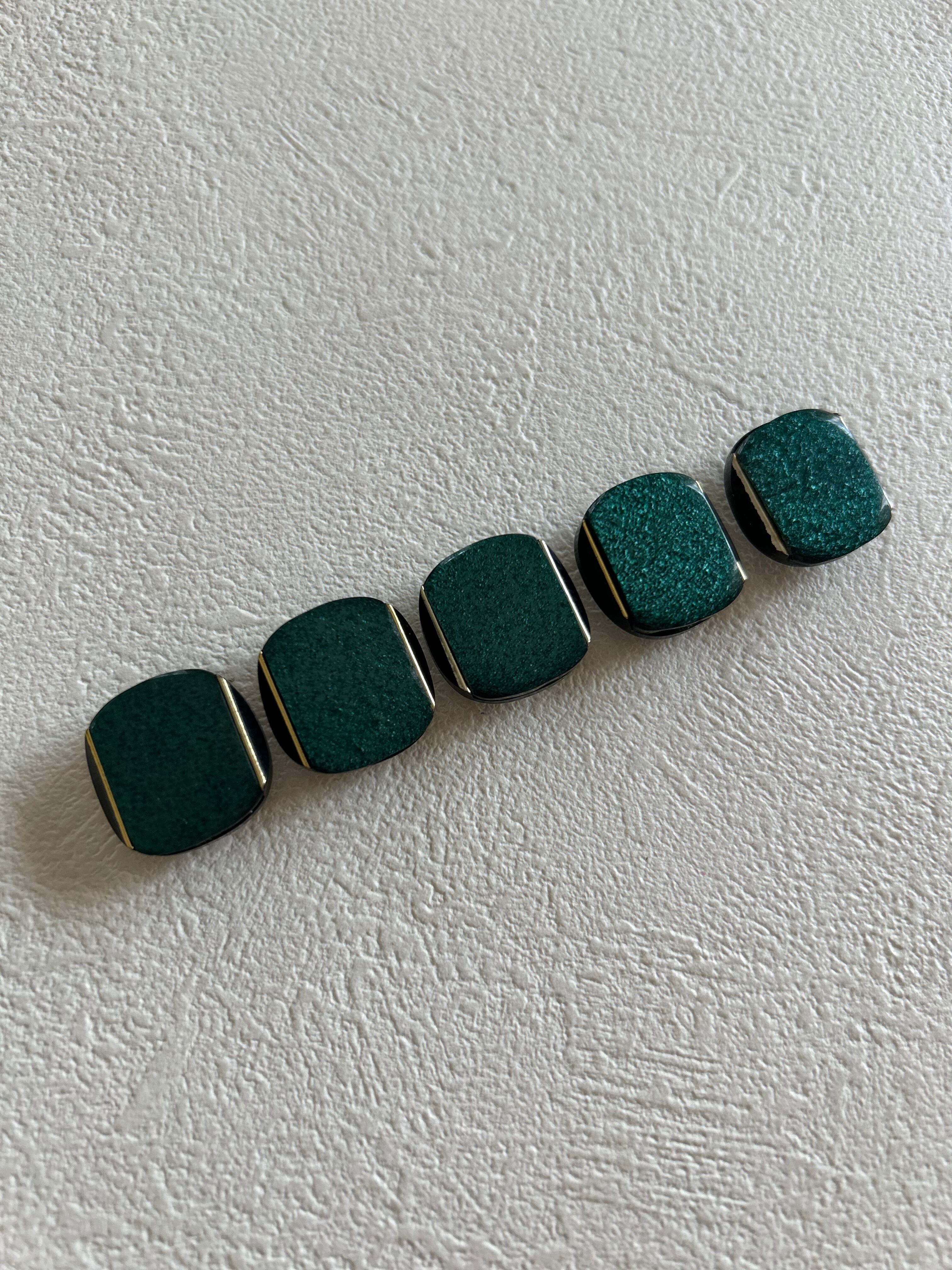 Japanese Vintage ボタン グリーン×ゴールド 18mm カボション 昭和レトロ アクセサリーパーツ 装飾材 カルトナージュ