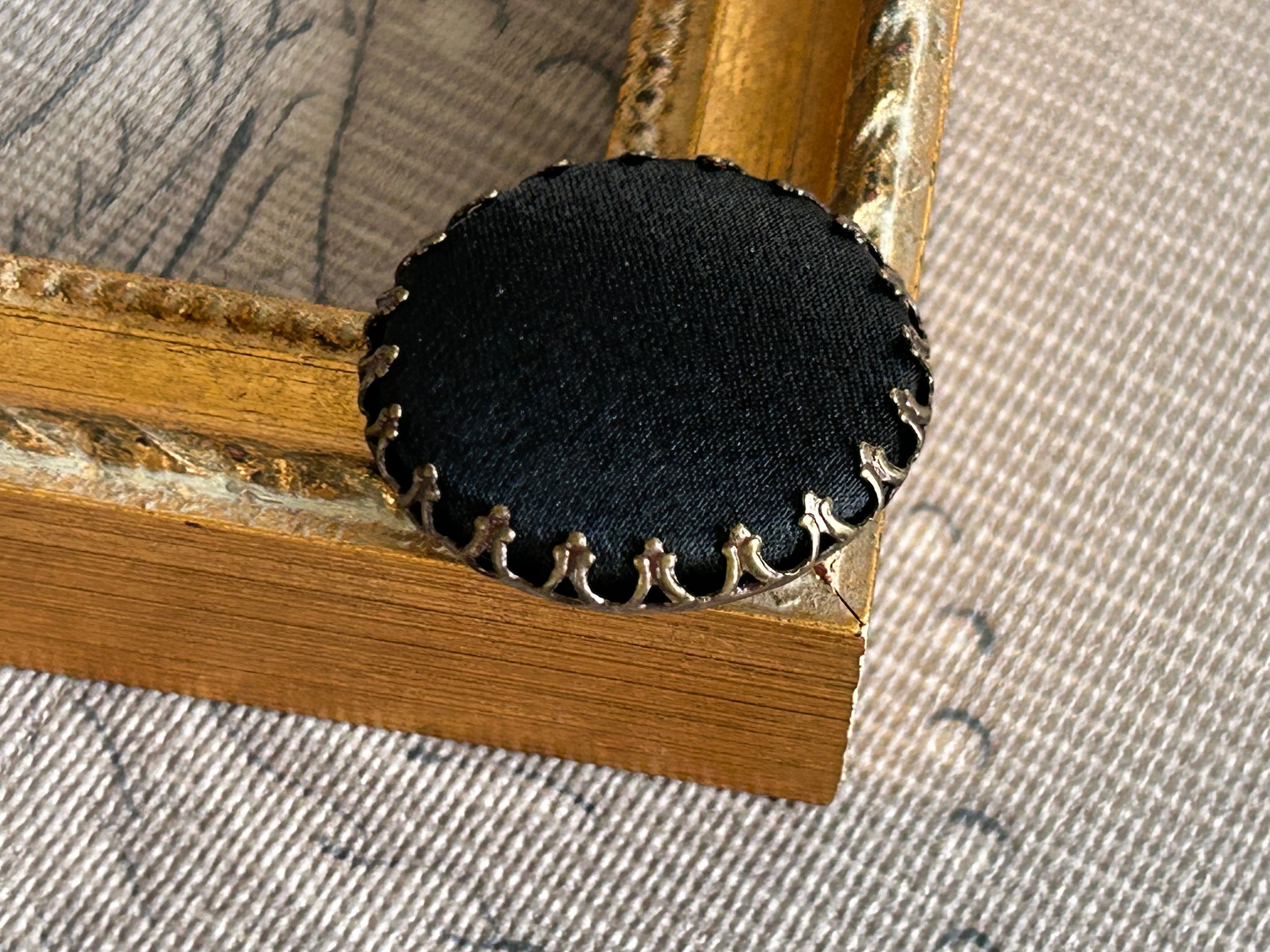 フランス Vintageボタン サテン×メタル 爪付き台座 ブラック アクセサリーパーツ カルトナージュ デコレーション材