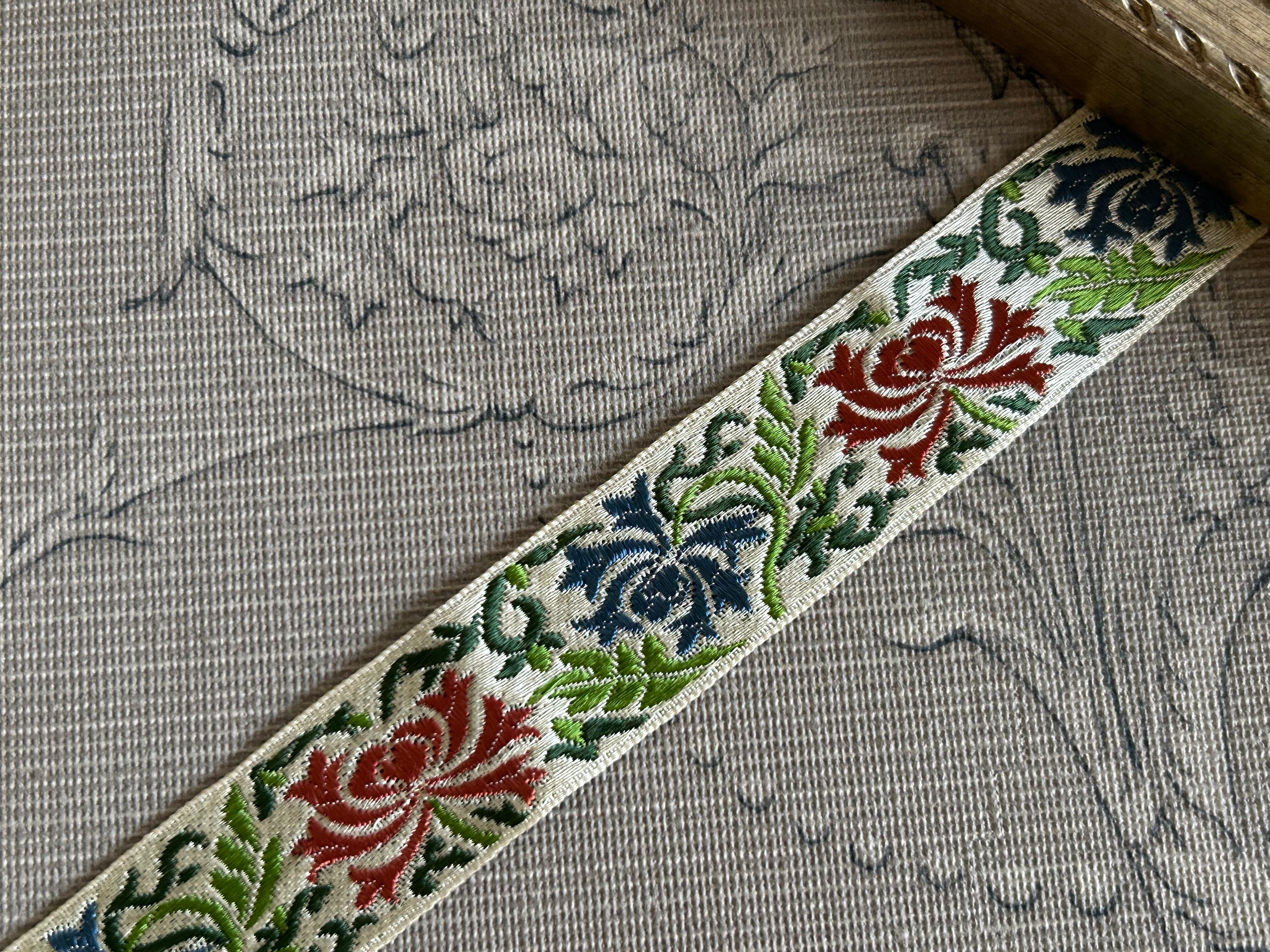 フランスアンティーク ジャガード織 リボン テープ ガロン マルチカラー 88cm 幅27mm カルトナージュ デコレーション材 コレクション