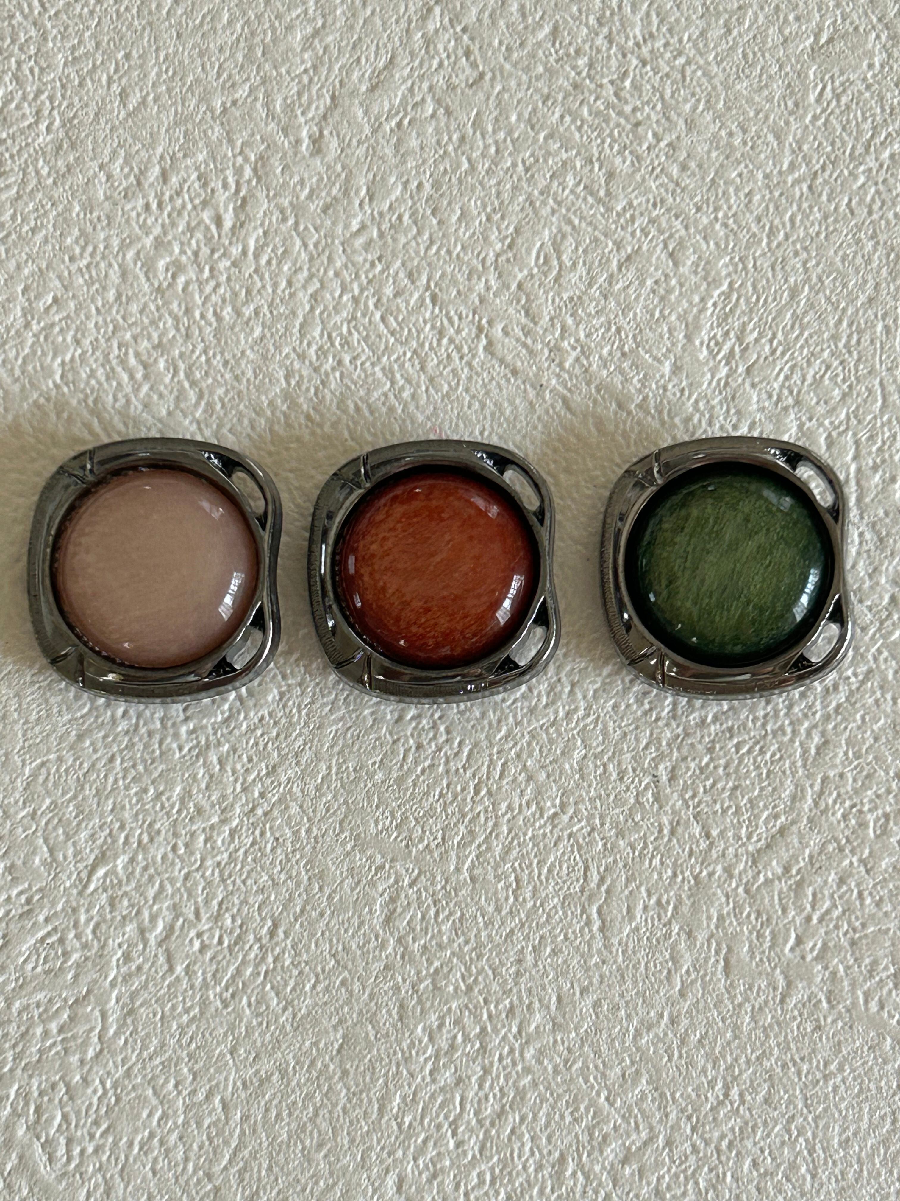 お洋服のボタンの付け替えには勿論のことアクセサリーパーツとして、カルトナージュのデコレーション材になど様々な用途でお役立て下さいませ。