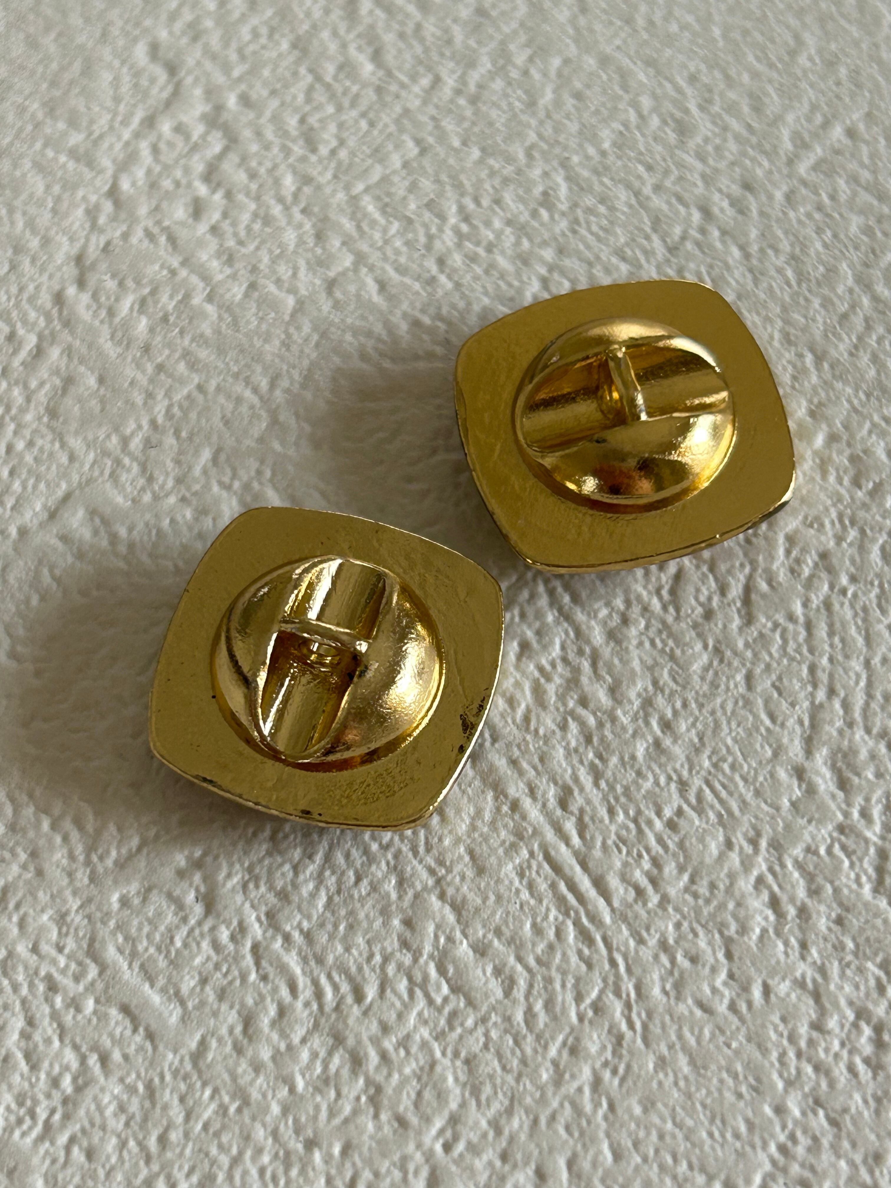 ゴールド、シルバーカラーのメタル製の台座に石調のカボションが設置されています。