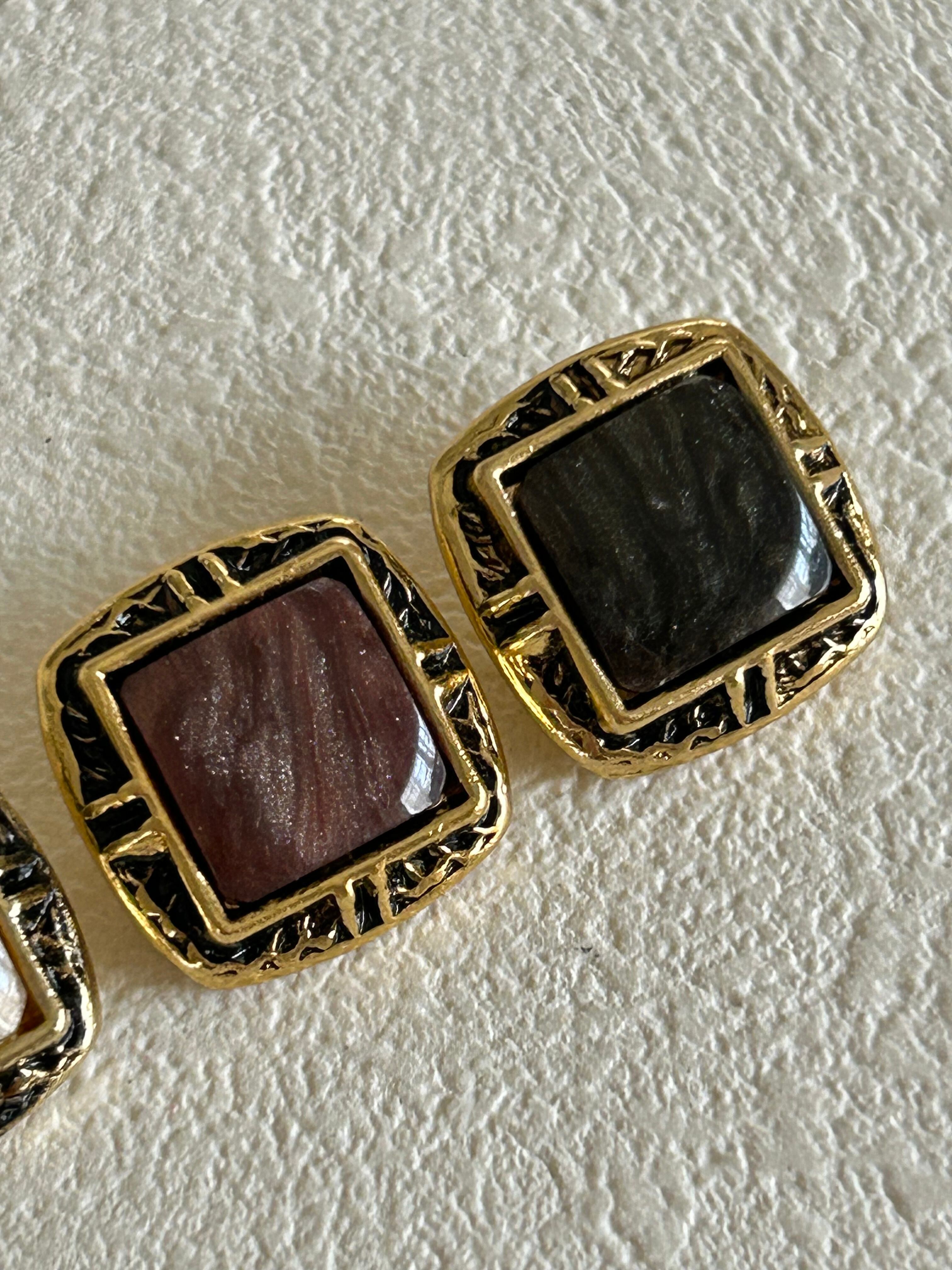 Japanese Vintage ヴィンテージボタン メタル×カボション 石調カボション 15mm アクセサリーパーツ 装飾材