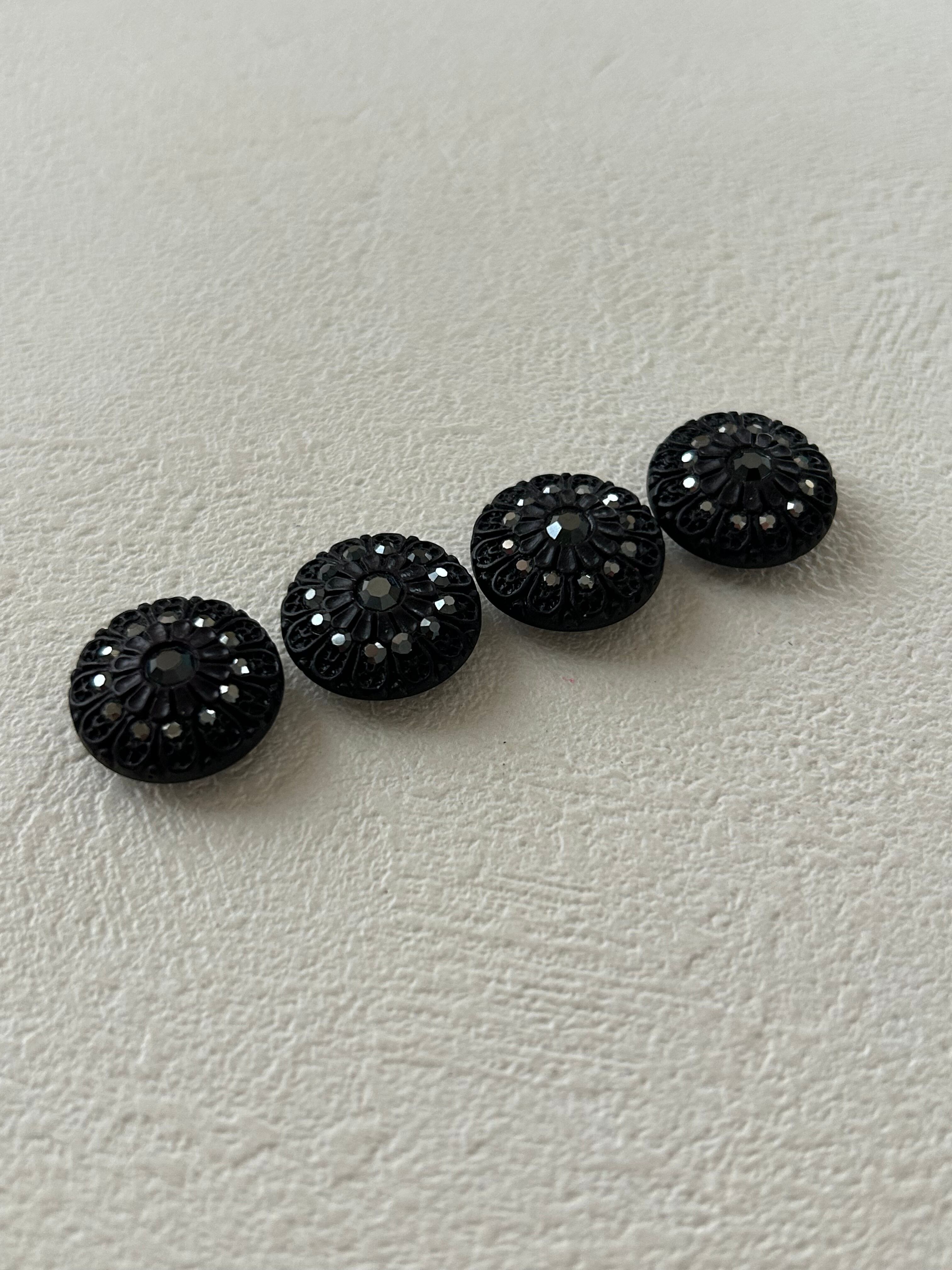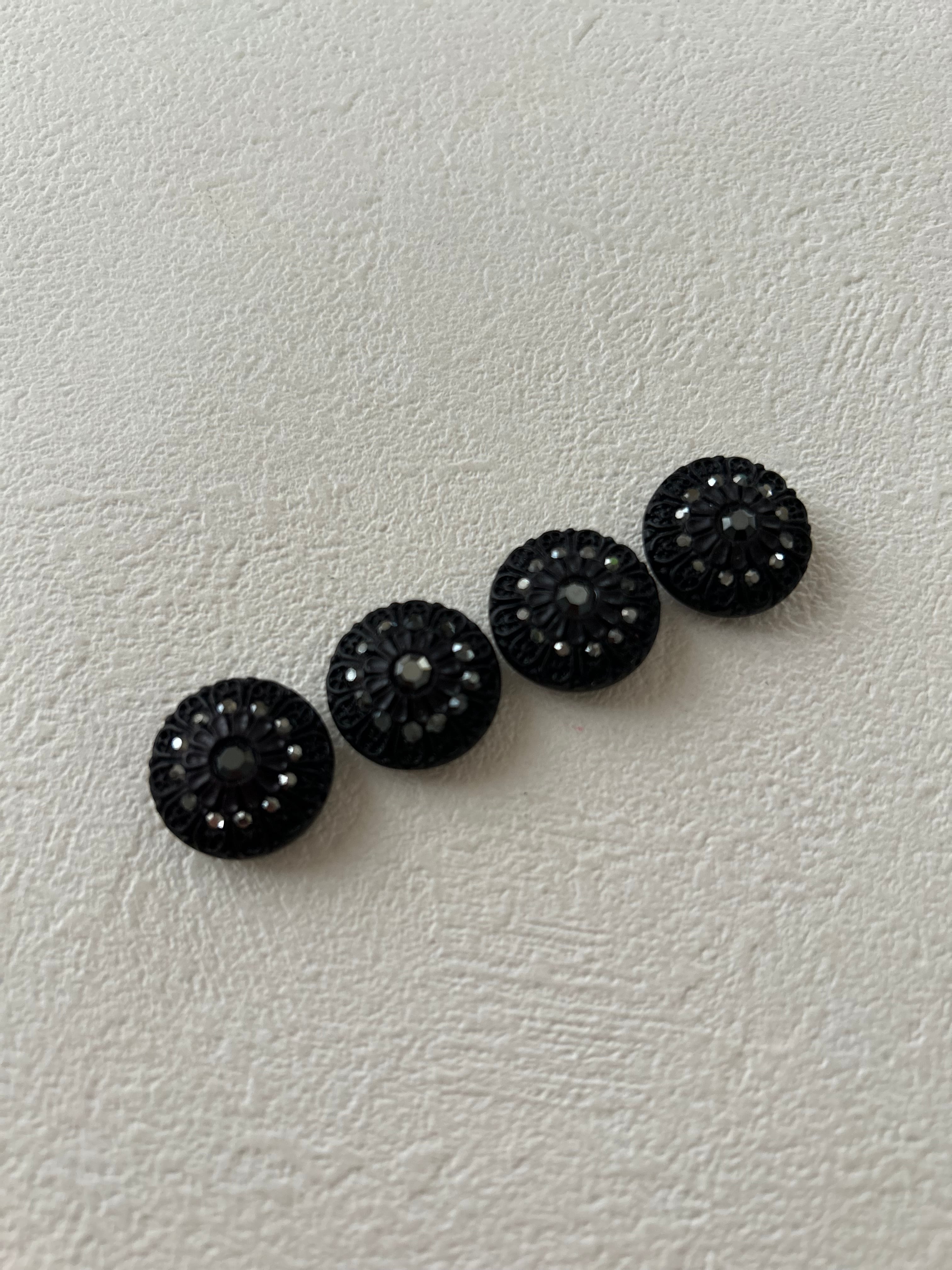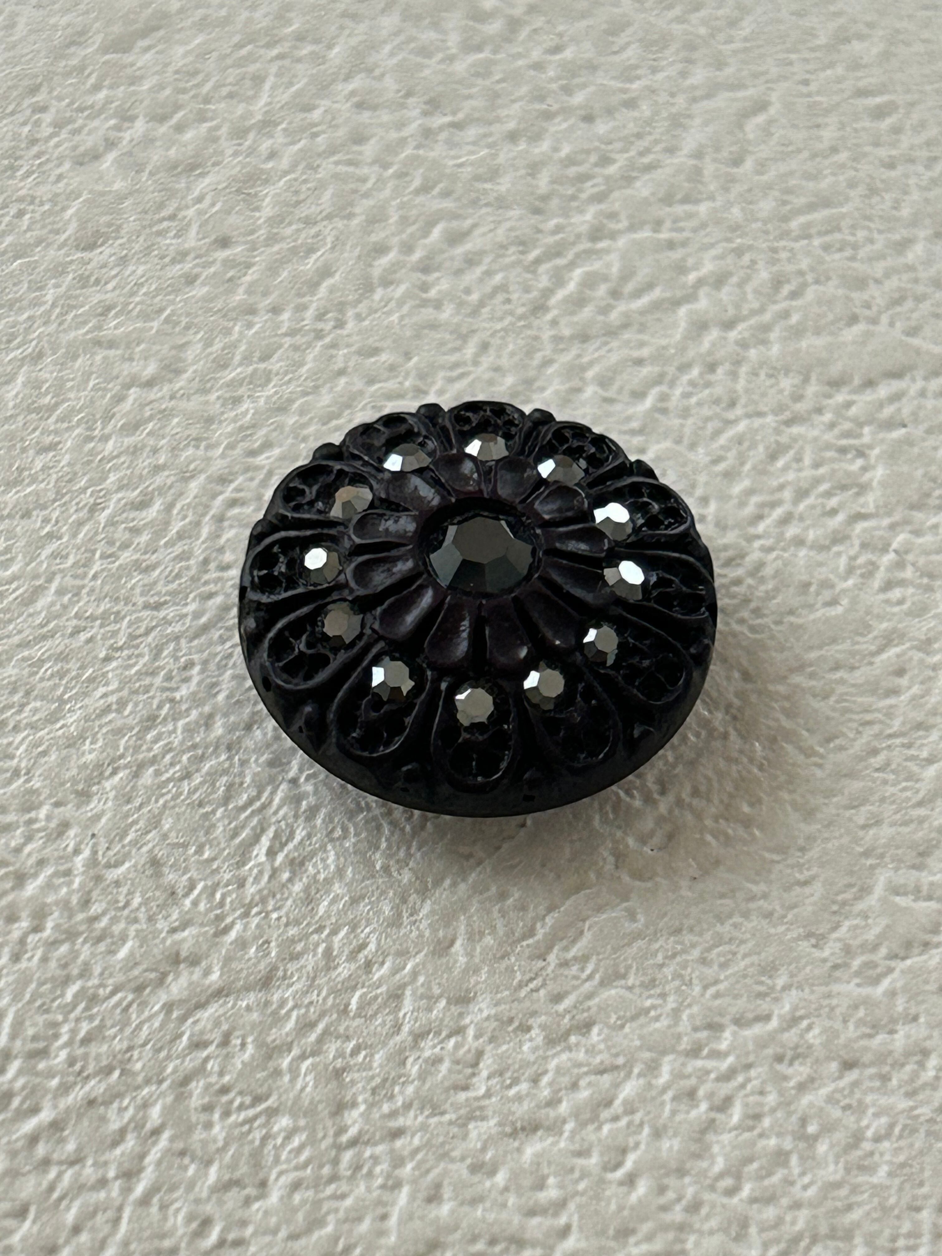 輸入デザインボタン レース デイジー ストーン ブラック 17mm アクセアリーパーツ デコレーション材 ストーン