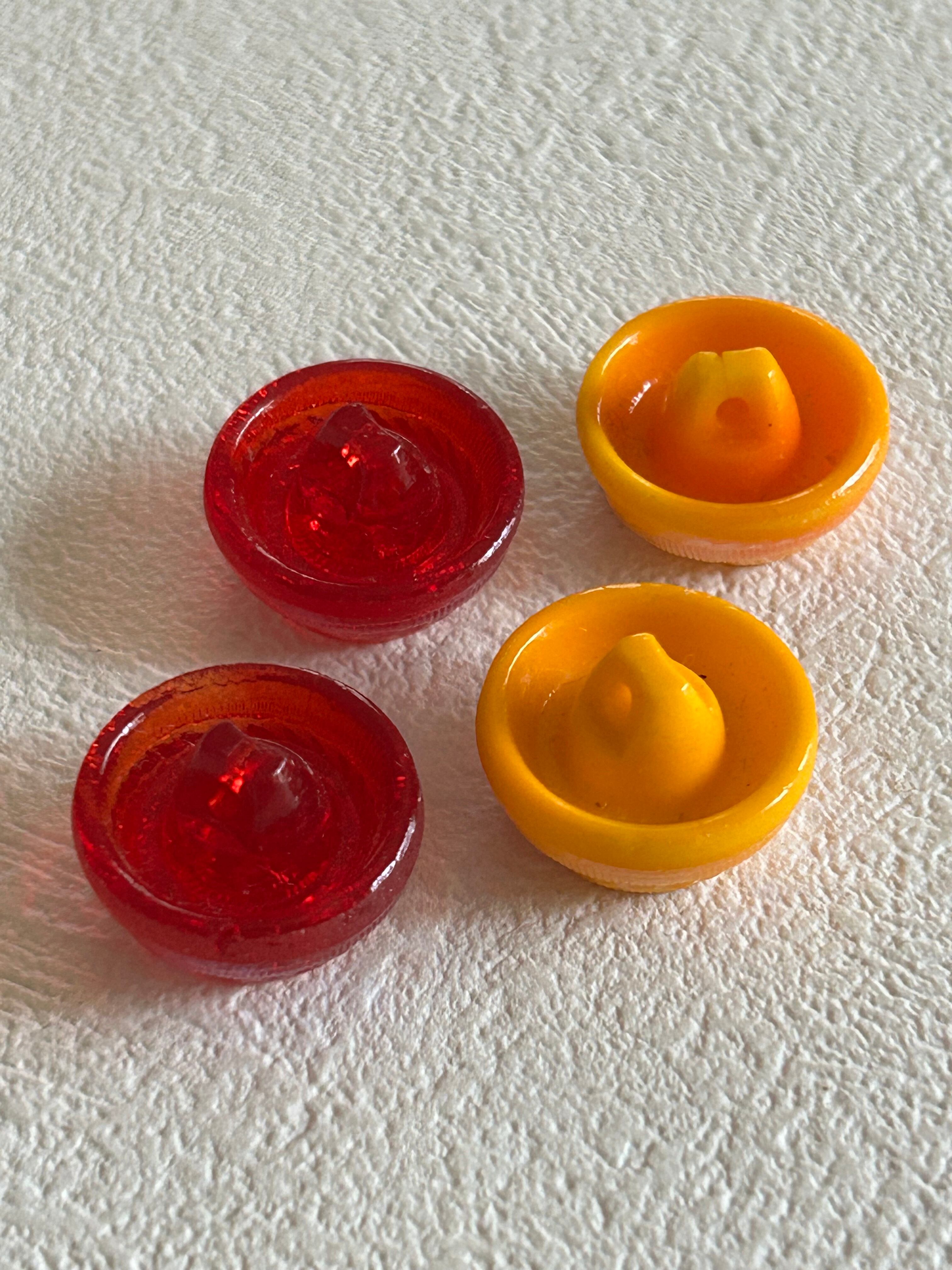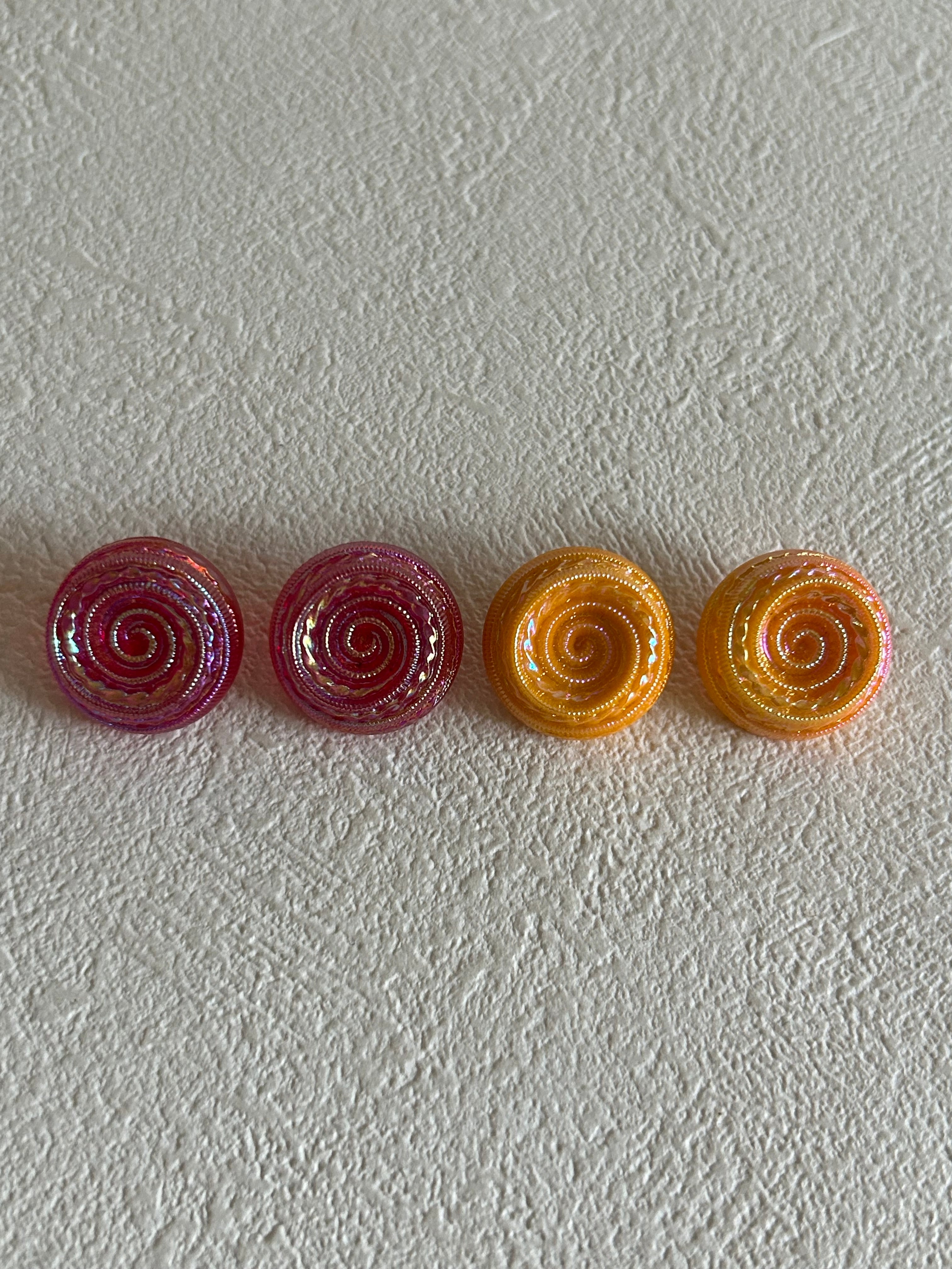 フランス Vintage ガラスボタン レッド/オレンジ 18mm エスカルゴ 渦巻き アクセサリーパーツ デコレーション材