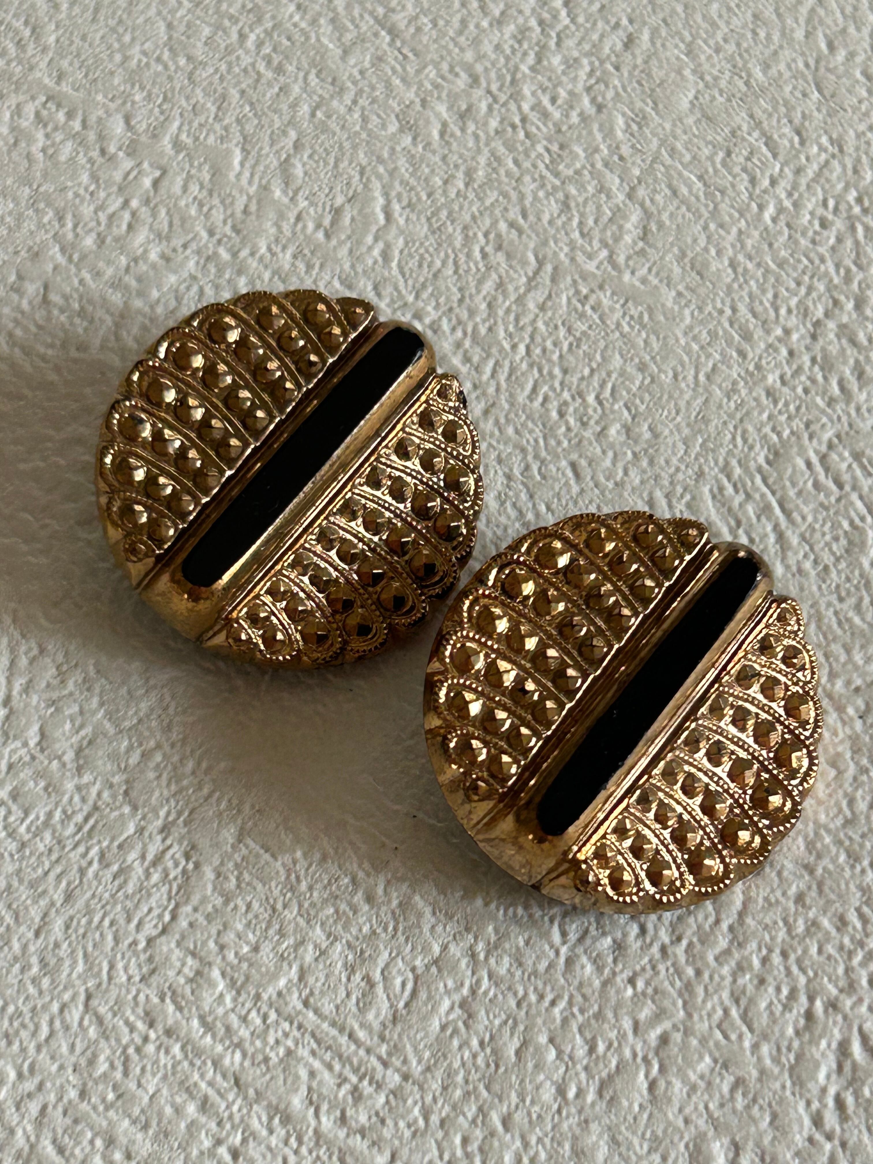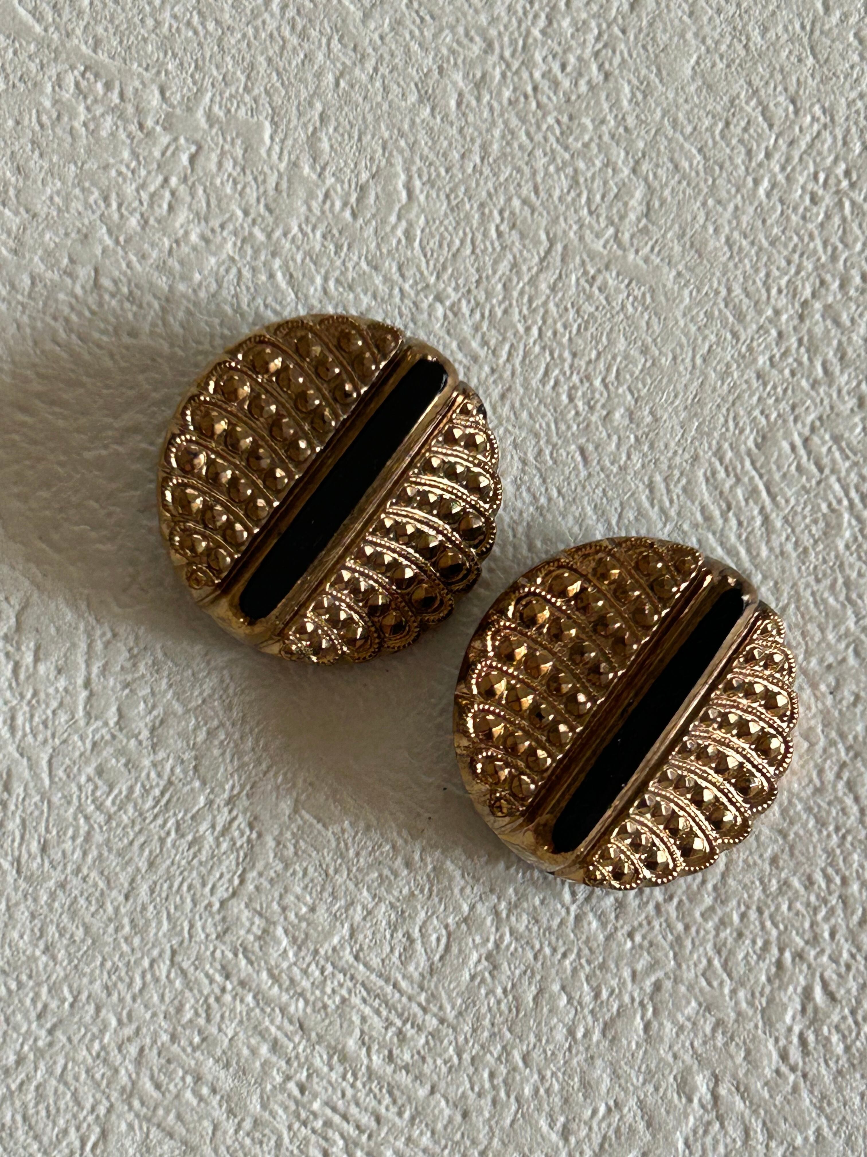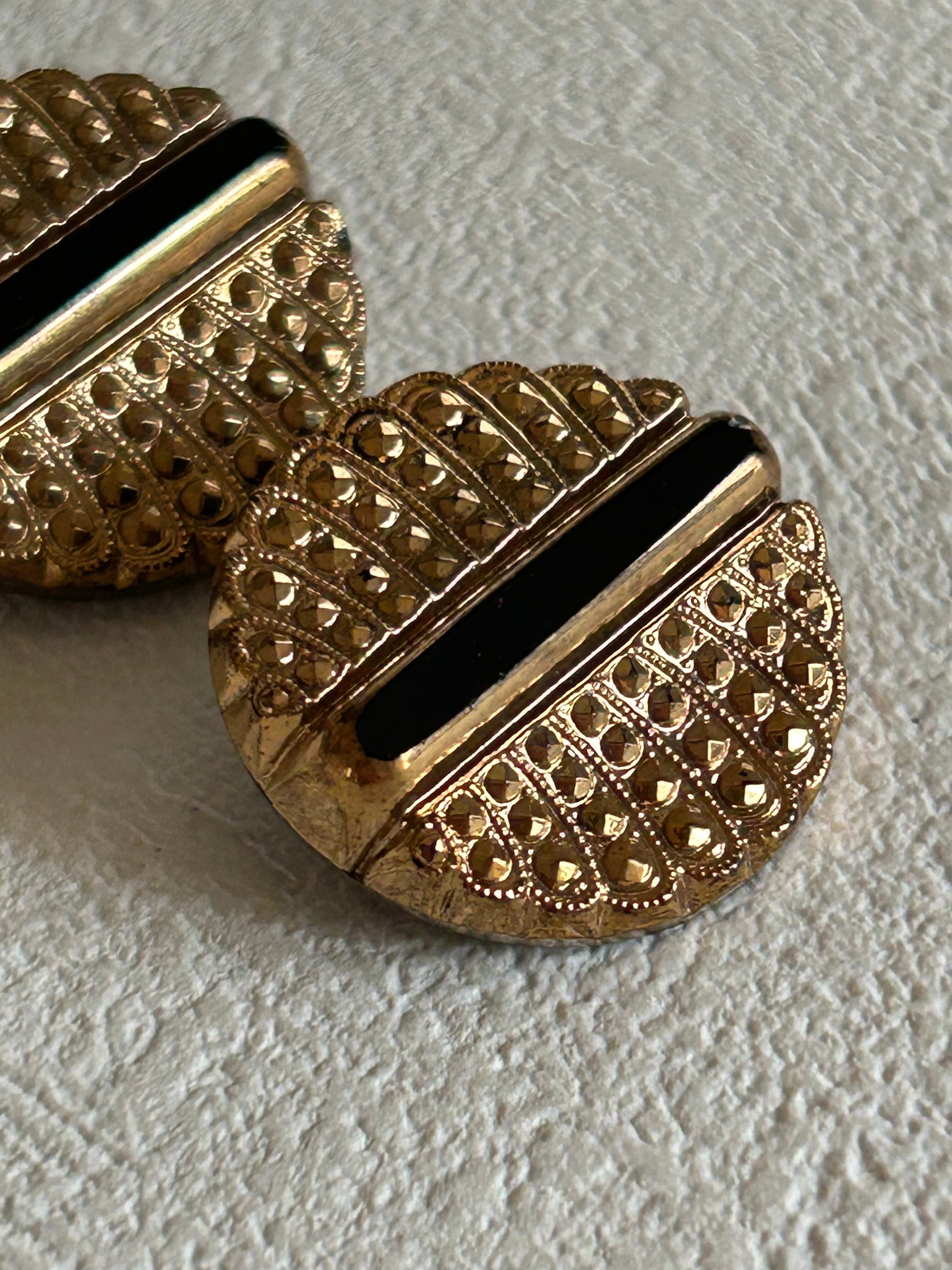 ドイツVintage ガラスボタン ブラック×ゴールド 22mm ヴィンテージボタン アクセサリーパーツ デコレーション材