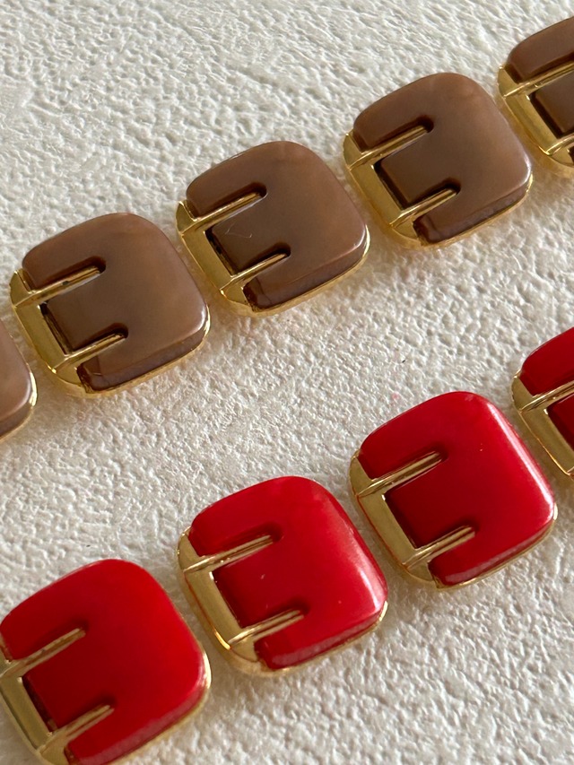 シルバーの台座にぽってりとしたお色のレッド、ベージュのカボション。